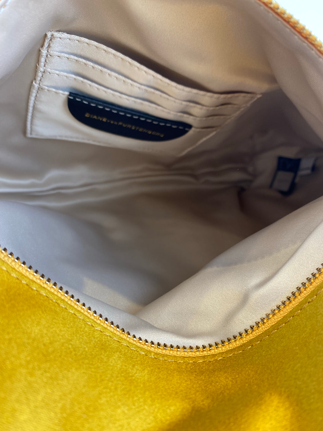 Good: Items show more prominent wear such as noticeable discoloration, stains and snags to fabric. May have worn corners and handles, tarnishing to hardware and creasing to leather. Pen or make up marks may be visible in the interior of the bag.