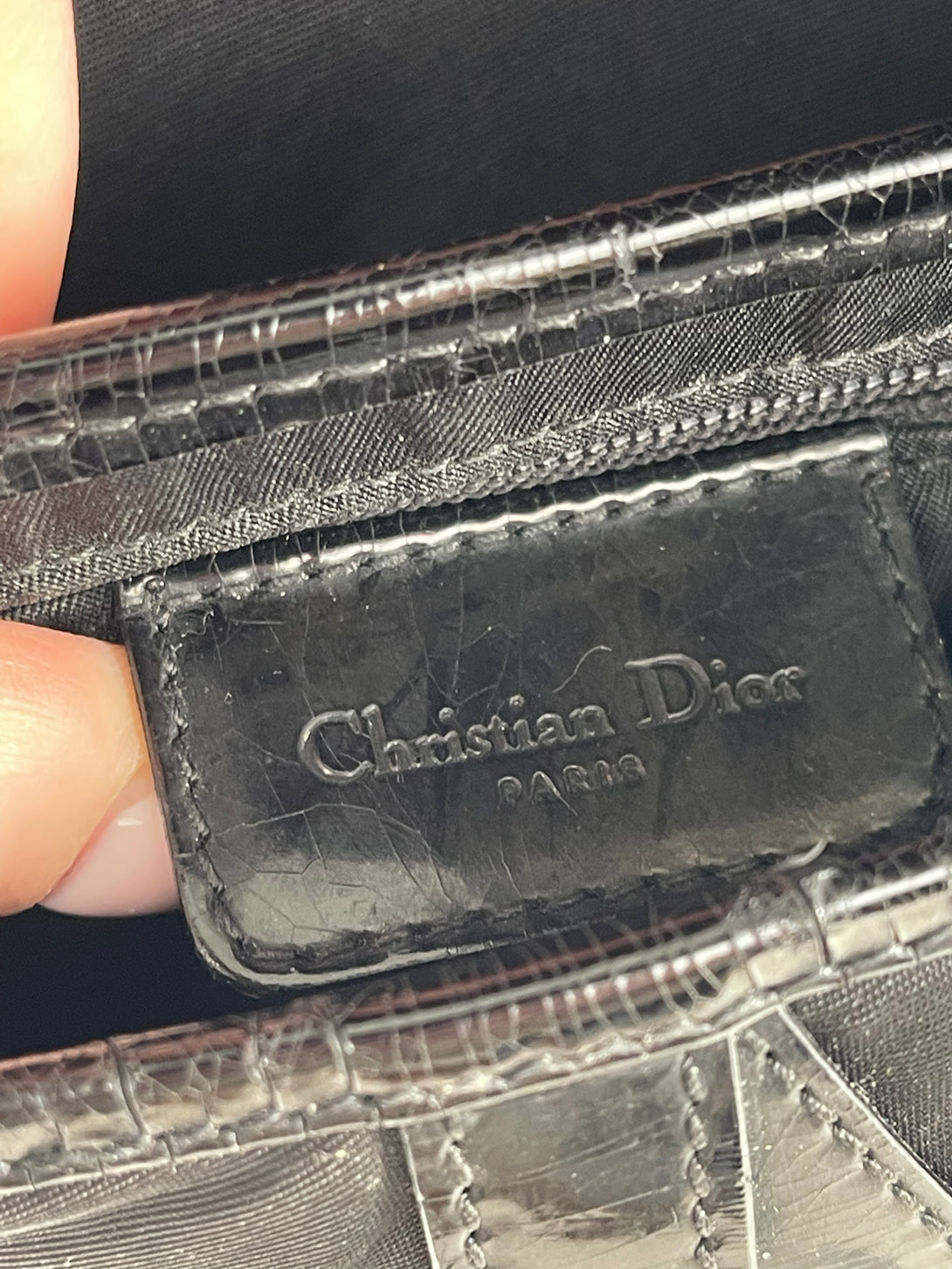 Good: Items show more prominent wear such as noticeable discoloration, stains and snags to fabric. May have worn corners and handles, tarnishing to hardware and creasing to leather. Pen or make up marks may be visible in the interior of the bag.