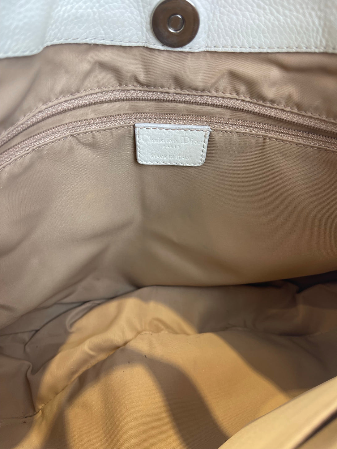 Good: Items show more prominent wear such as noticeable discoloration, stains and snags to fabric. May have worn corners and handles, tarnishing to hardware and creasing to leather. Pen or make up marks may be visible in the interior of the bag.