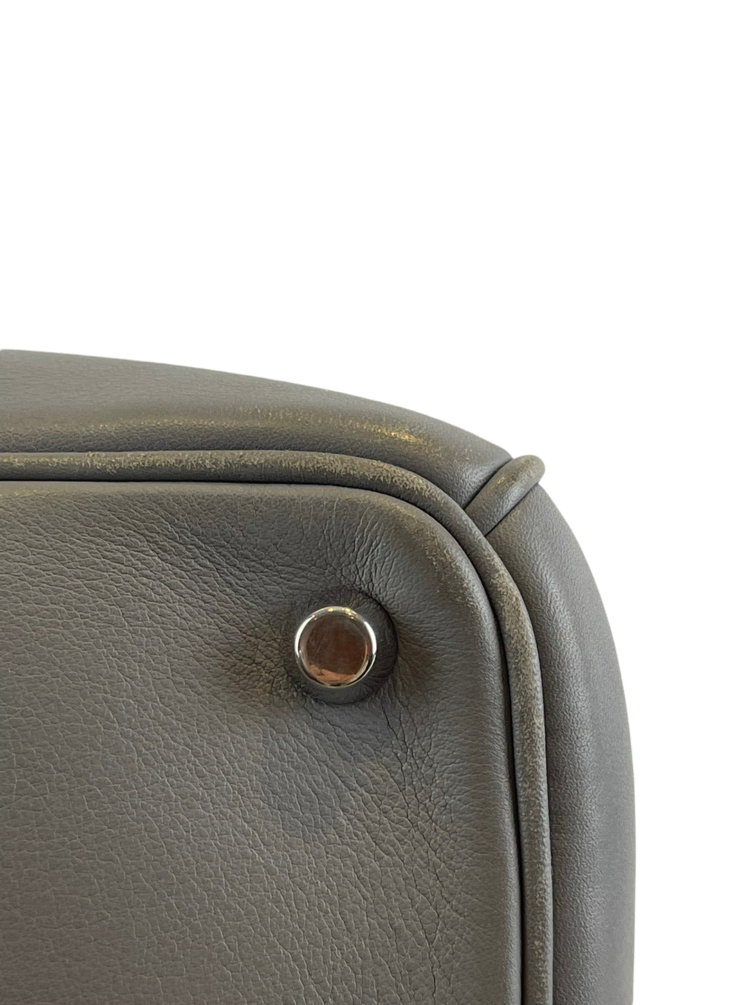 Good: Items show more prominent wear such as noticeable discoloration, stains and snags to fabric. May have worn corners and handles, tarnishing to hardware and creasing to leather. Pen or make up marks may be visible in the interior of the bag.