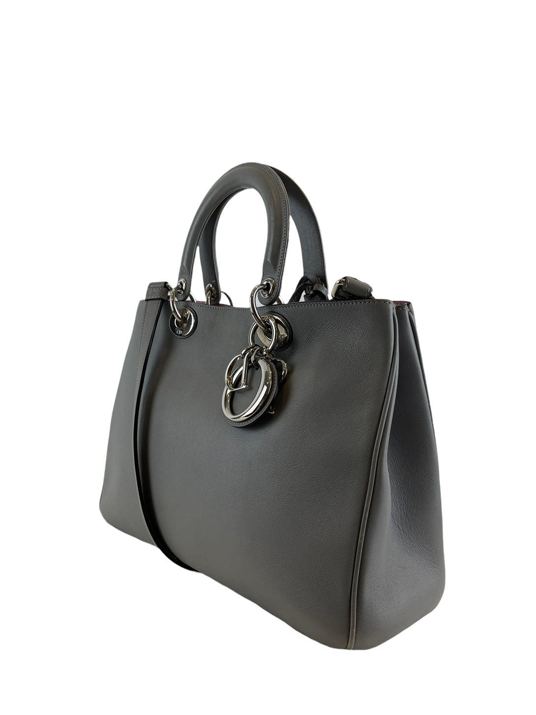 Christian Dior Grey Leather "Lady Dior" Handbag