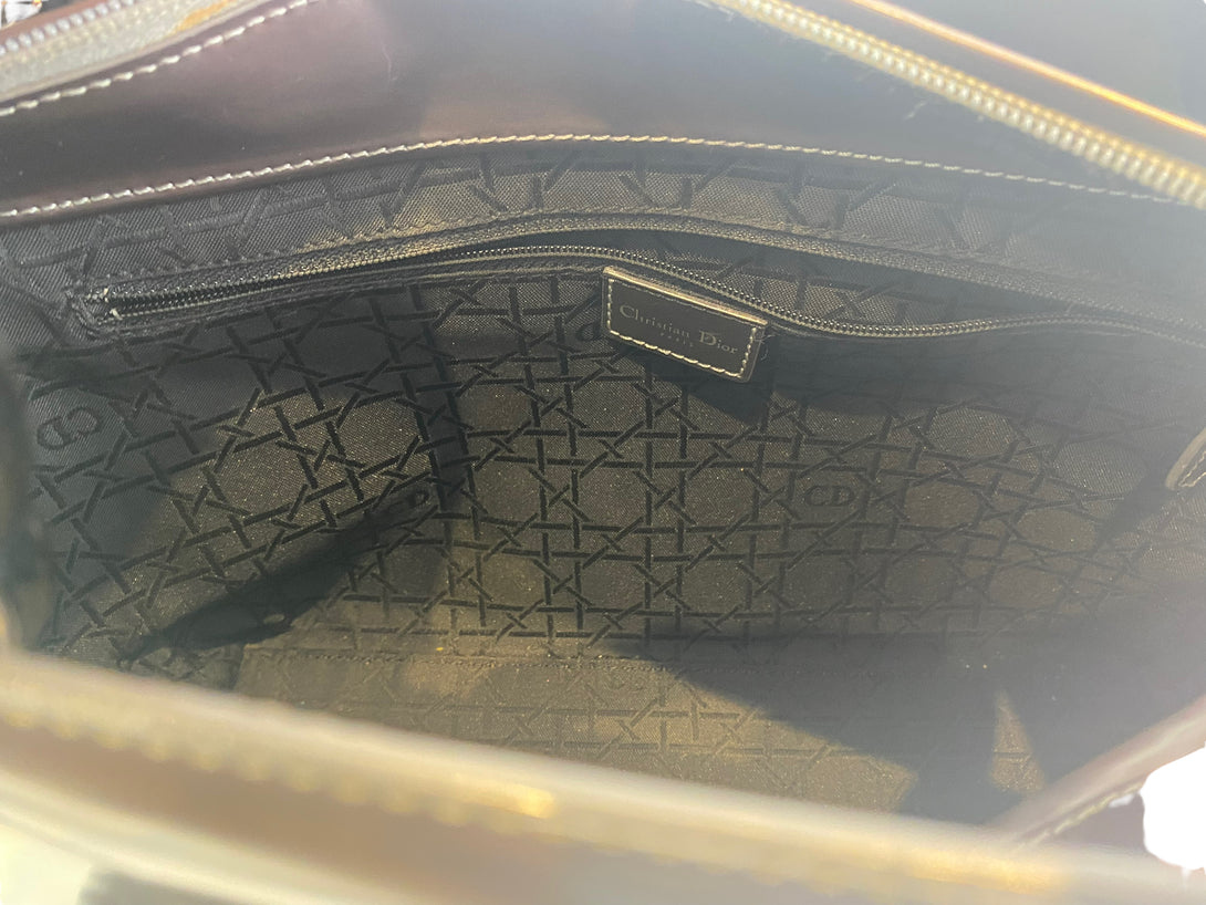 Good: Items show more prominent wear such as noticeable discoloration, stains and snags to fabric. May have worn corners and handles, tarnishing to hardware and creasing to leather. Pen or make up marks may be visible in the interior of the bag.