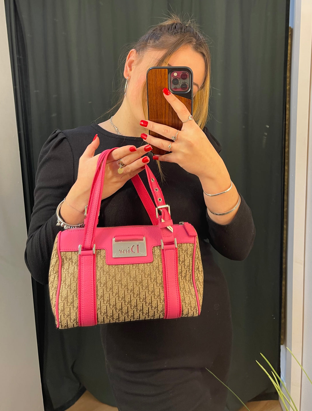 Christian Dior Monogram Canvas & Pink Leather Vintage Tote