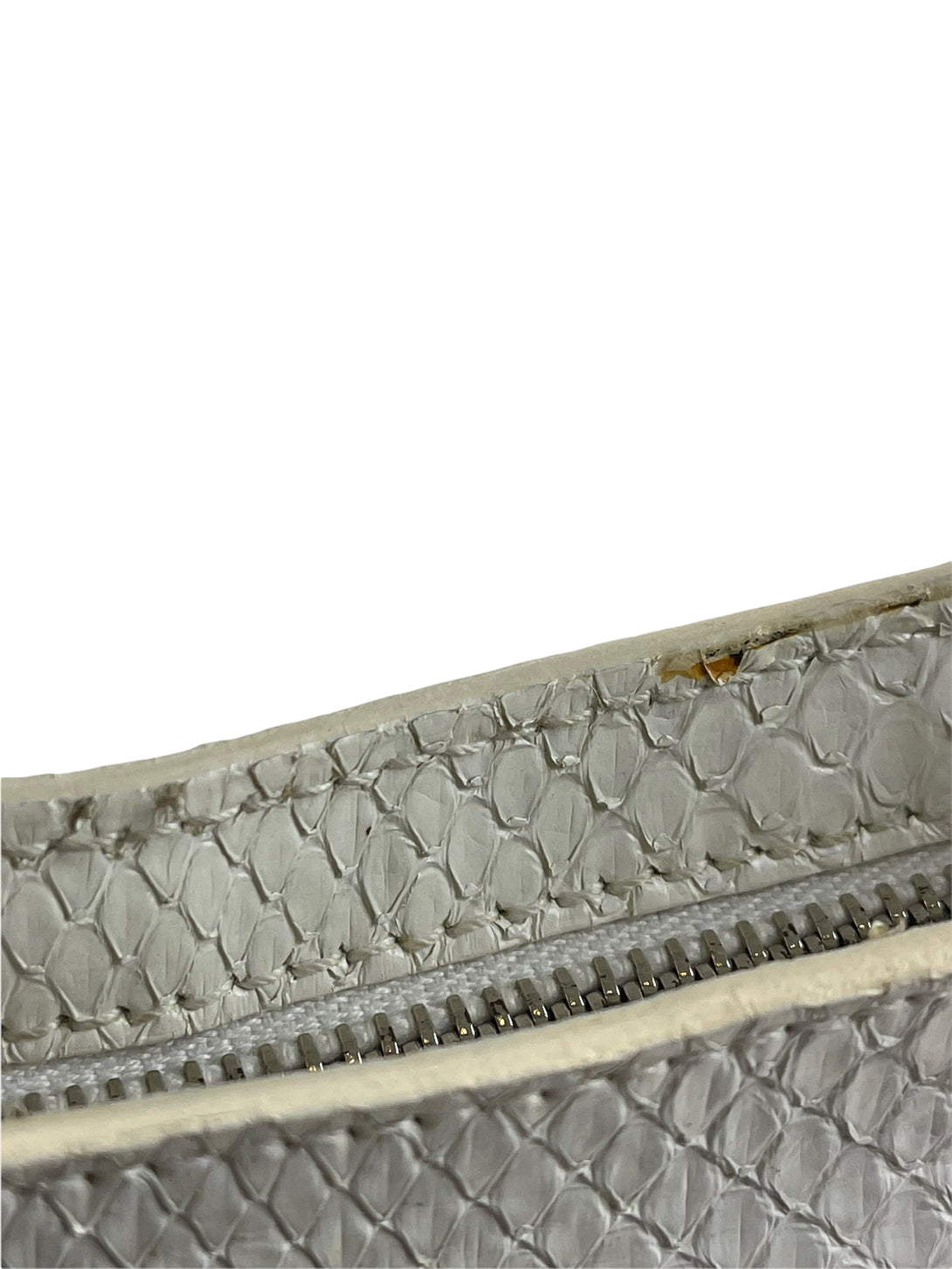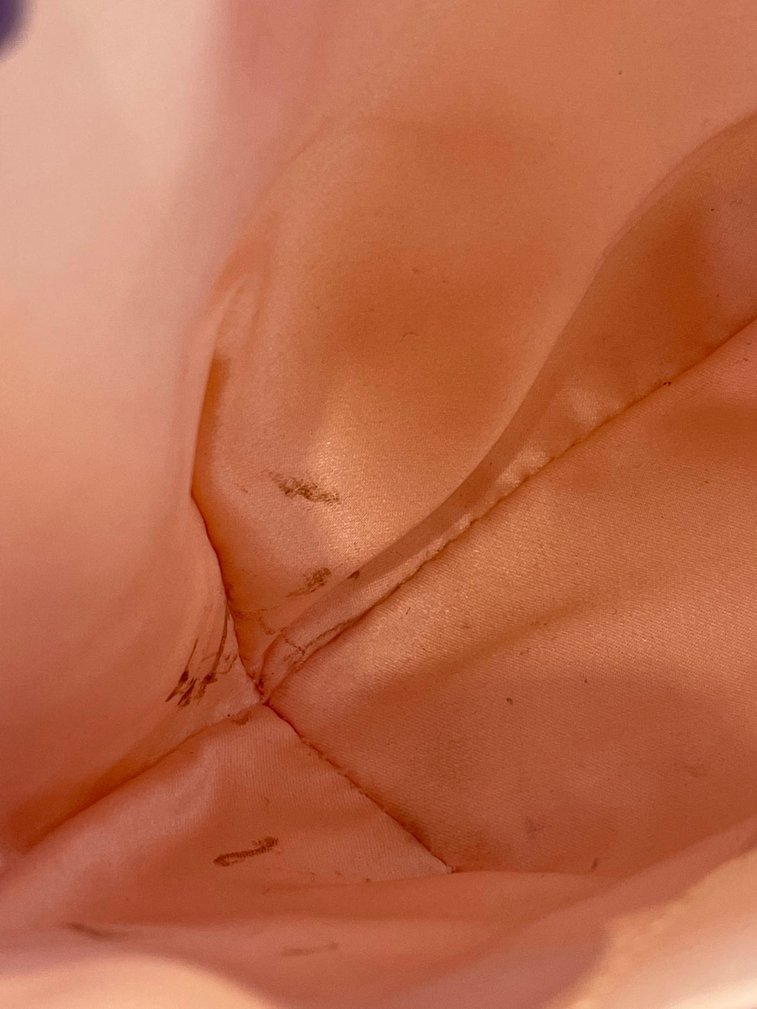 Good: Items show more prominent wear such as noticeable discoloration, stains and snags to fabric. May have worn corners and handles, tarnishing to hardware and creasing to leather. Pen or make up marks may be visible in the interior of the bag.