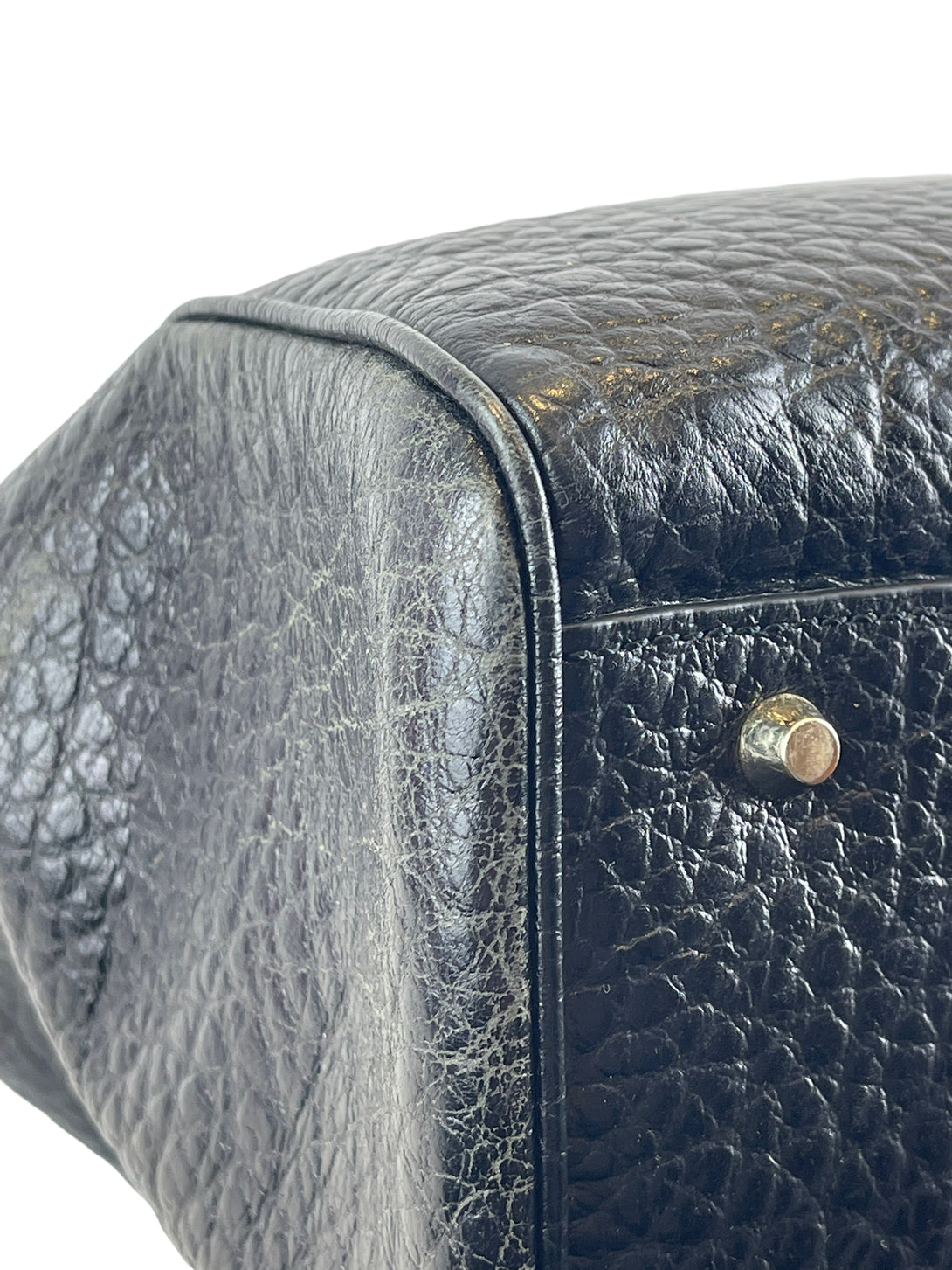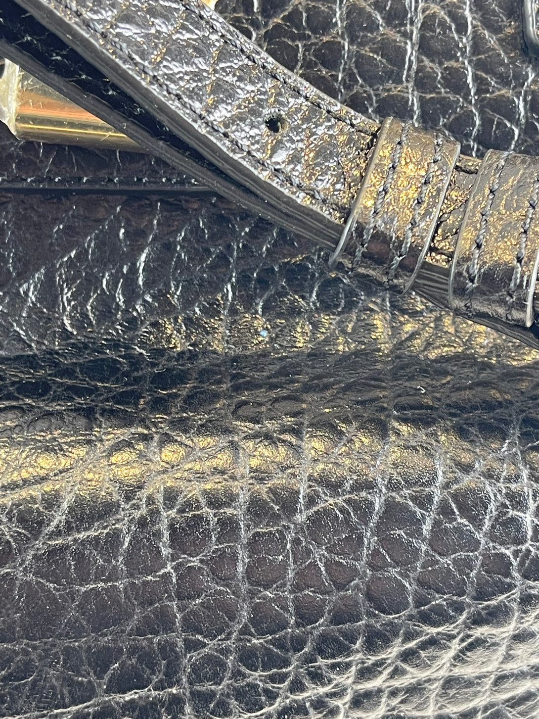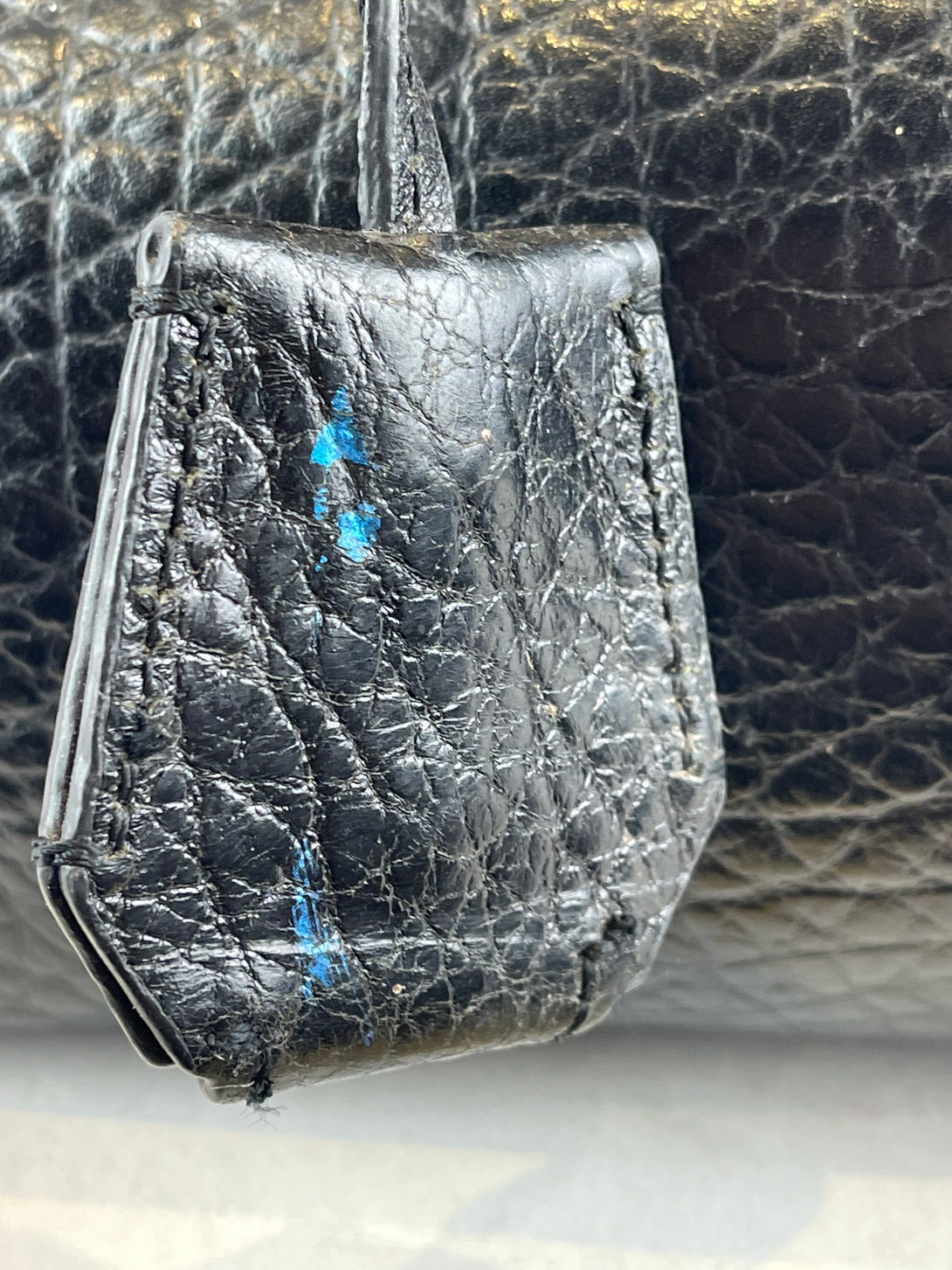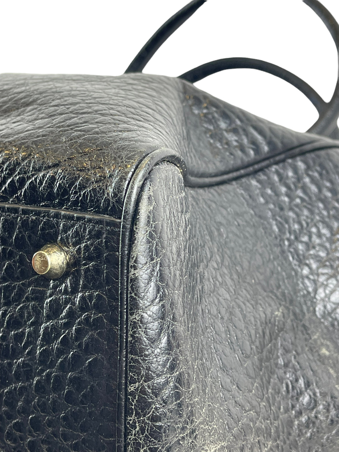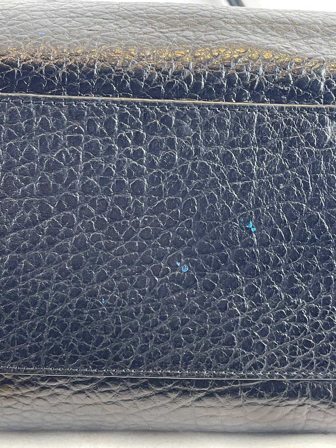 Good: Items show more prominent wear such as noticeable discoloration, stains and snags to fabric. May have worn corners and handles, tarnishing to hardware and creasing to leather. Pen or make up marks may be visible in the interior of the bag.