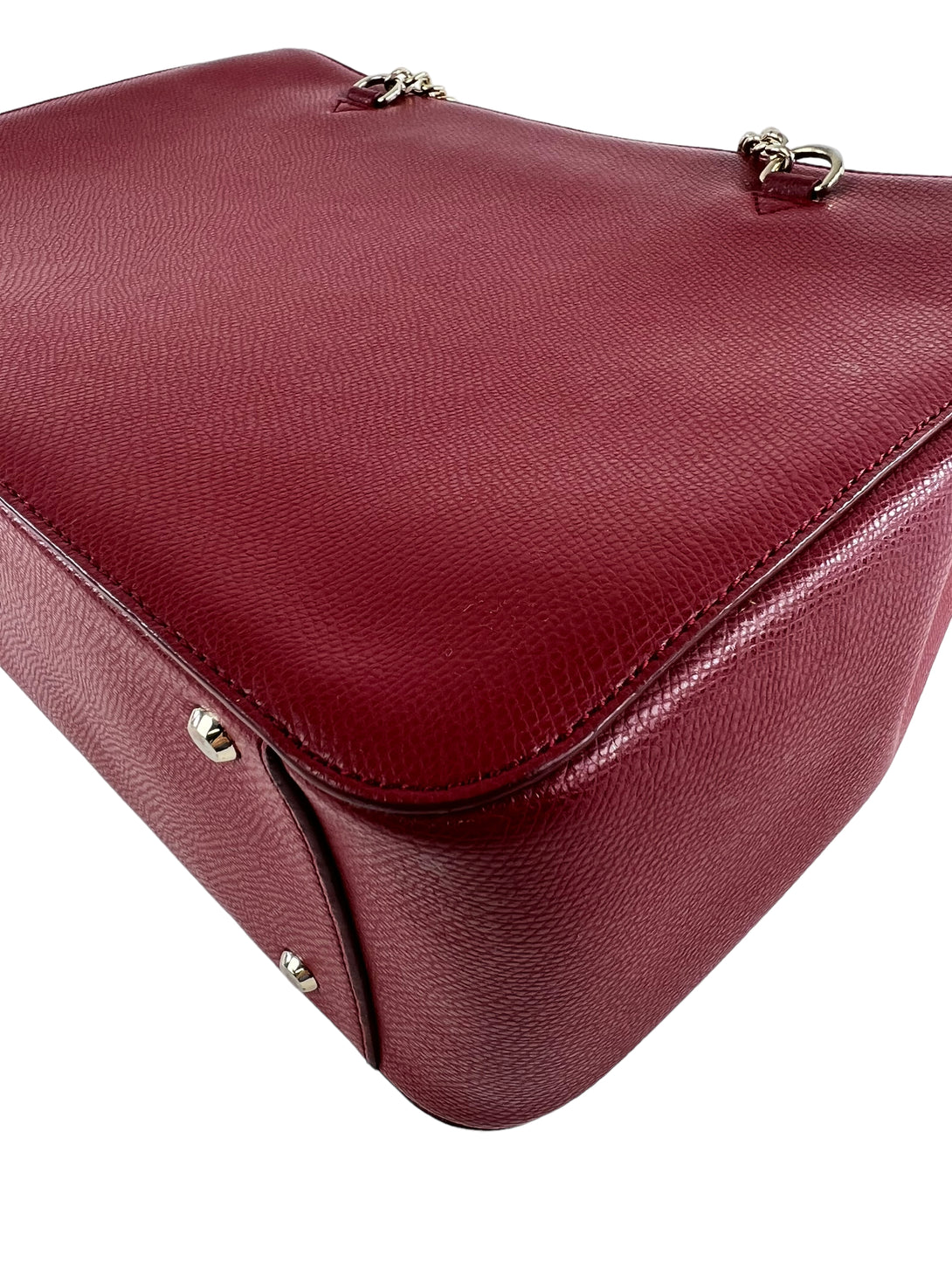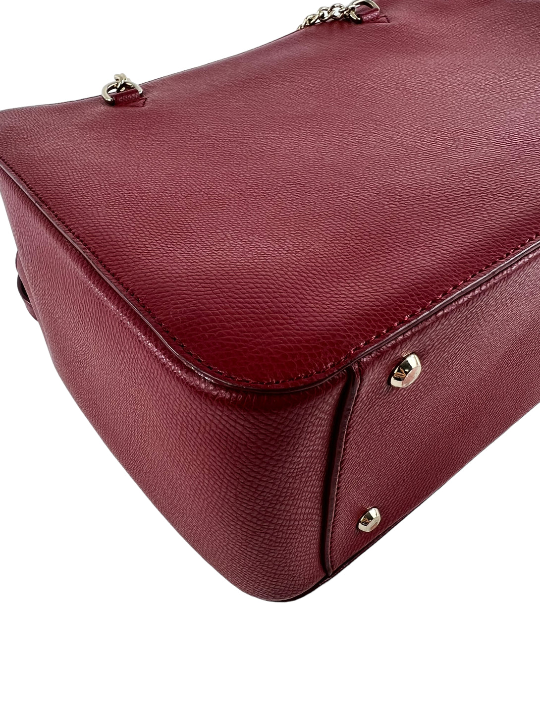 Good: Items show more prominent wear such as noticeable discoloration, stains and snags to fabric. May have worn corners and handles, tarnishing to hardware and creasing to leather. Pen or make up marks may be visible in the interior of the bag.