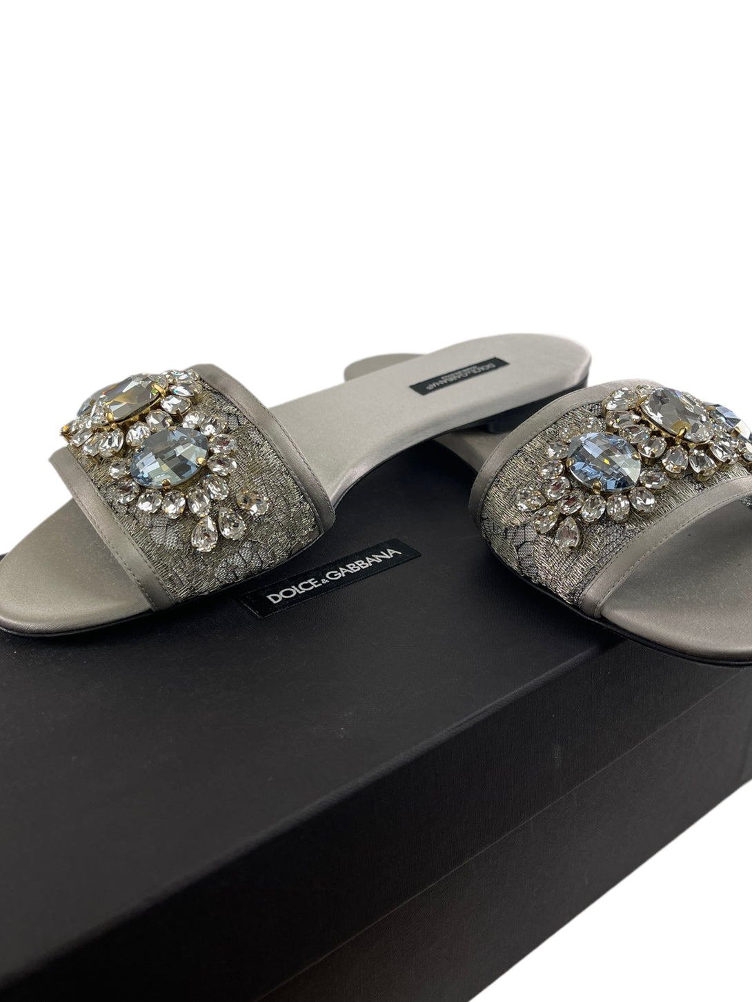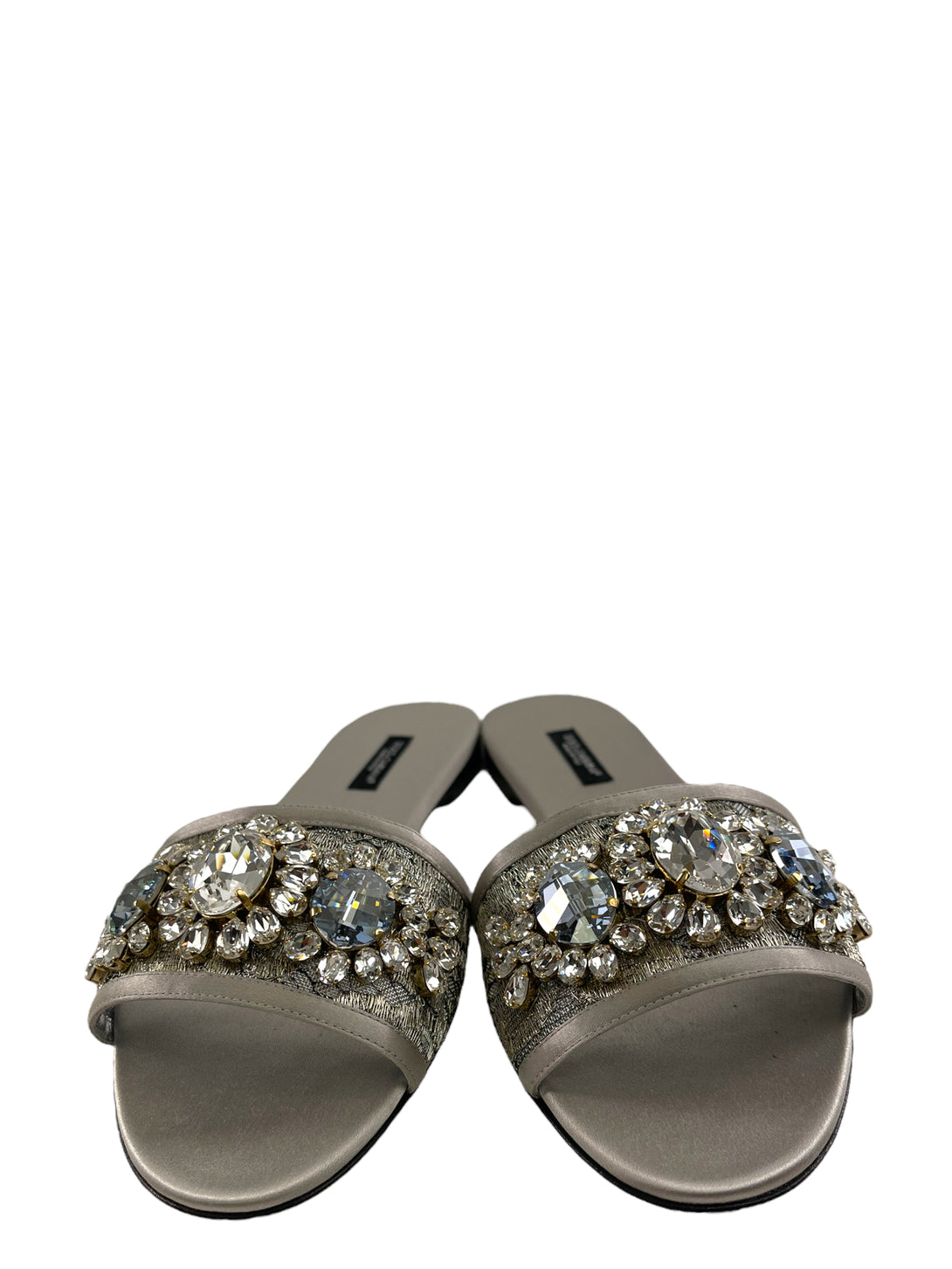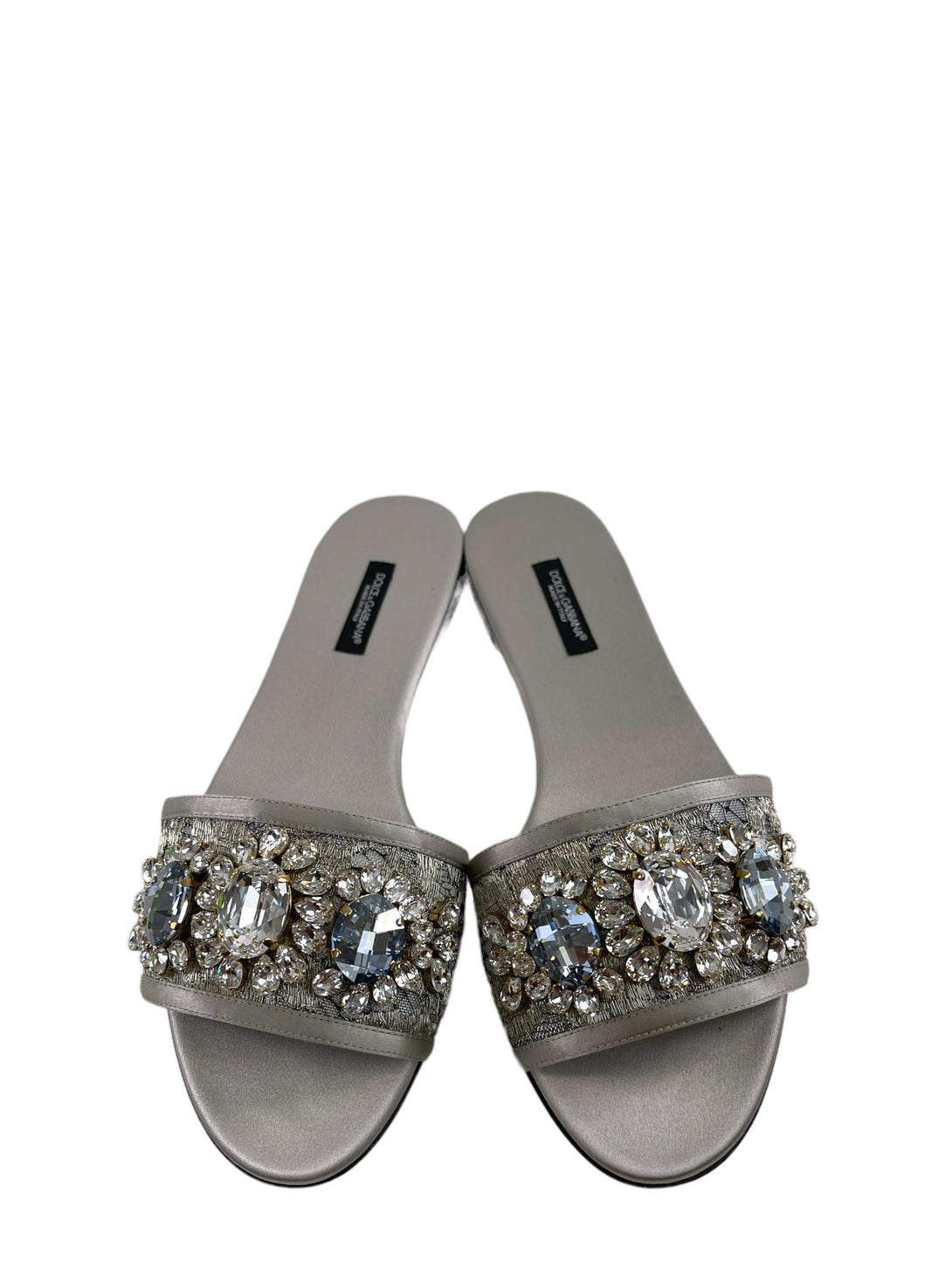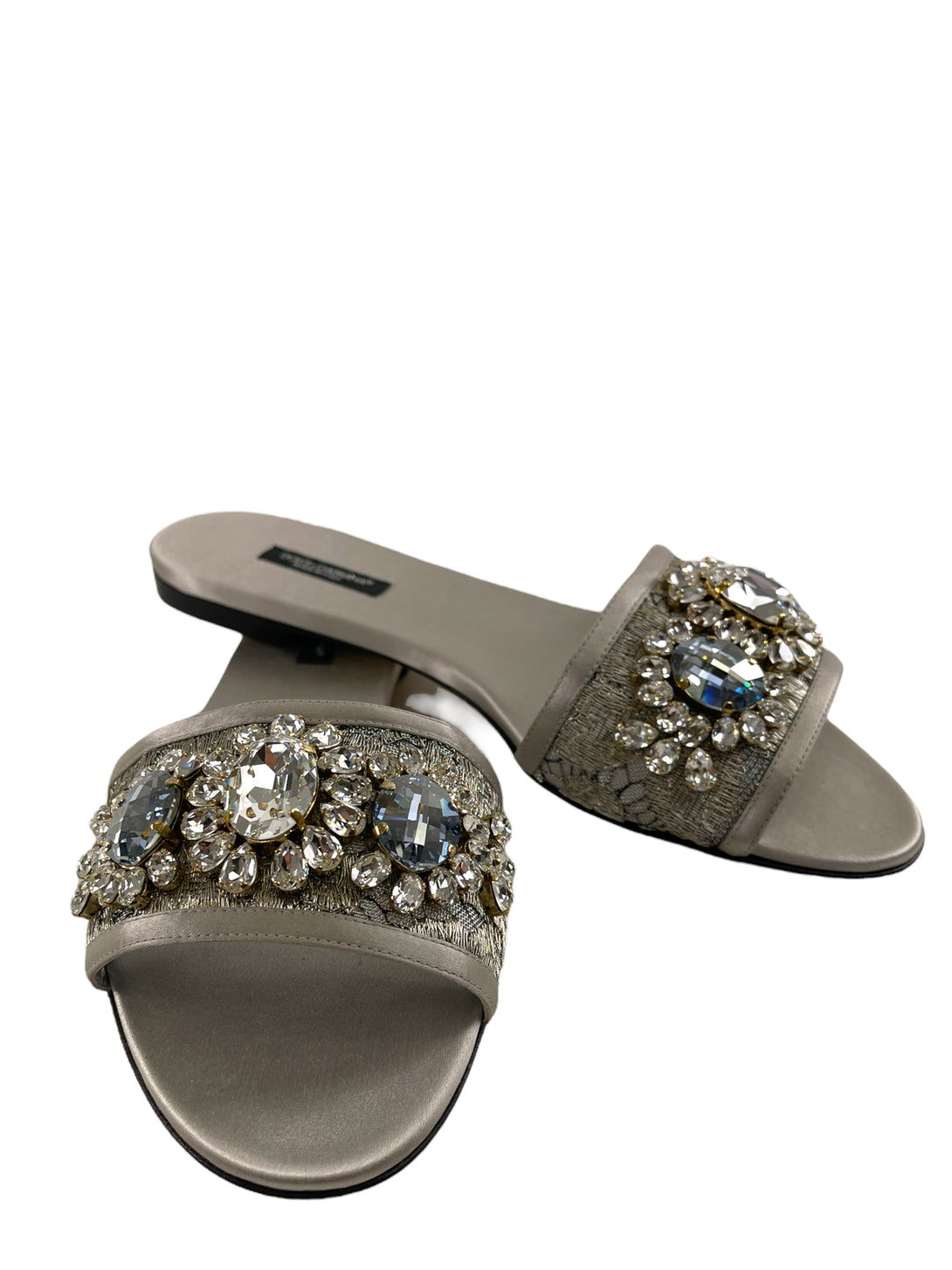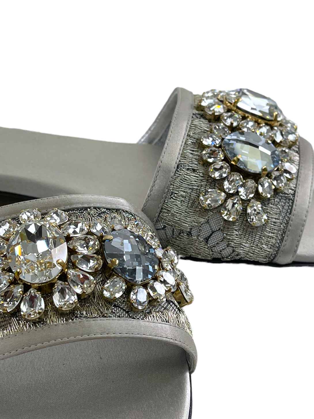Dolce Gabbana Silver Sandali Pizzo Lurex + Raso Sandals - UK 5.5