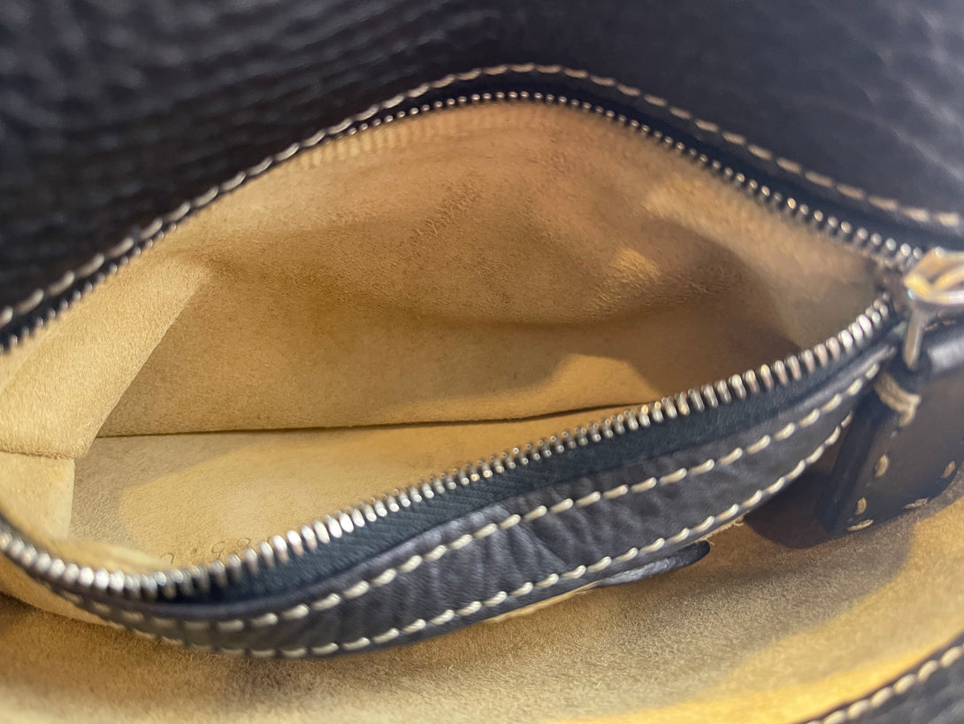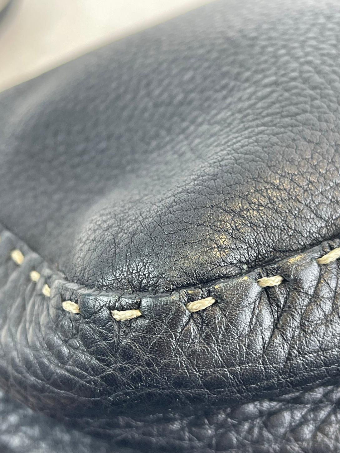 Good: Items show more prominent wear such as noticeable discoloration, stains and snags to fabric. May have worn corners and handles, tarnishing to hardware and creasing to leather. Pen or make up marks may be visible in the interior of the bag.