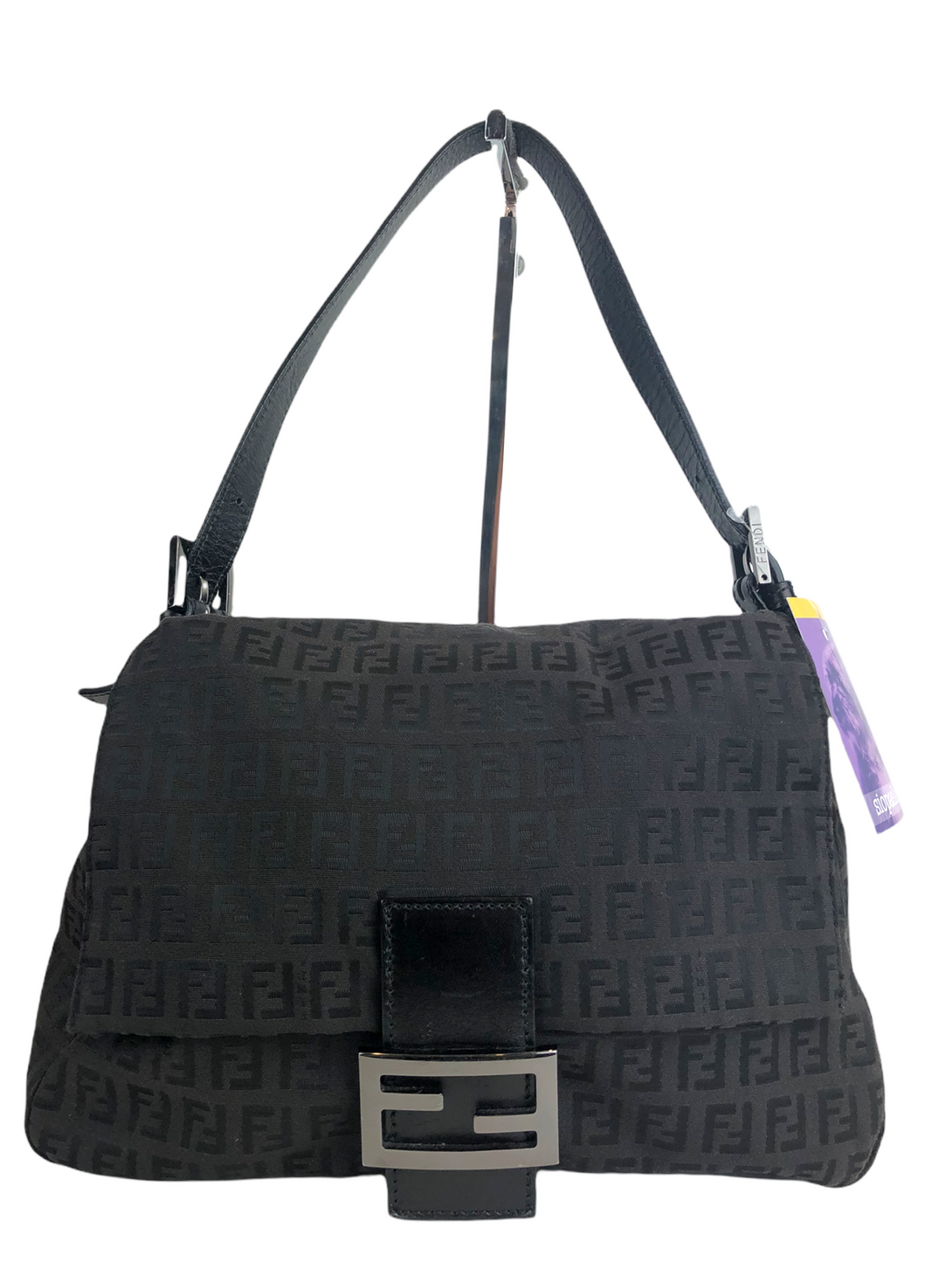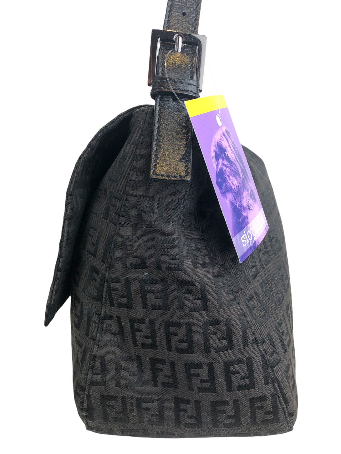 Fendi Black Signature Zucca Monogram Canvas Shoulder Bag