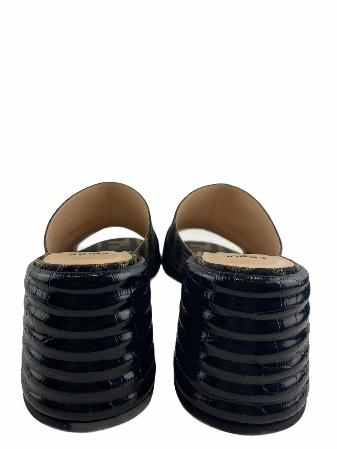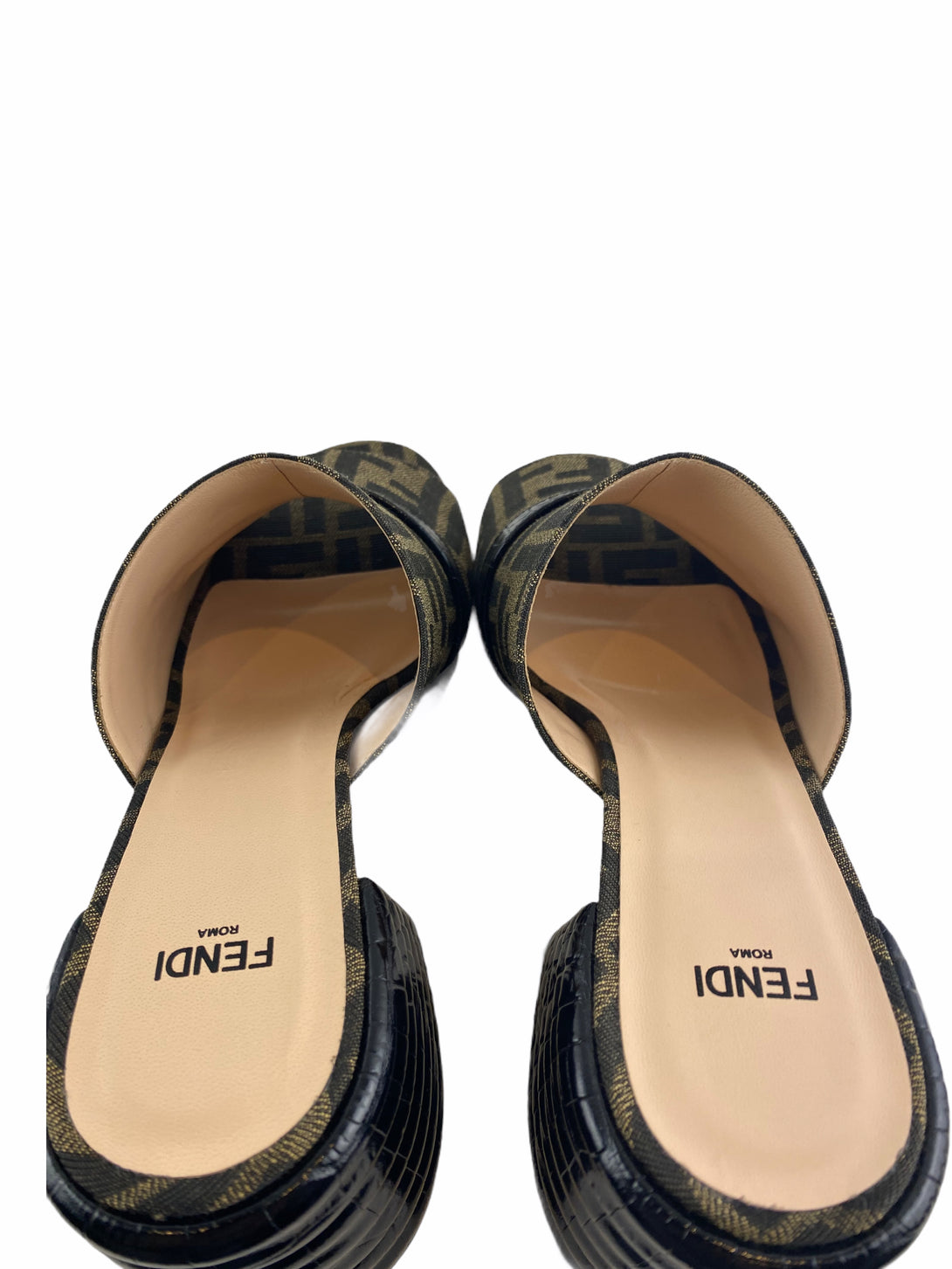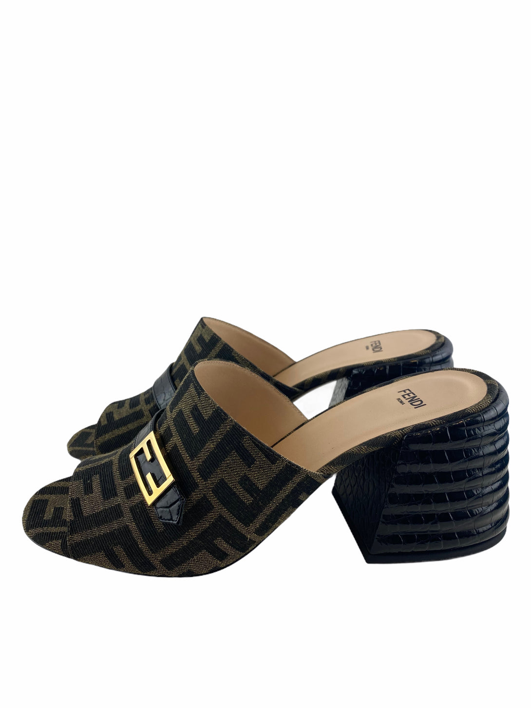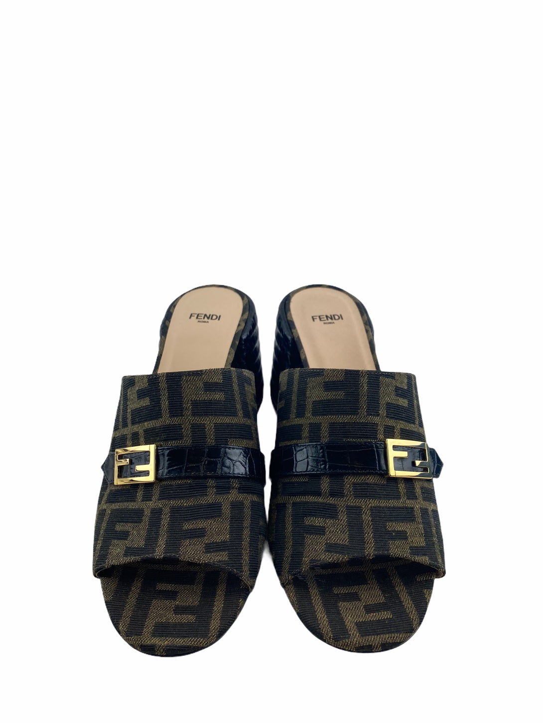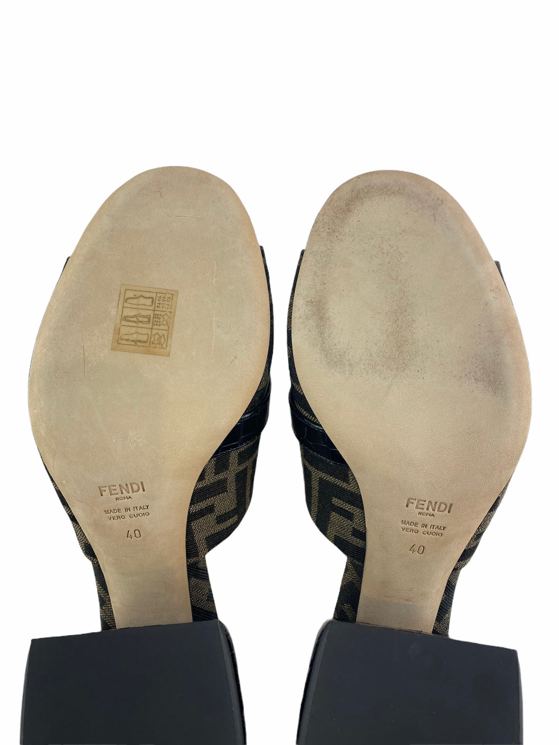 Fendi Brown Fabric Heel Mules - EU 40 / uk 7