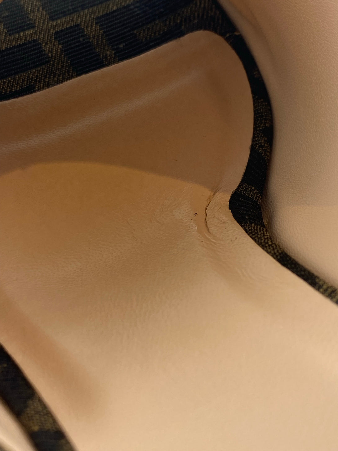 Good: Items show more prominent wear such as noticeable discoloration, stains and snags to fabric. May have worn corners and handles, tarnishing to hardware and creasing to leather. Pen or make up marks may be visible in the interior of the bag.