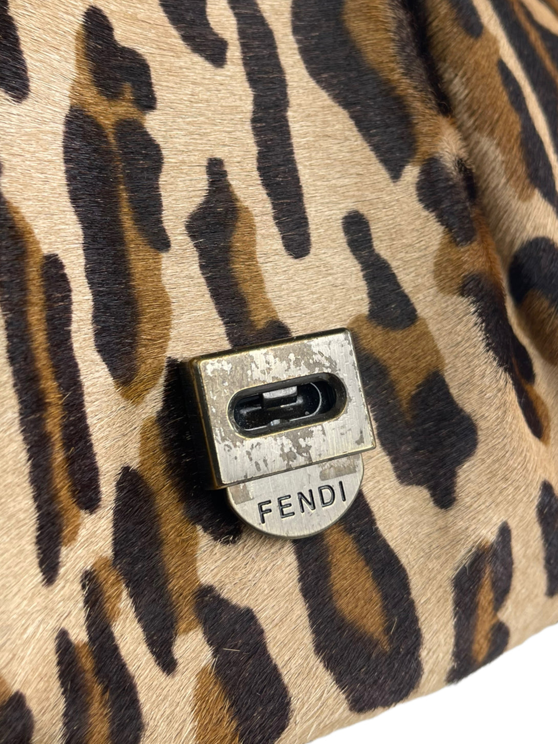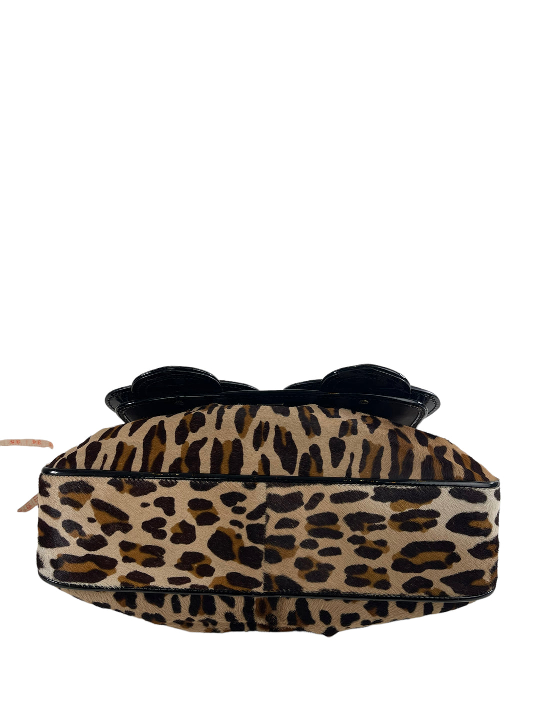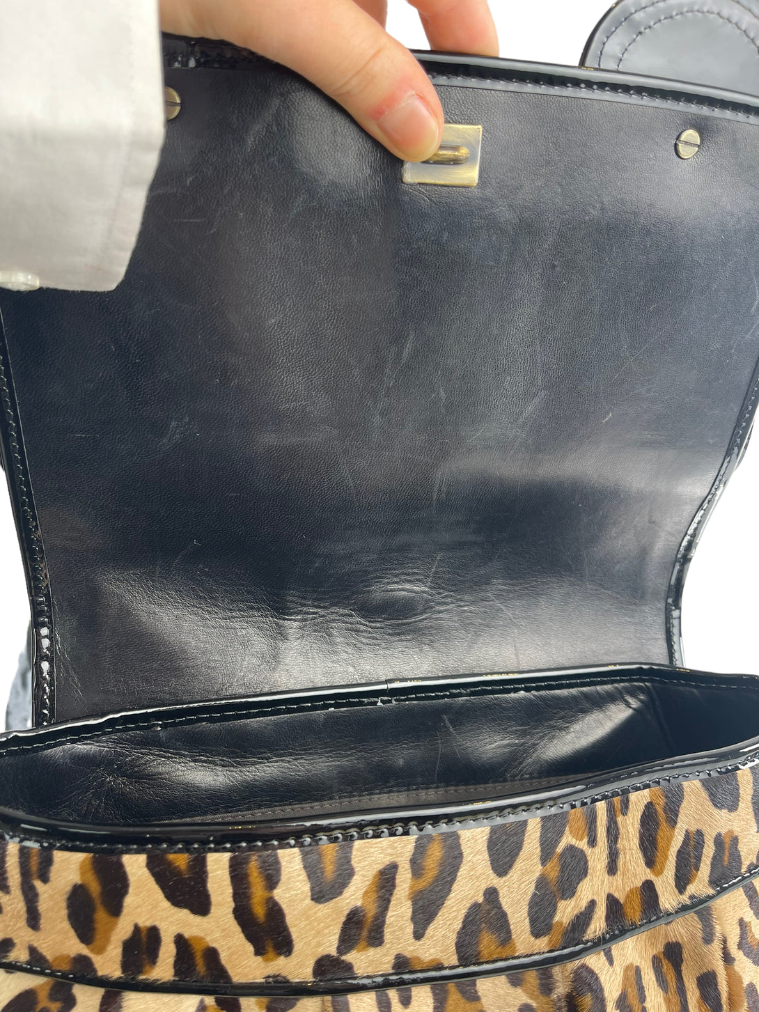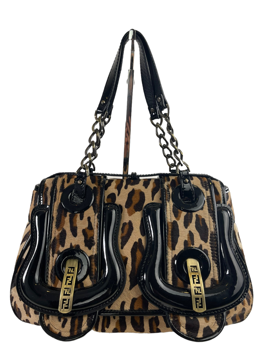 Fendi Leopard Print Pony Hair “B. Bag” Handbag with Black Patent Trim