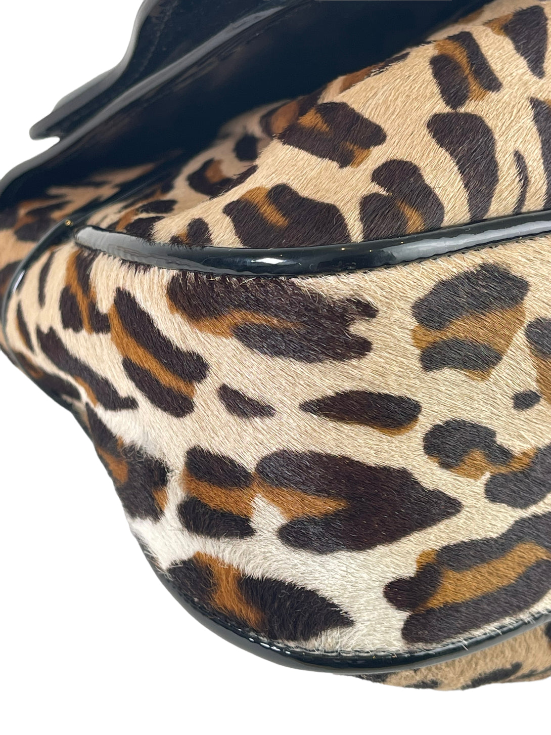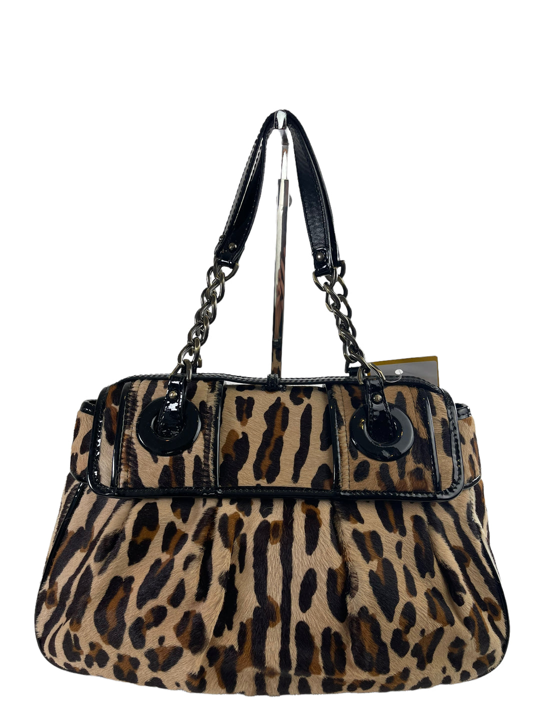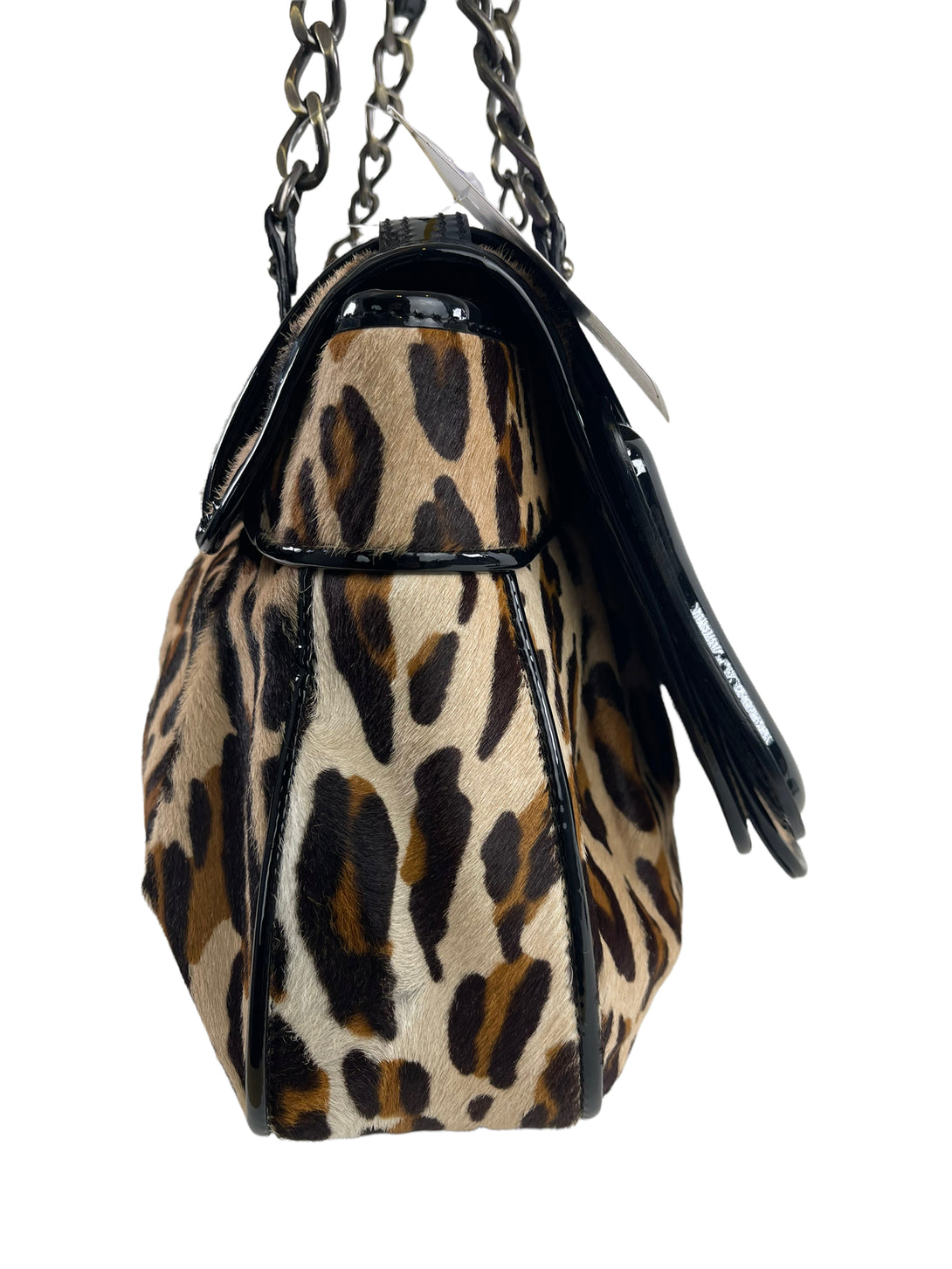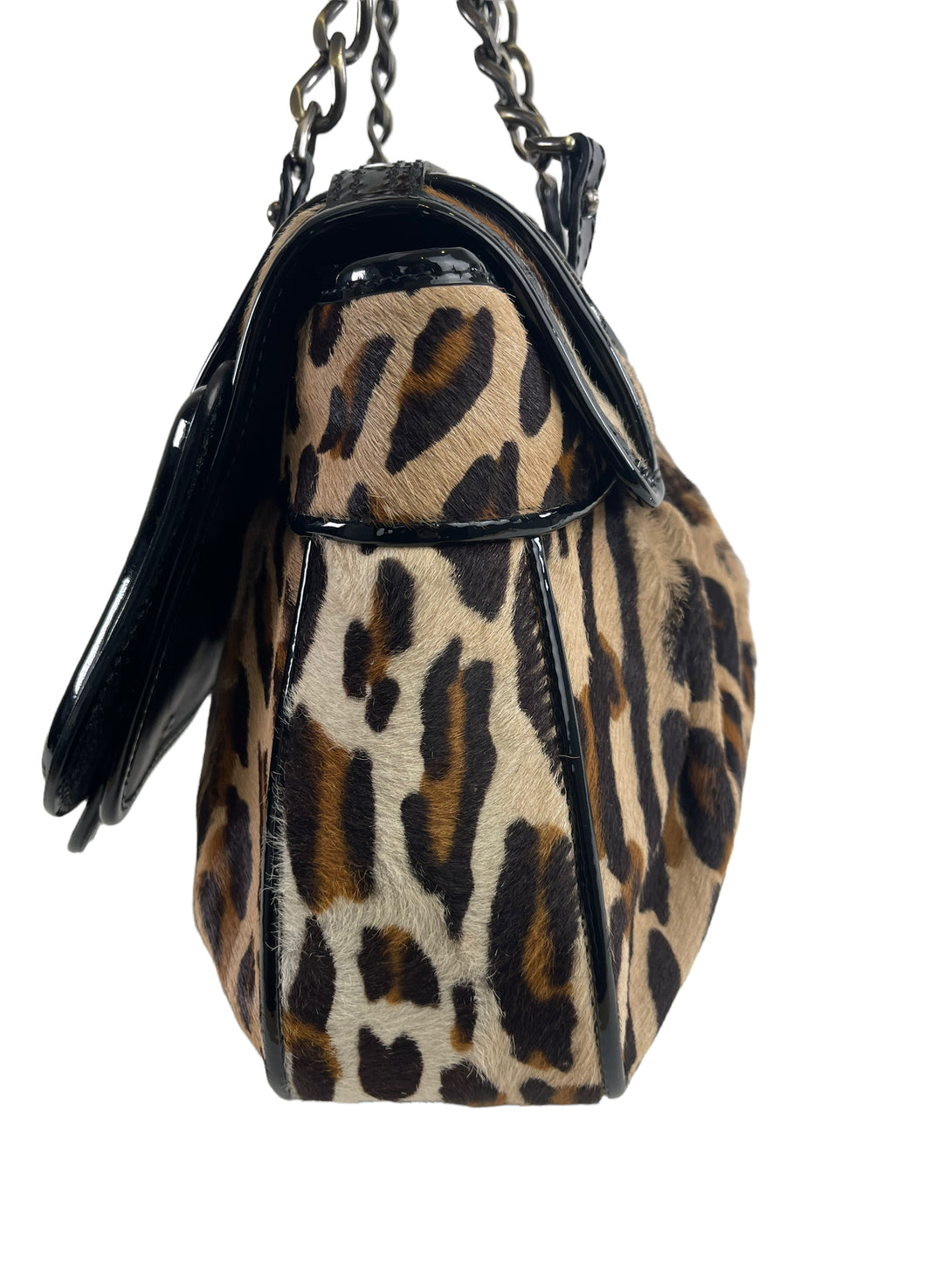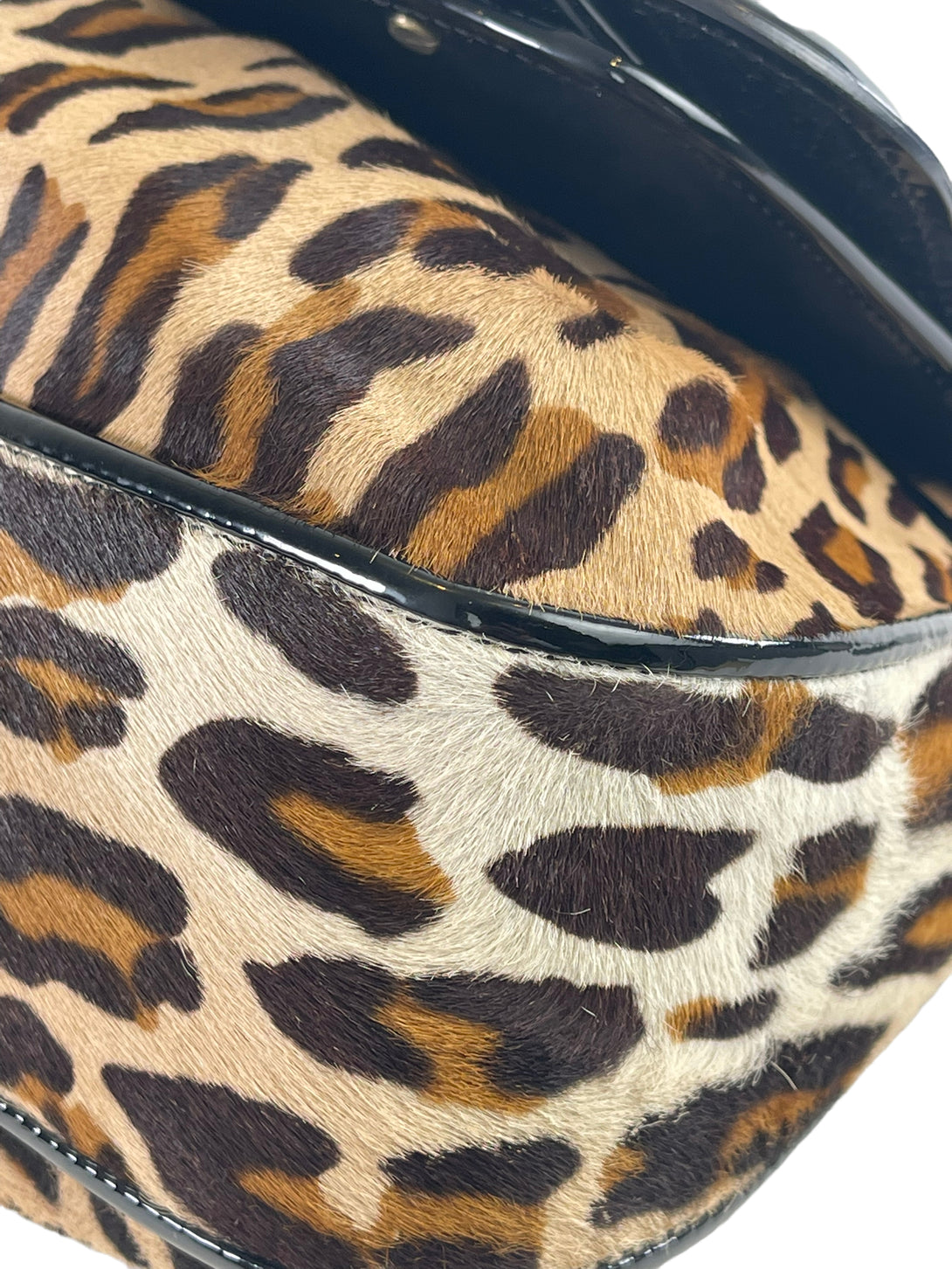 Fendi Leopard Print Pony Hair “B. Bag” Handbag with Black Patent Trim