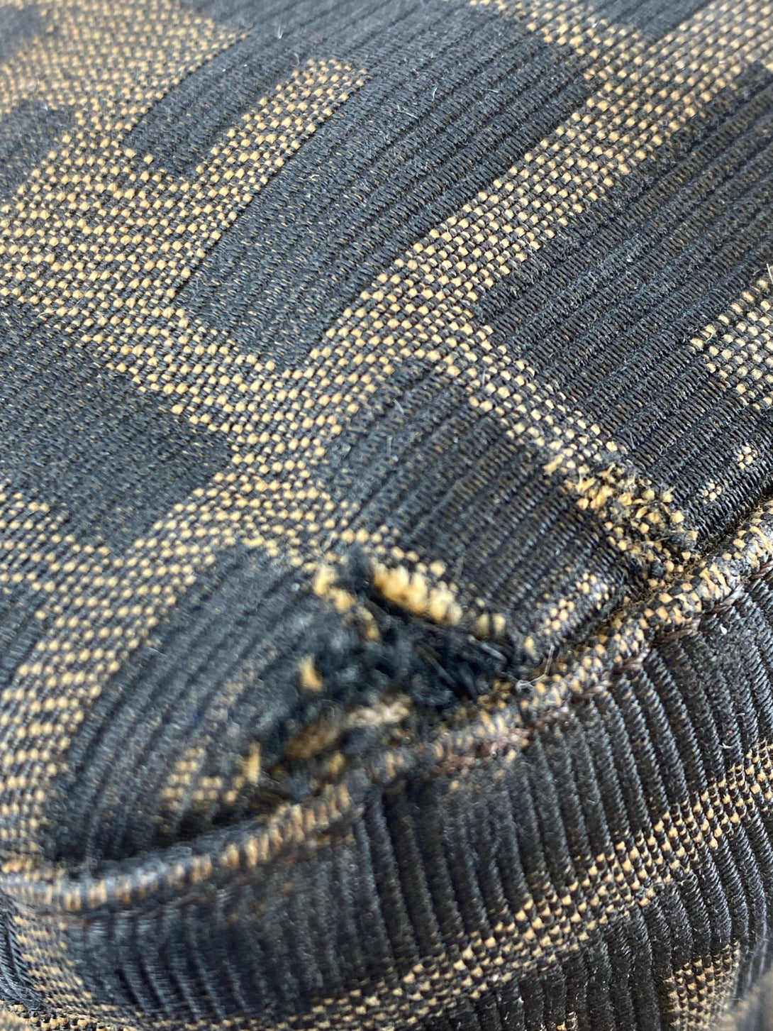 Good: Items show more prominent wear such as noticeable discoloration, stains and snags to fabric. May have worn corners and handles, tarnishing to hardware and creasing to leather. Pen or make up marks may be visible in the interior of the bag.
