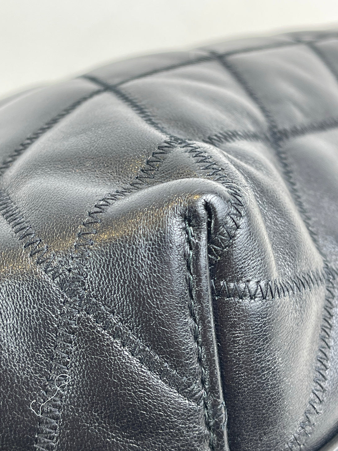 Good: Items show more prominent wear such as noticeable discoloration, stains and snags to fabric. May have worn corners and handles, tarnishing to hardware and creasing to leather. Pen or make up marks may be visible in the interior of the bag.