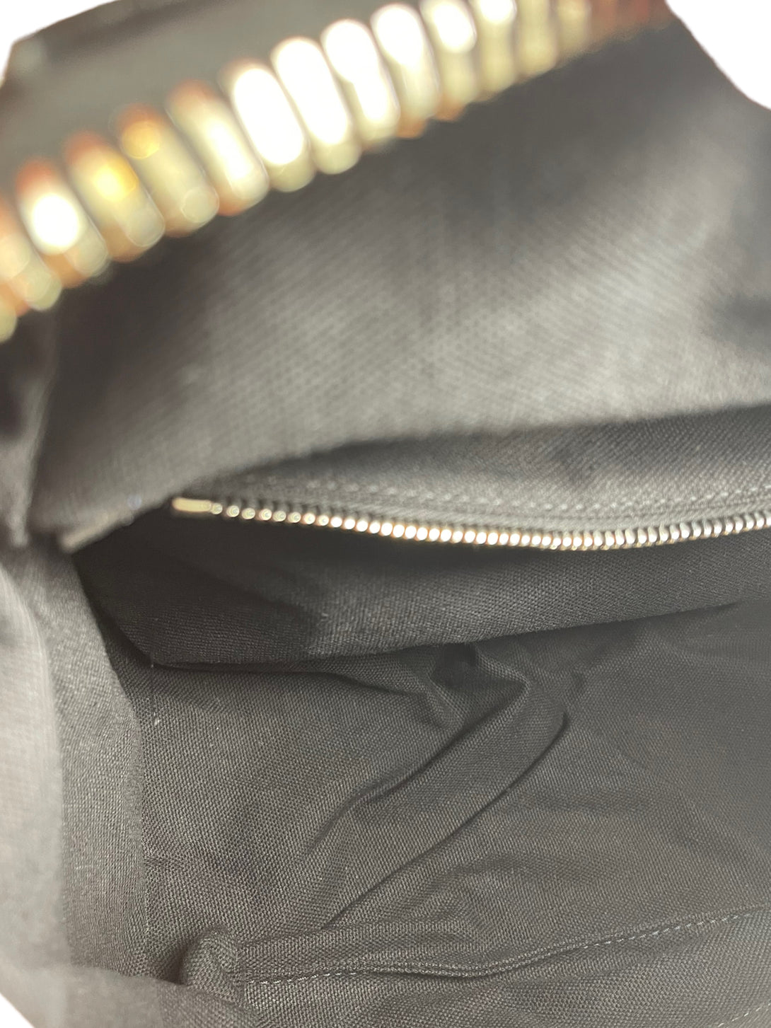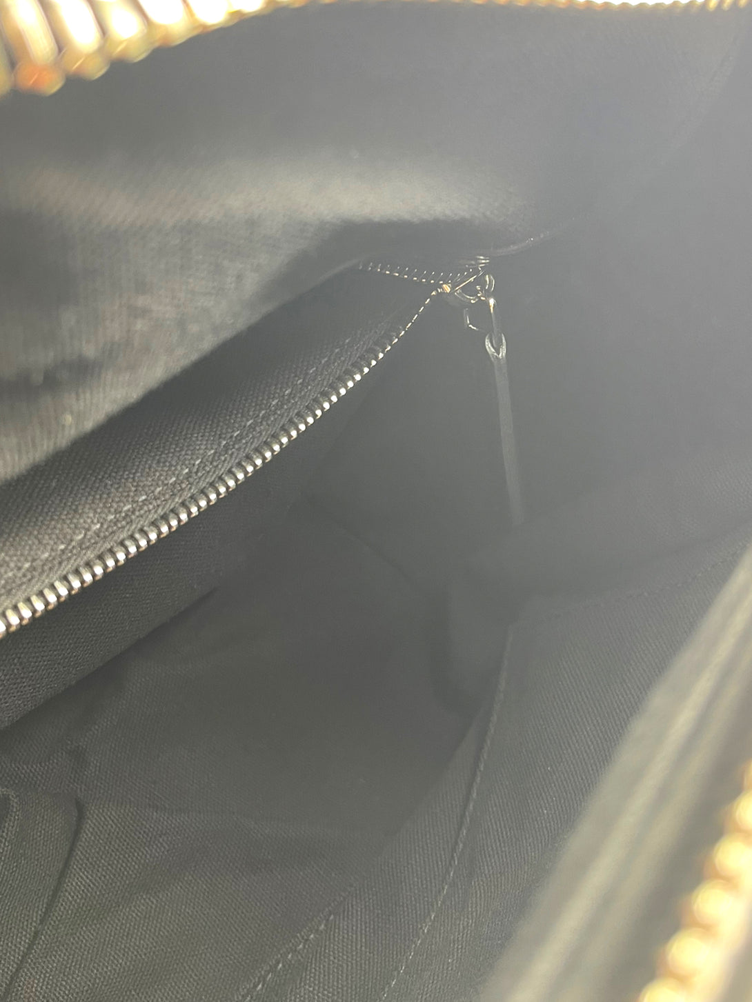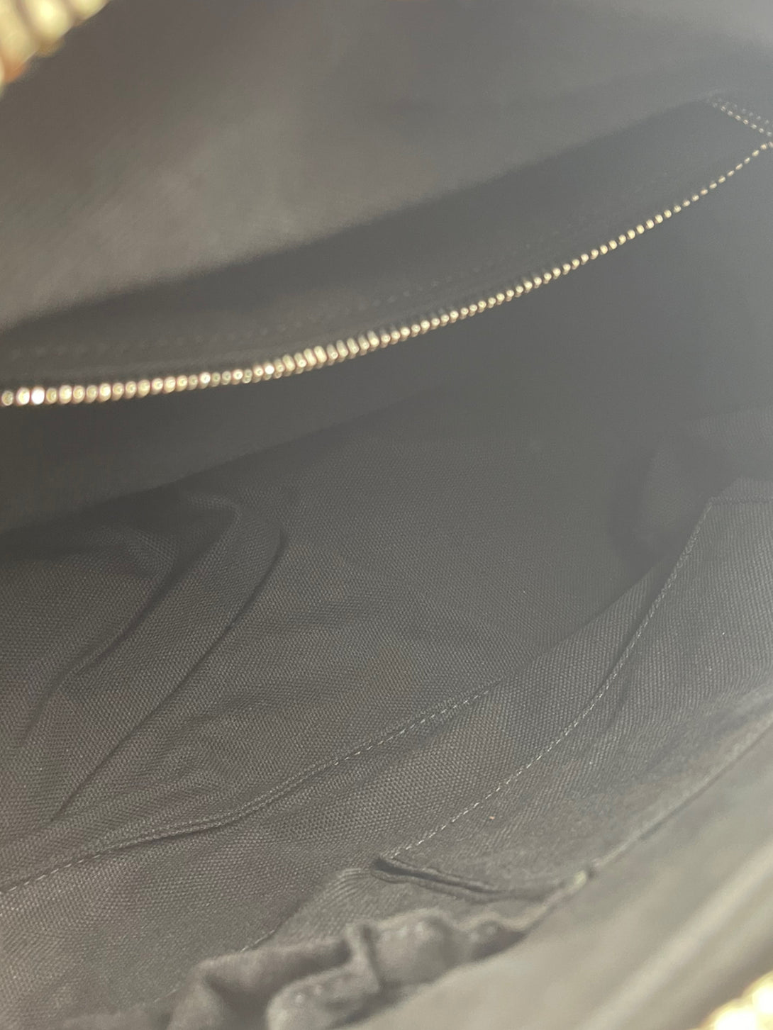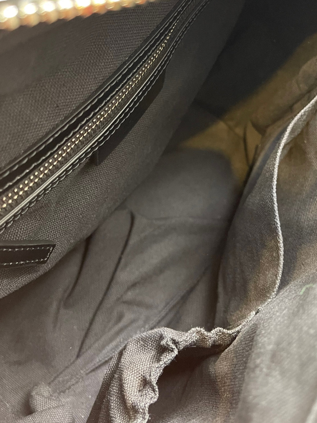 Good: Items show more prominent wear such as noticeable discoloration, stains and snags to fabric. May have worn corners and handles, tarnishing to hardware and creasing to leather. Pen or make up marks may be visible in the interior of the bag.