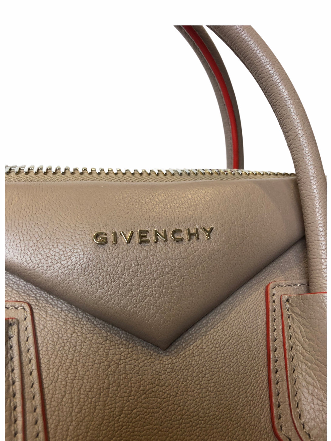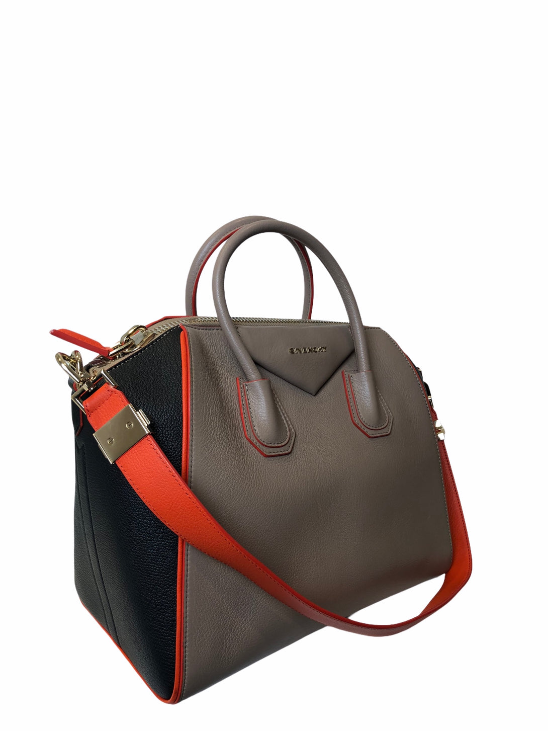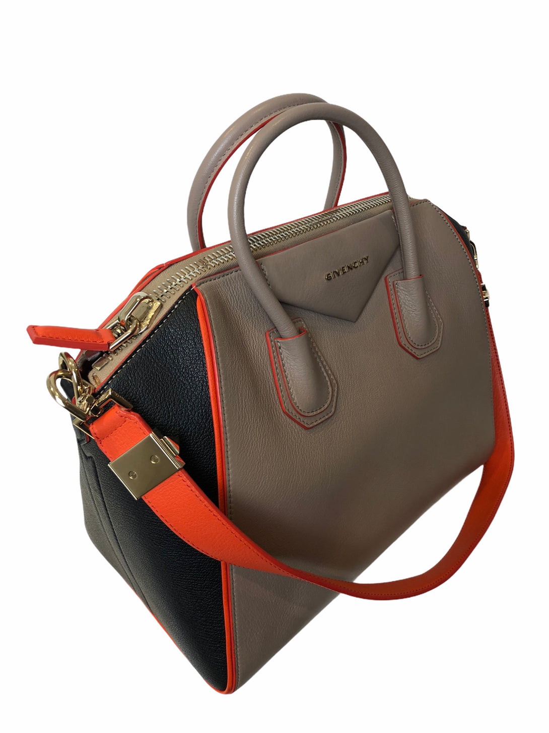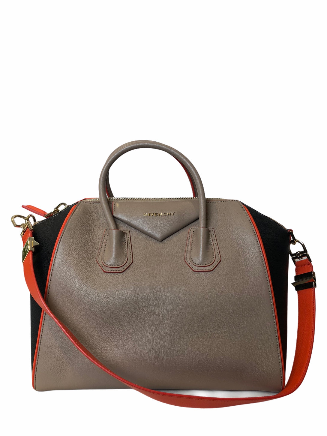 Givenchy Tan & Tangerine Grained Leather Large Antigona Tote