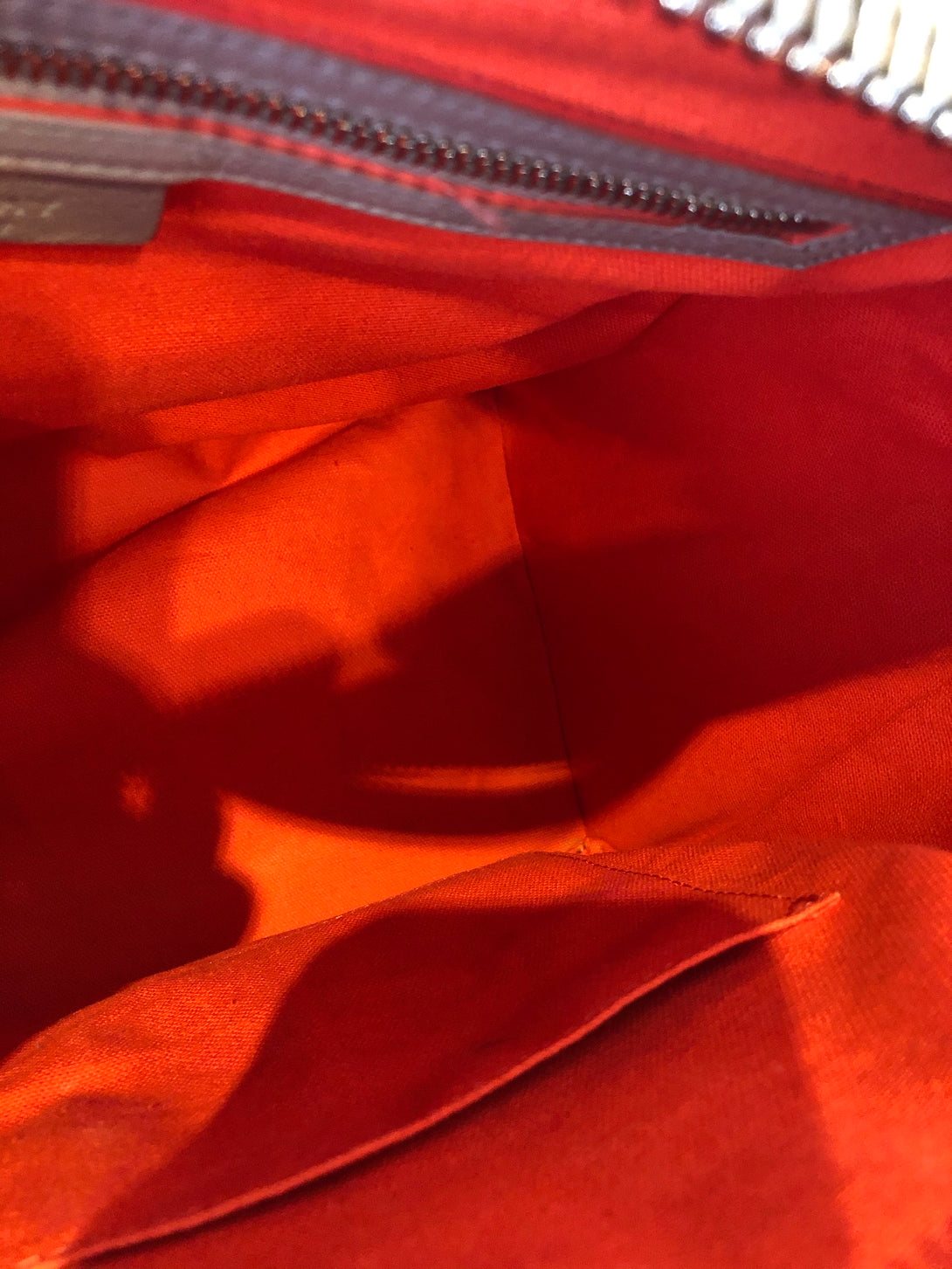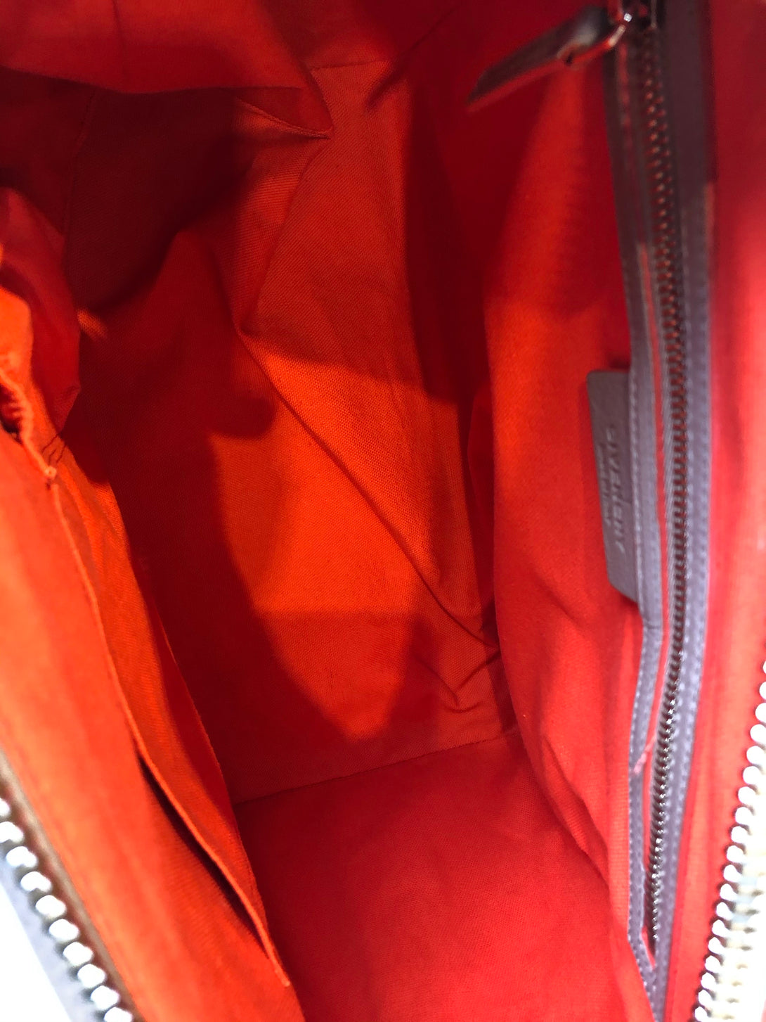 Good: Items show more prominent wear such as noticeable discoloration, stains and snags to fabric. May have worn corners and handles, tarnishing to hardware and creasing to leather. Pen or make up marks may be visible in the interior of the bag.