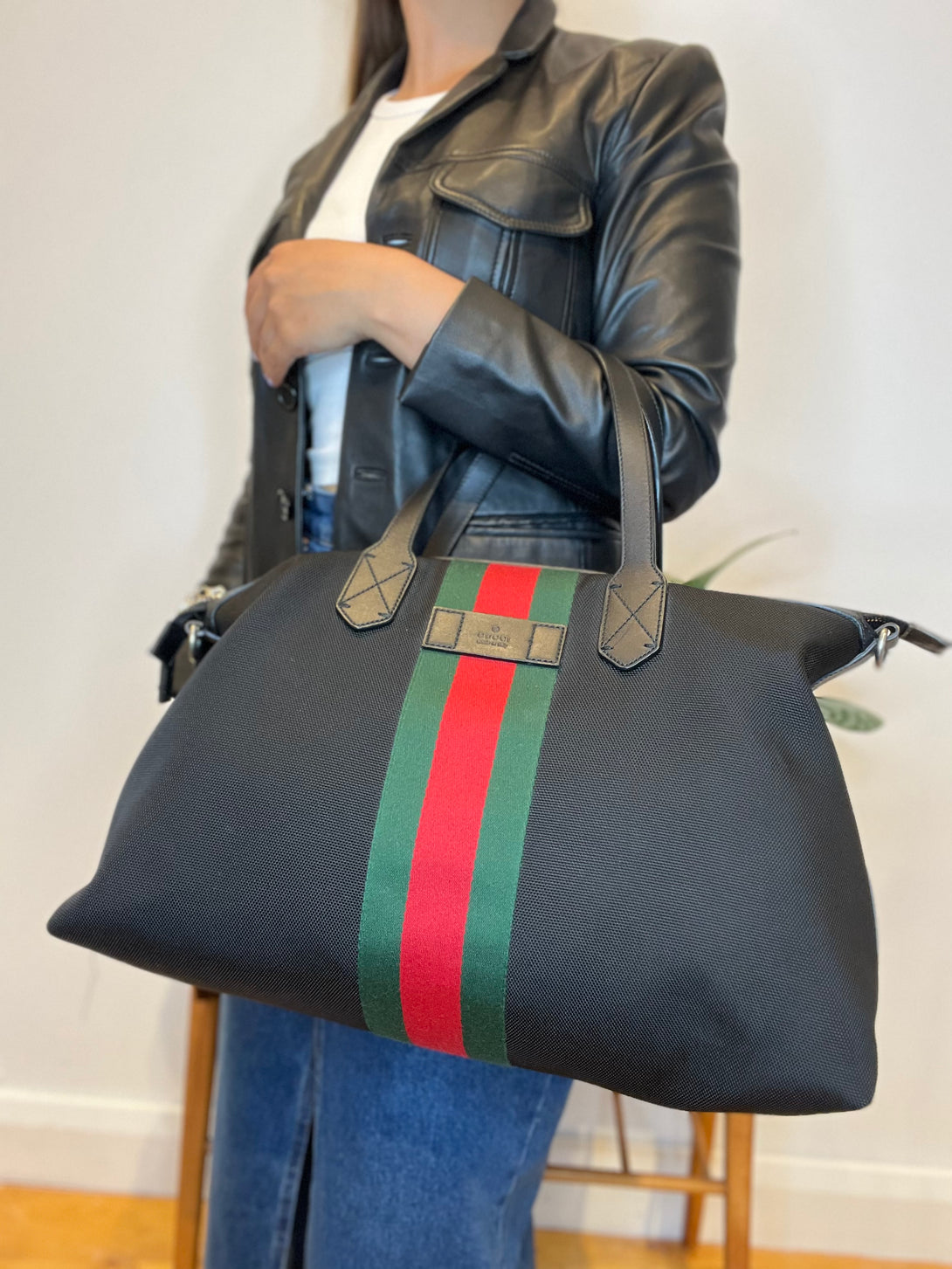 Gucci Black Canvas Luggage Tote