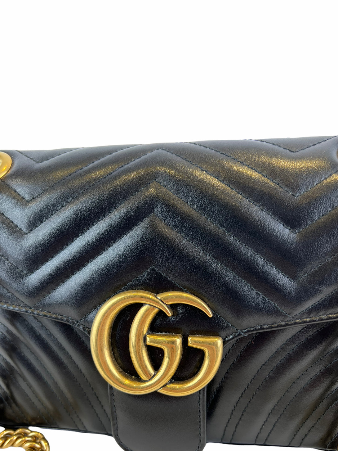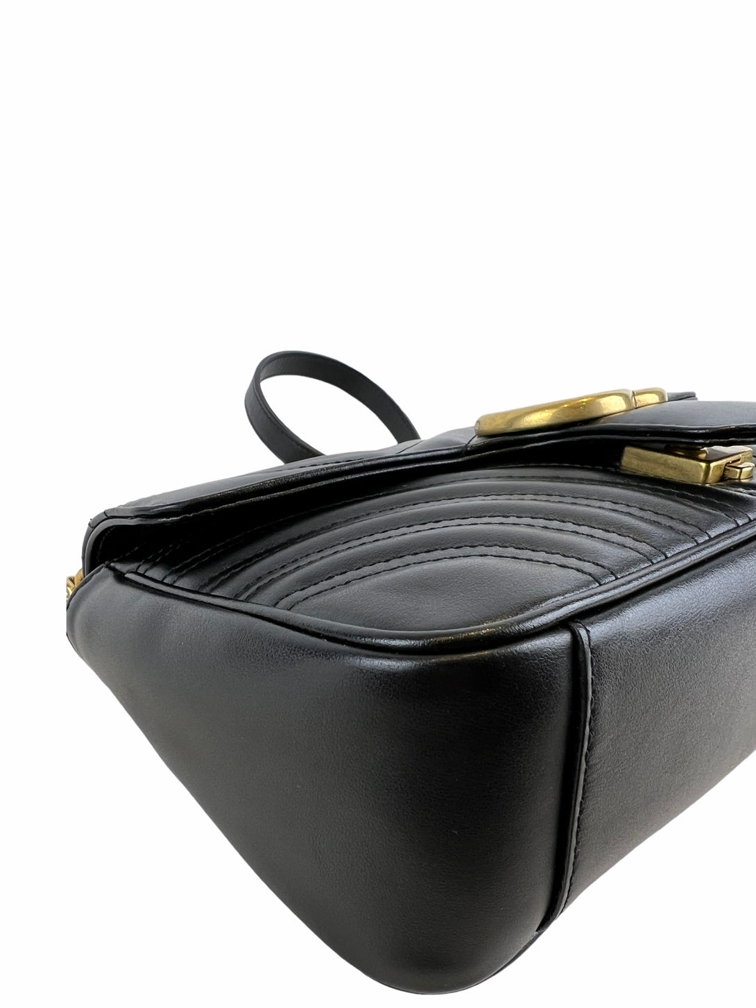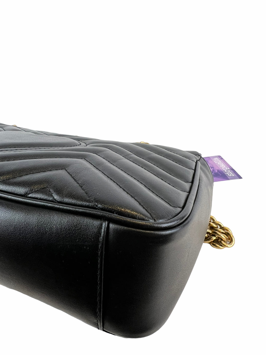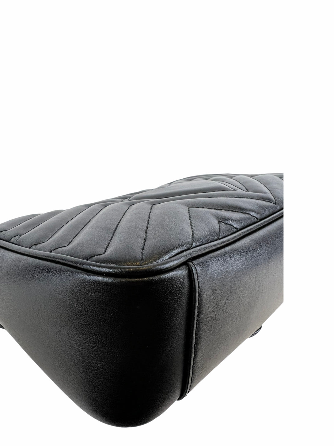 Gucci Black Chevron Leather GG Marmont Crossbody