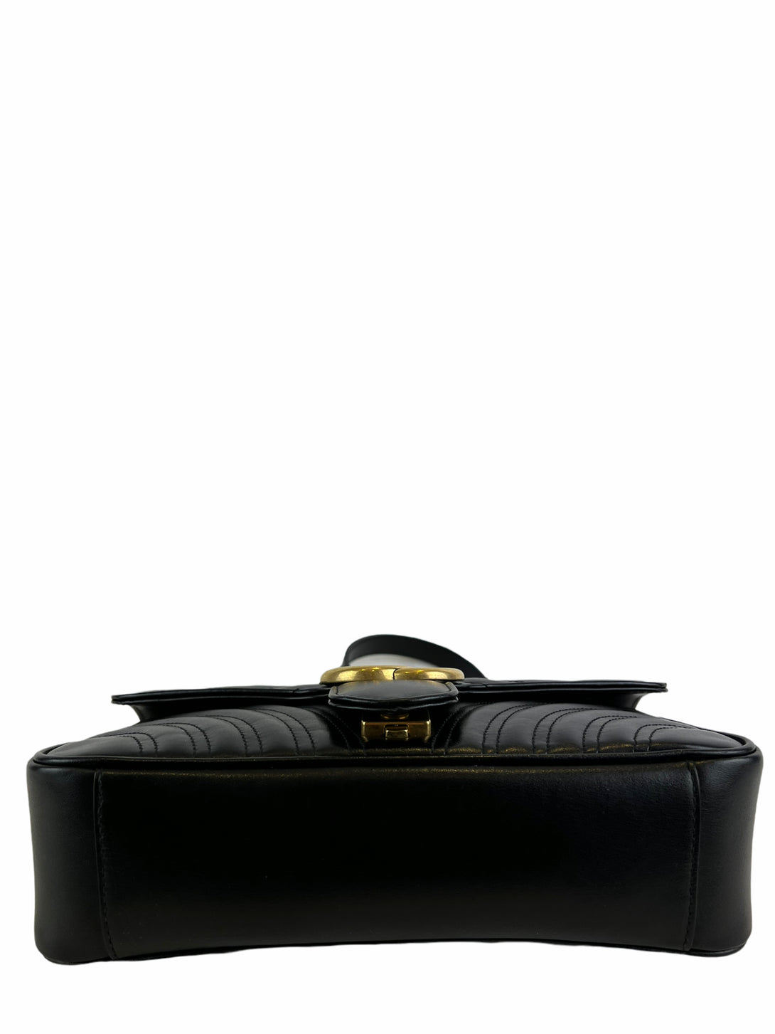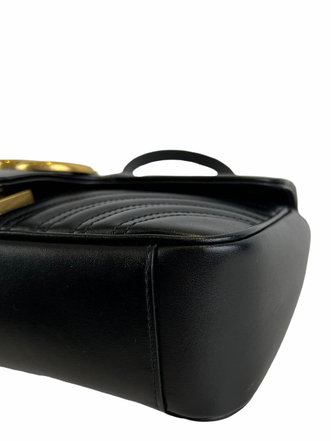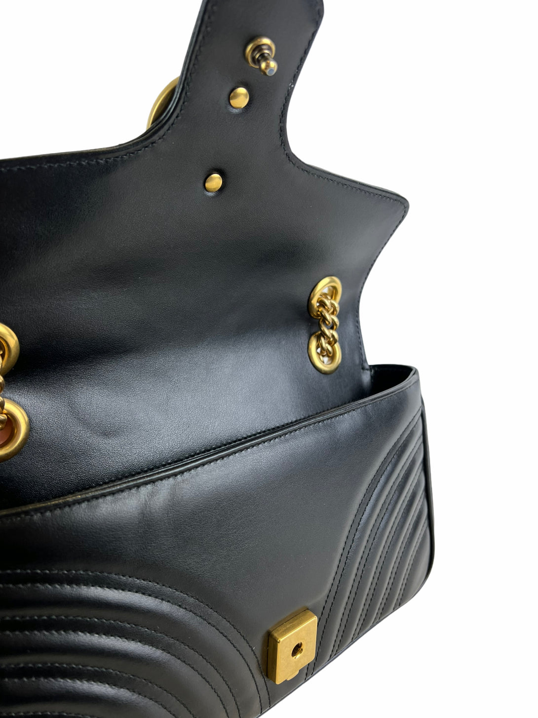Gucci Black Chevron Leather GG Marmont Crossbody