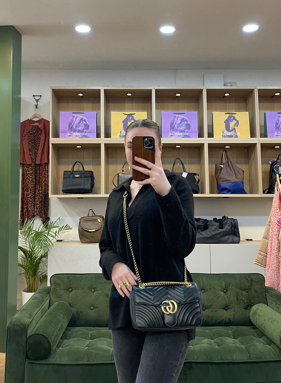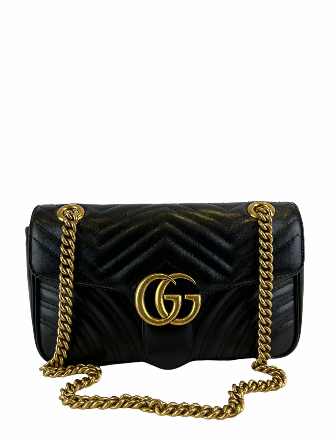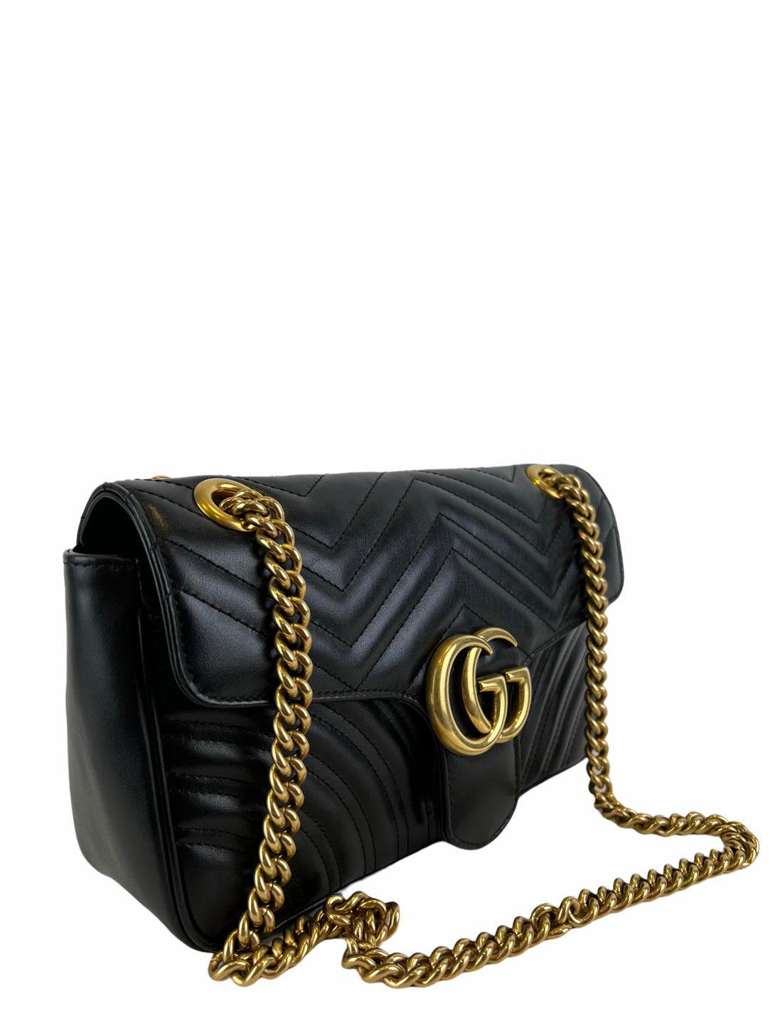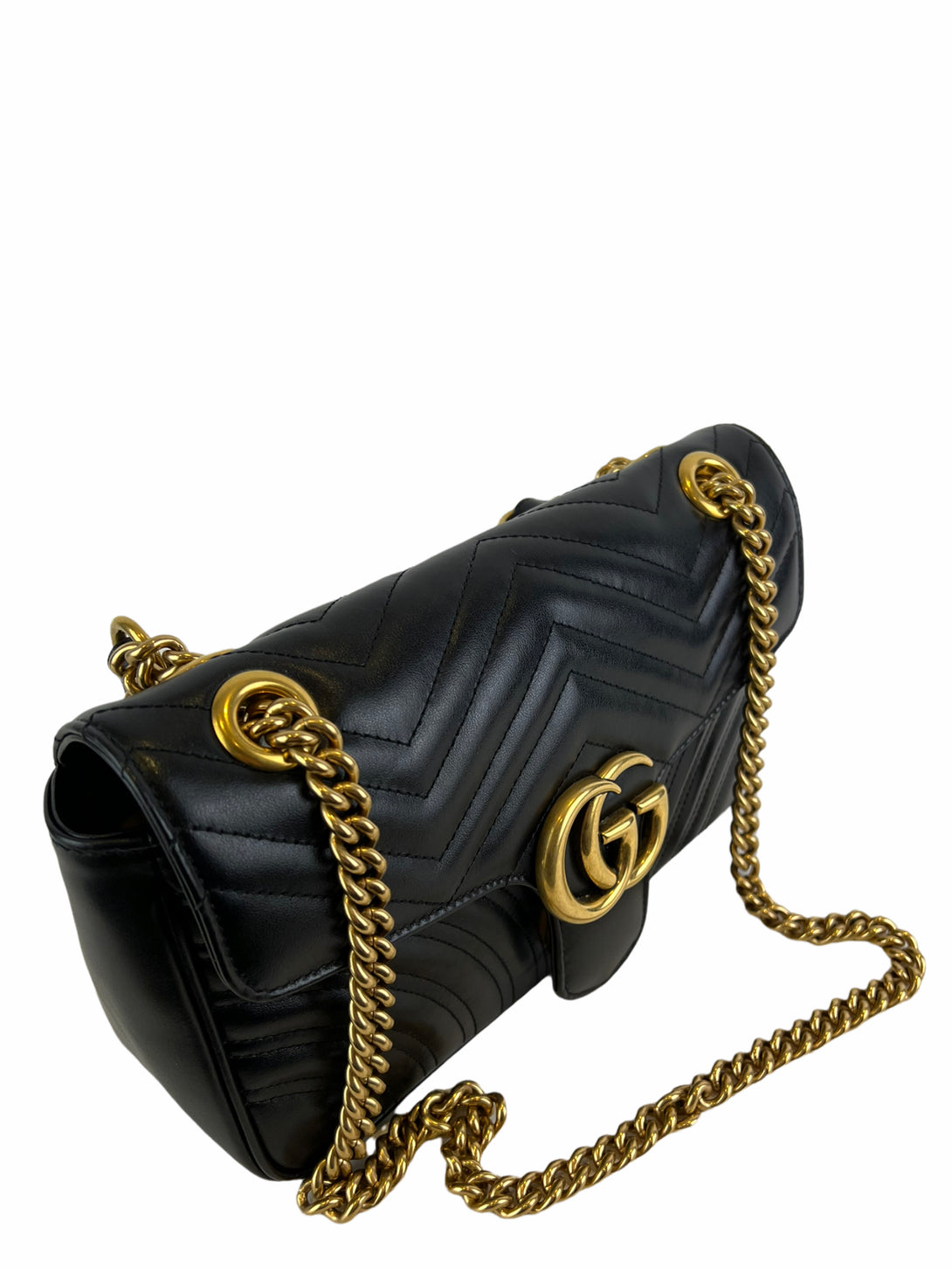 Gucci Black Chevron Leather GG Marmont Crossbody