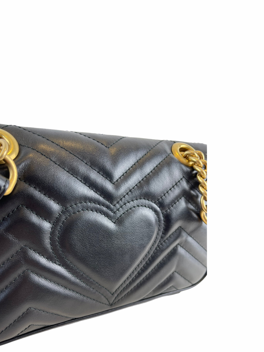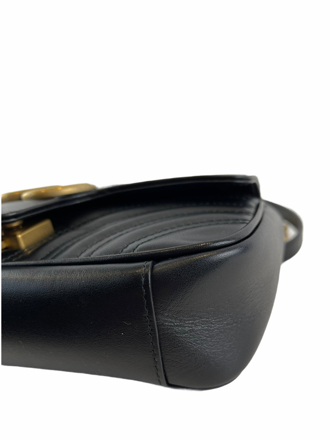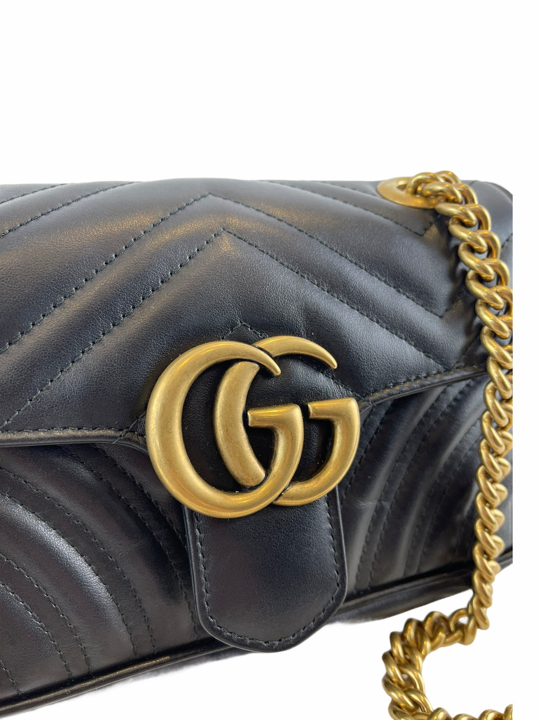 Gucci Black Chevron Leather Small Marmont Crossbody