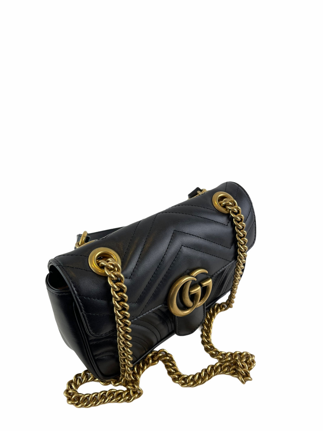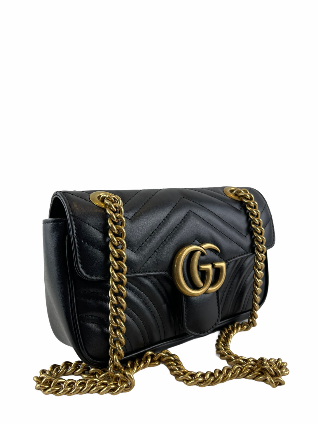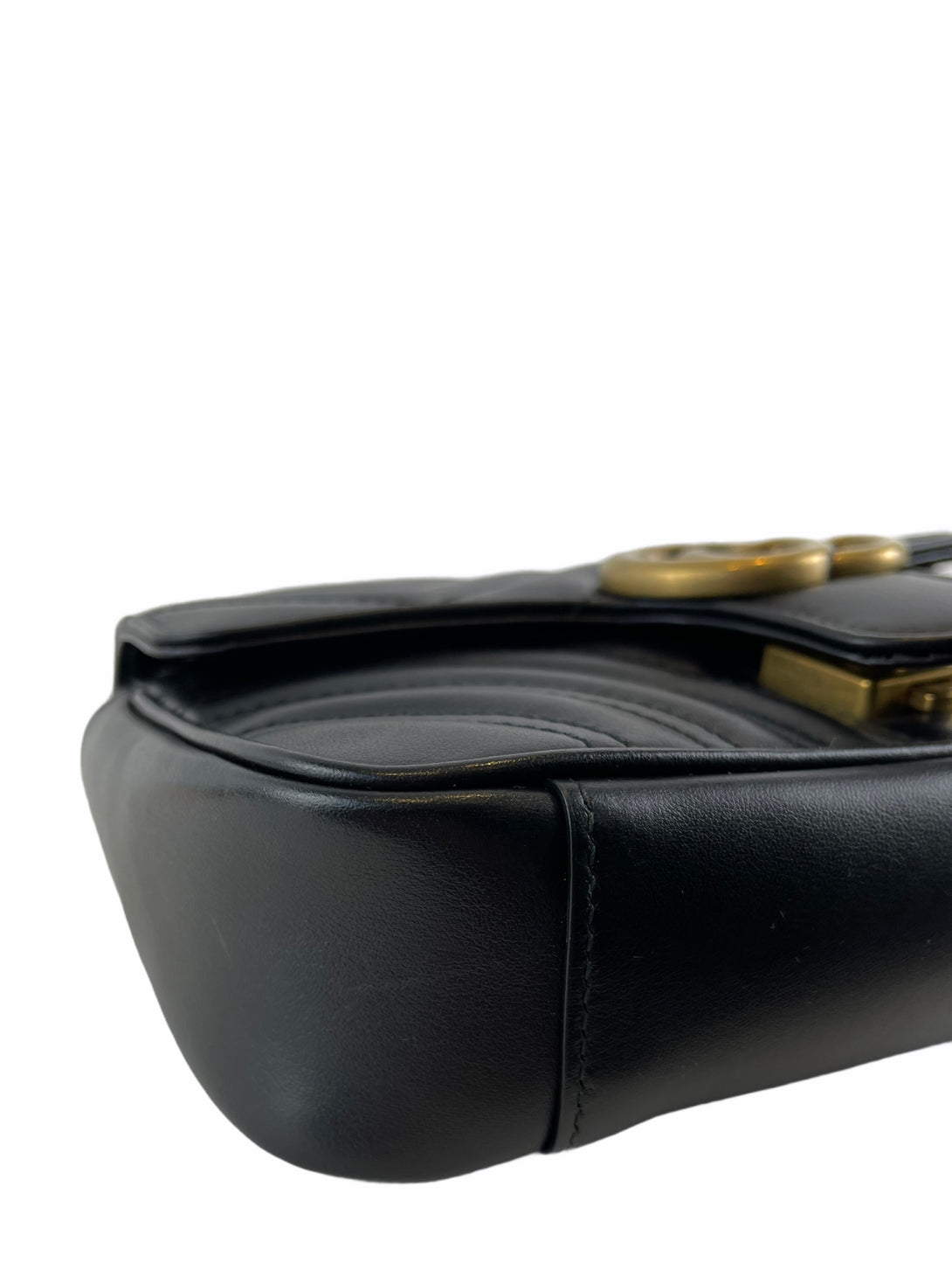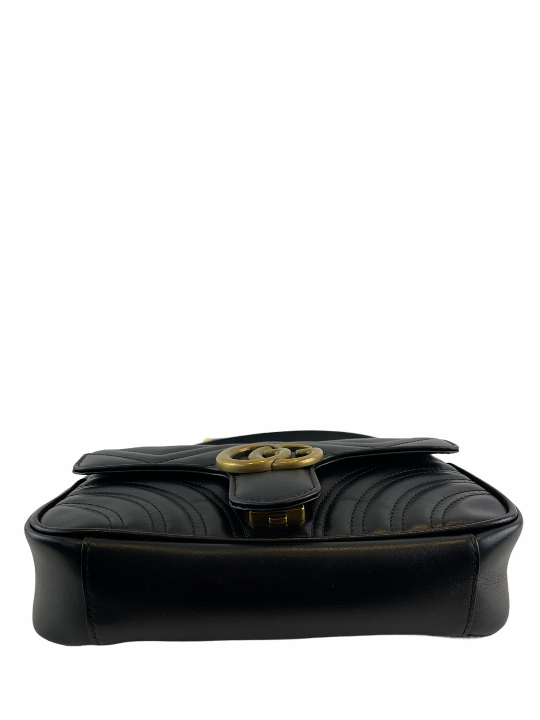 Gucci Black Chevron Leather Small Marmont Crossbody