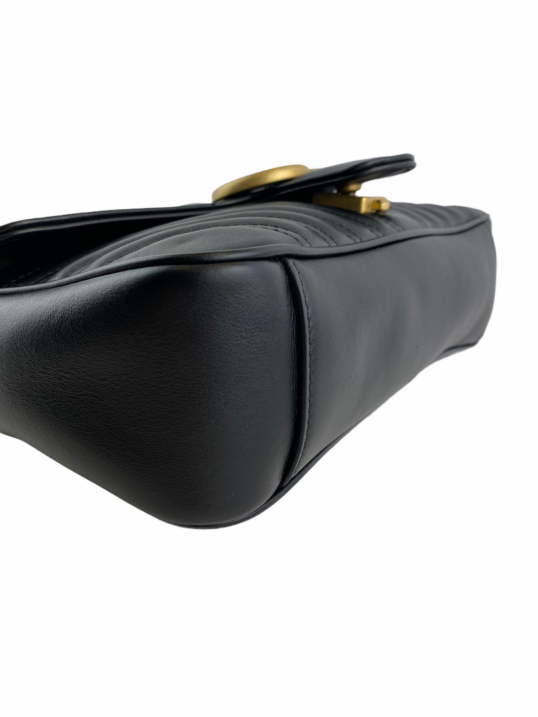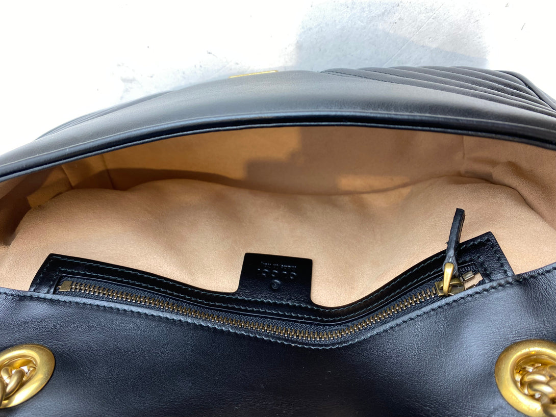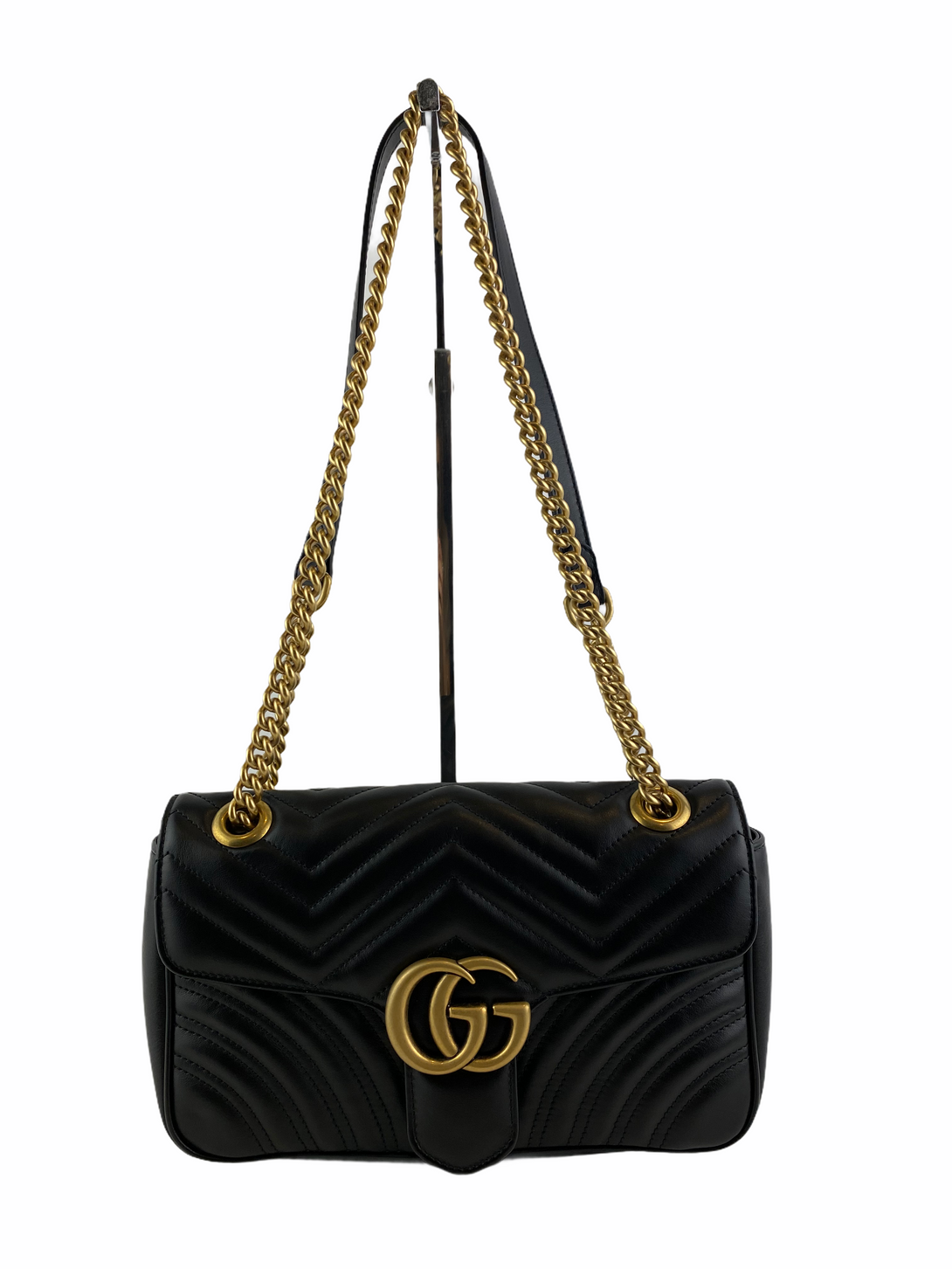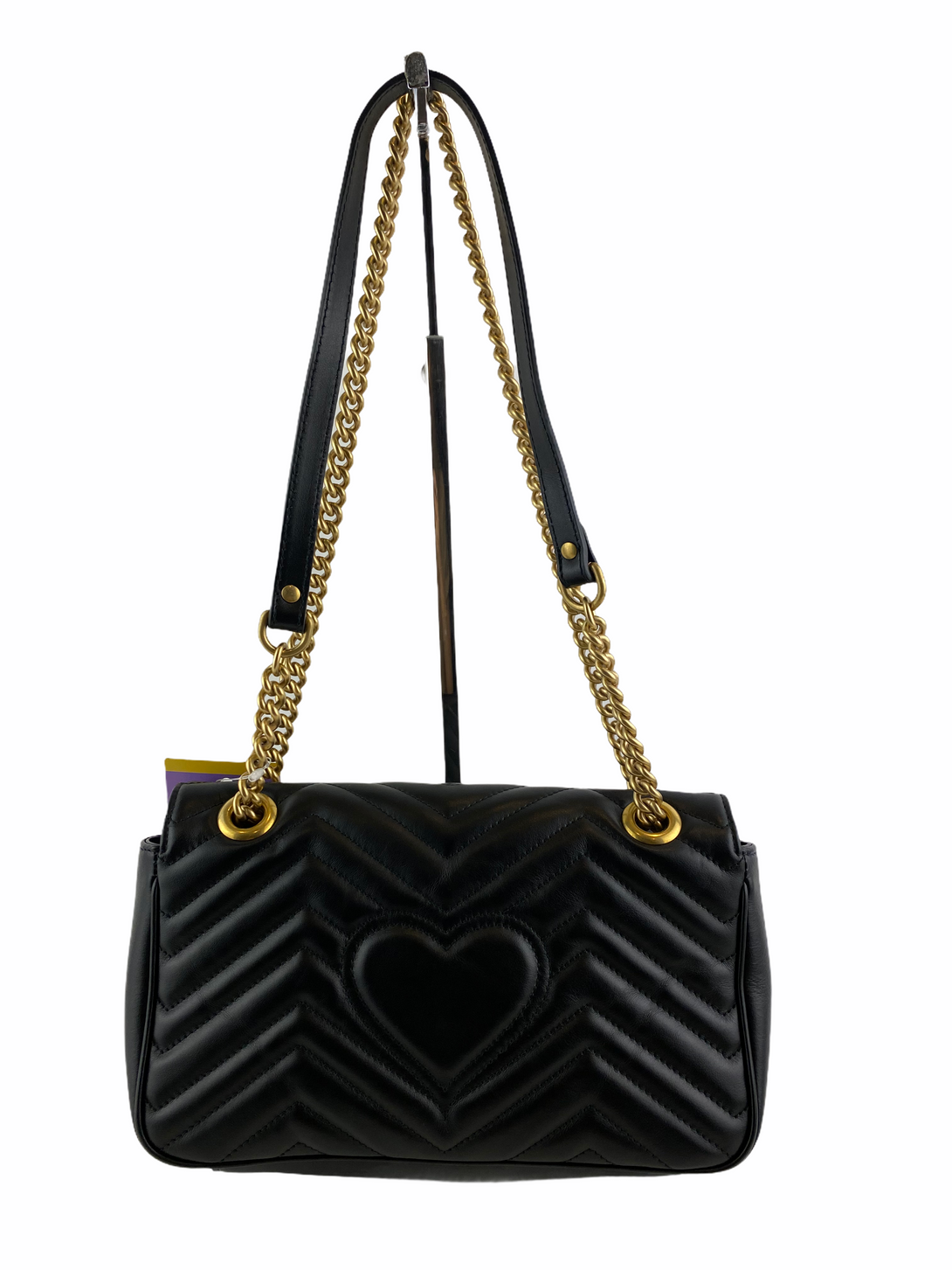Gucci Black Chevron Leather Small “Marmont” Crossbody