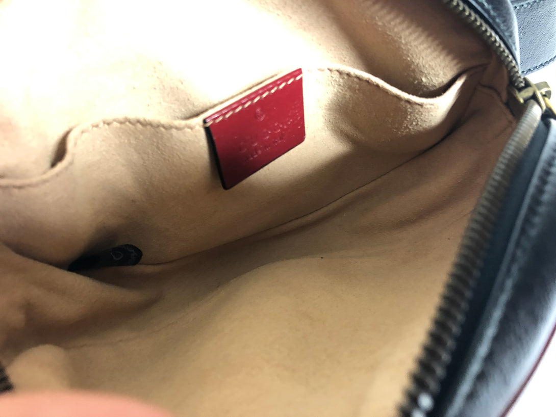 Good: Items show more prominent wear such as noticeable discoloration, stains and snags to fabric. May have worn corners and handles, tarnishing to hardware and creasing to leather. Pen or make up marks may be visible in the interior of the bag.