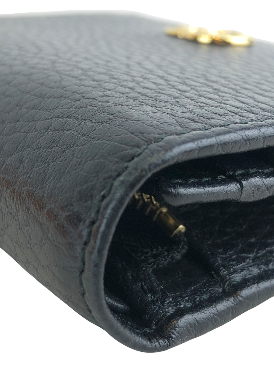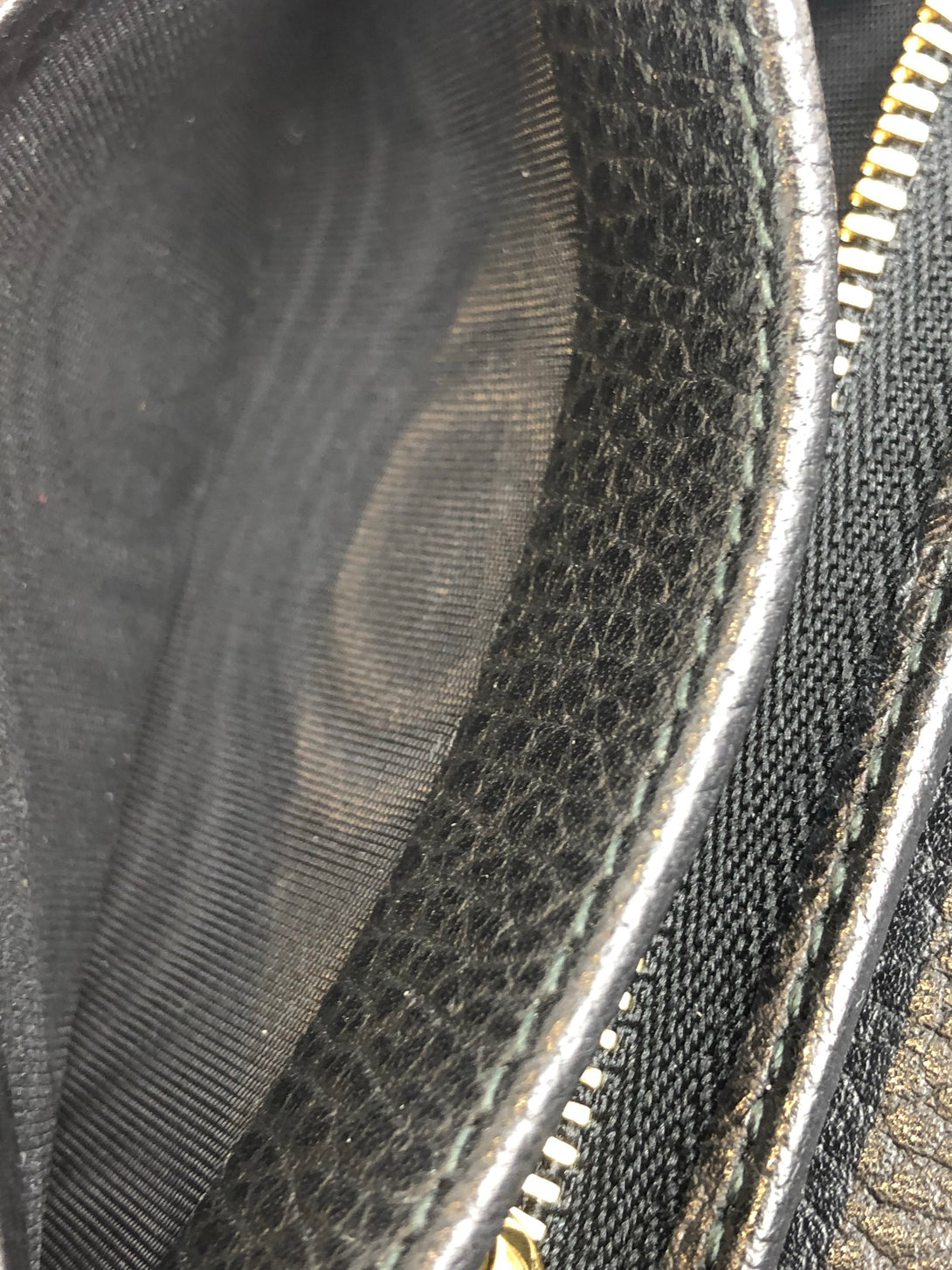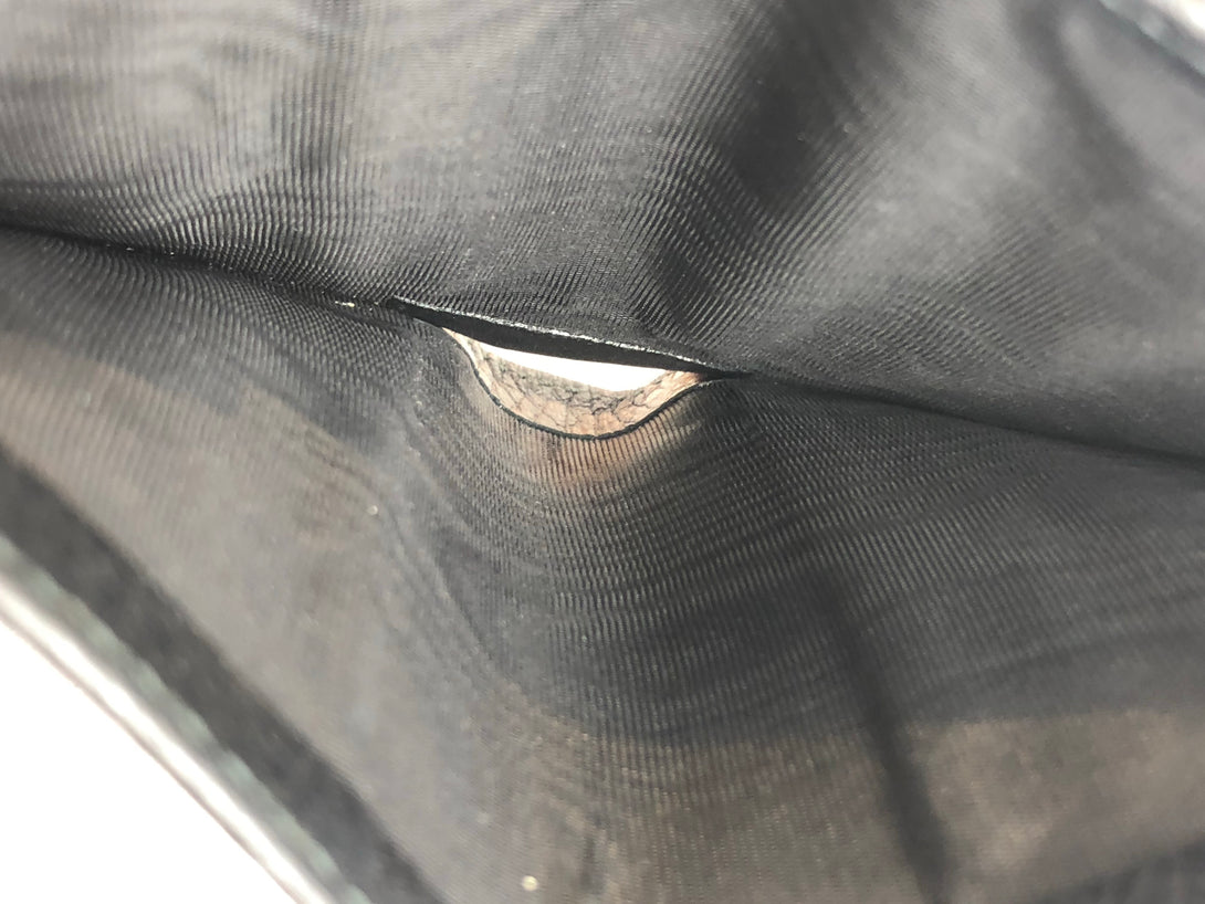 Good: Items show more prominent wear such as noticeable discoloration, stains and snags to fabric. May have worn corners and handles, tarnishing to hardware and creasing to leather. Pen or make up marks may be visible in the interior of the bag.