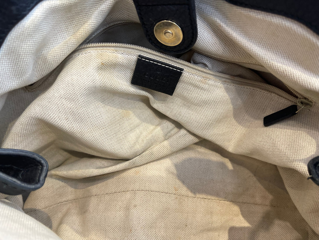 Good: Items show more prominent wear such as noticeable discoloration, stains and snags to fabric. May have worn corners and handles, tarnishing to hardware and creasing to leather. Pen or make up marks may be visible in the interior of the bag.