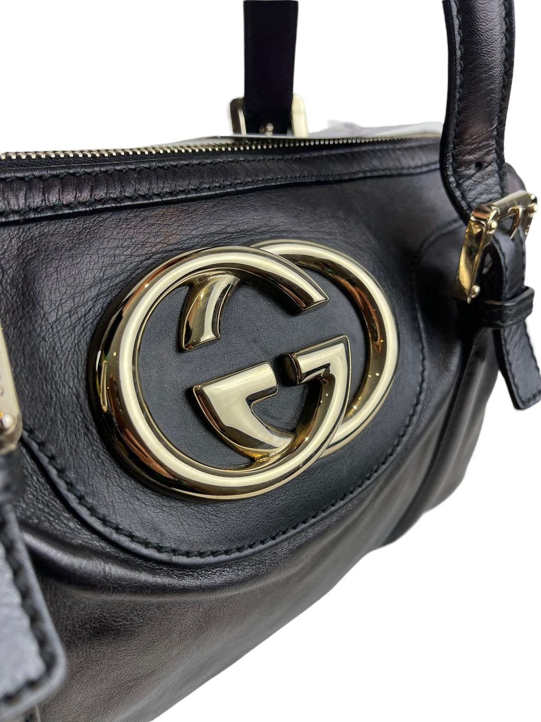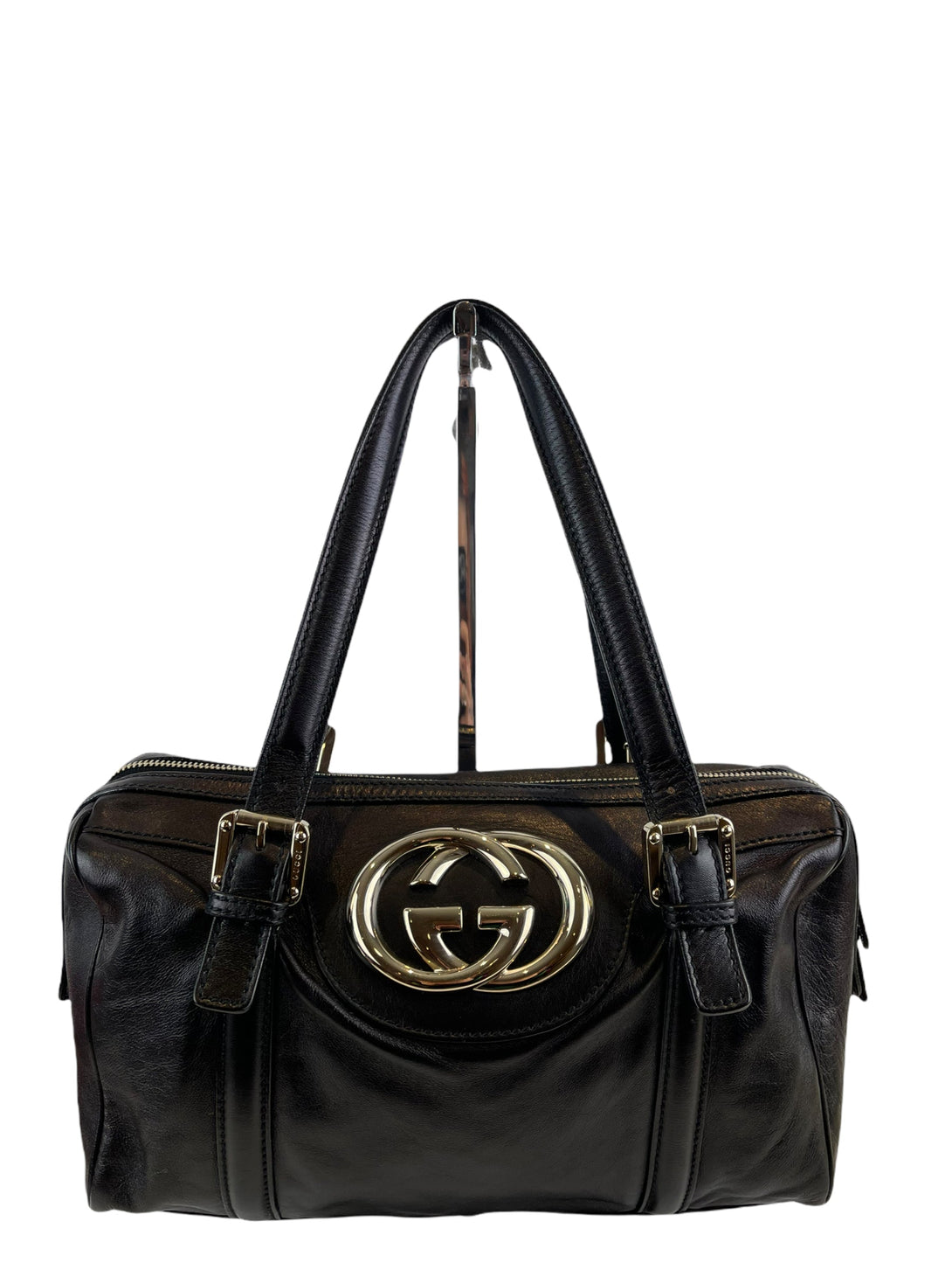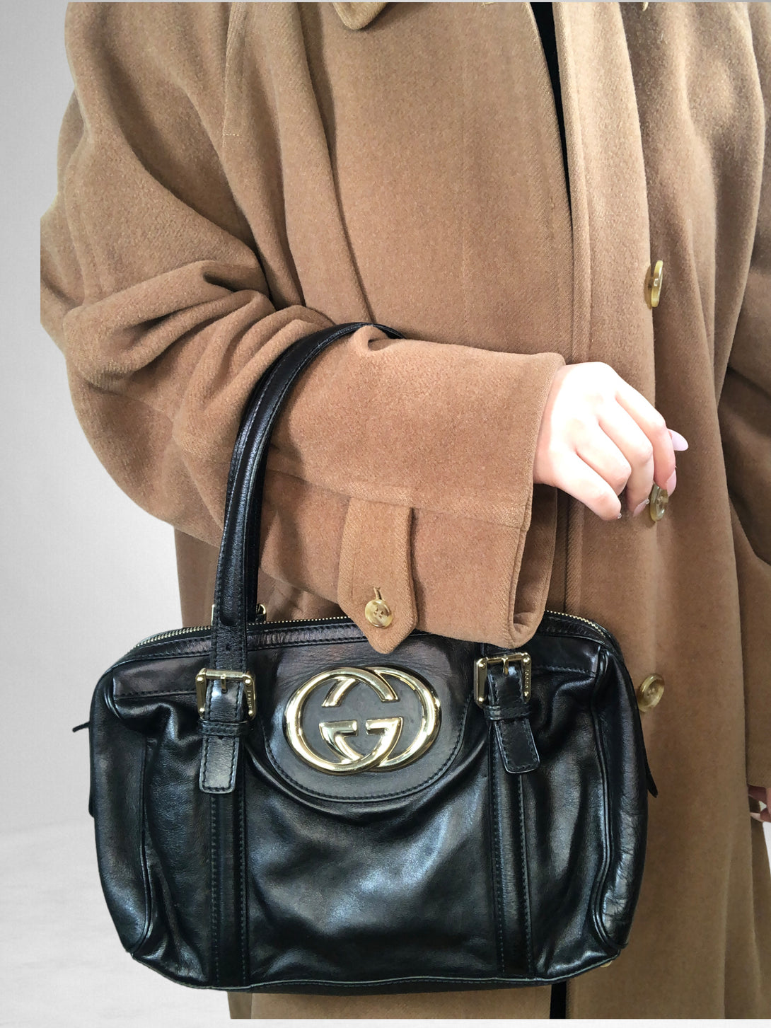 Vintage Gucci Black Leather Handbag w/ Adjustable Straps