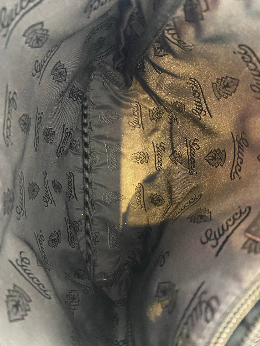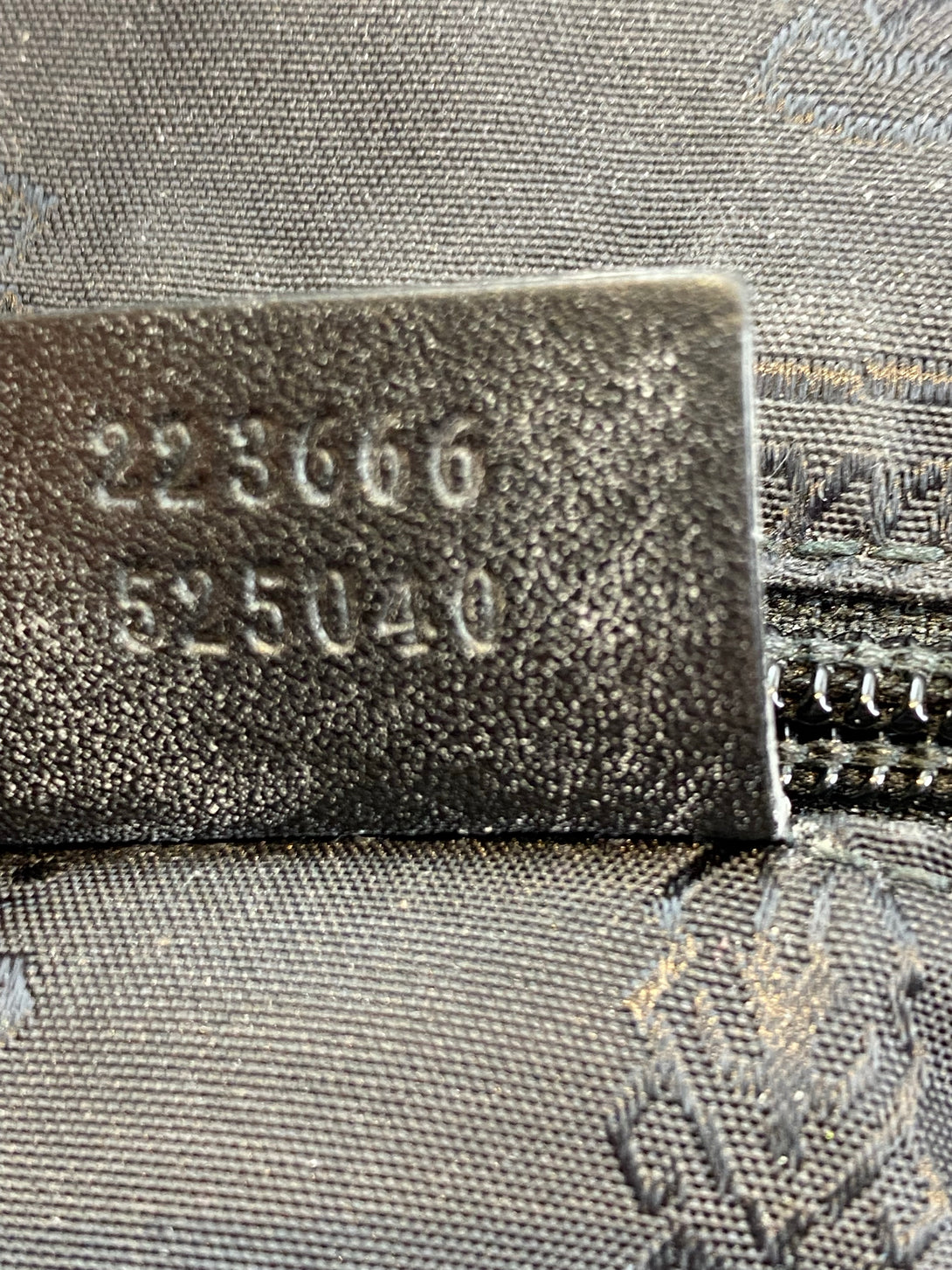 Good: Items show more prominent wear such as noticeable discoloration, stains and snags to fabric. May have worn corners and handles, tarnishing to hardware and creasing to leather. Pen or make up marks may be visible in the interior of the bag.