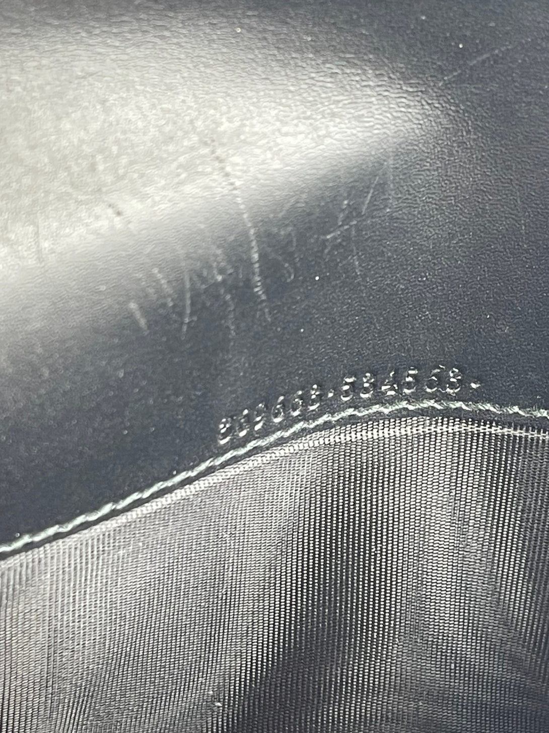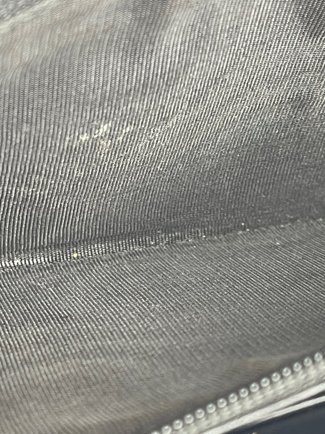 Good: Items show more prominent wear such as noticeable discoloration, stains and snags to fabric. May have worn corners and handles, tarnishing to hardware and creasing to leather. Pen or make up marks may be visible in the interior of the bag.