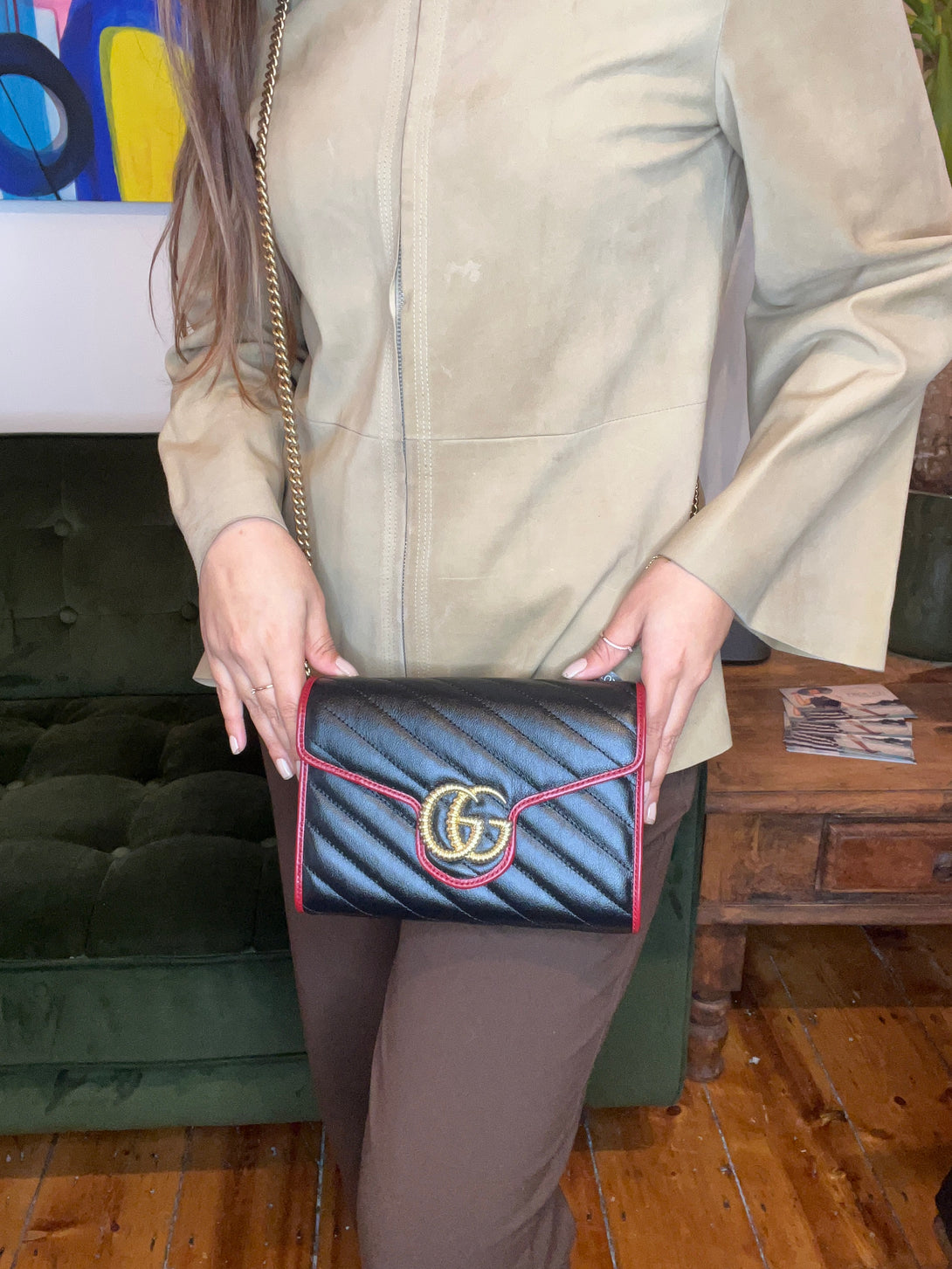 Gucci Black Matelasse Leather Mini Marmont Crossbody