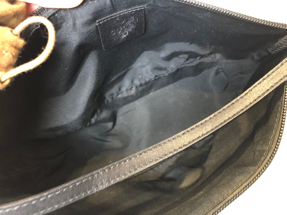 Good: Items show more prominent wear such as noticeable discoloration, stains and snags to fabric. May have worn corners and handles, tarnishing to hardware and creasing to leather. Pen or make up marks may be visible in the interior of the bag.