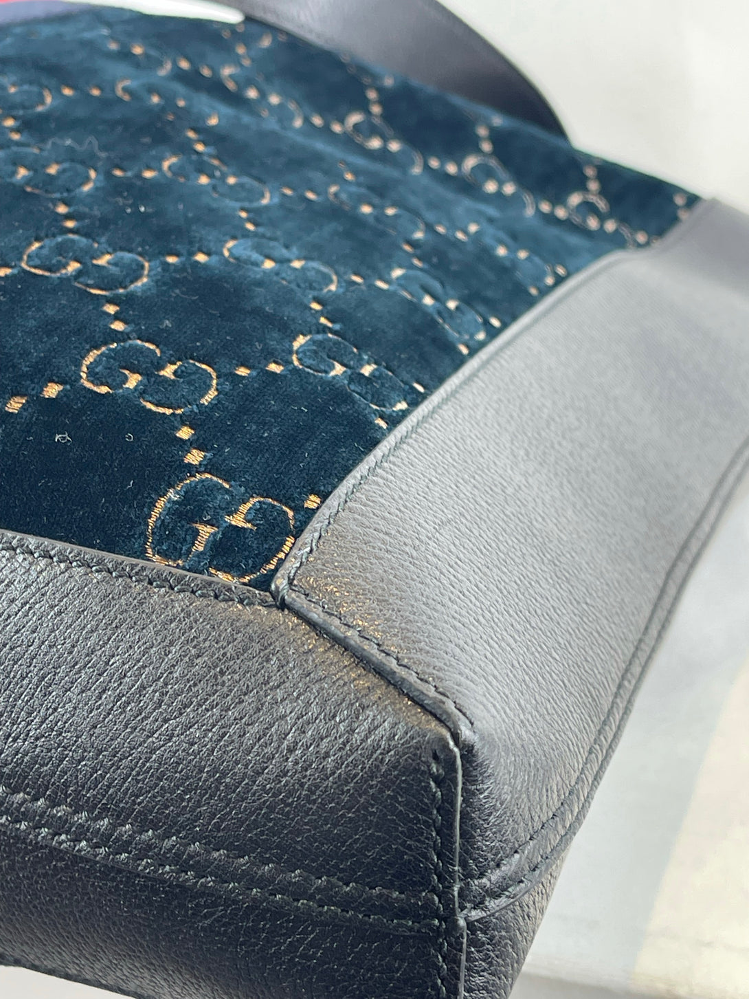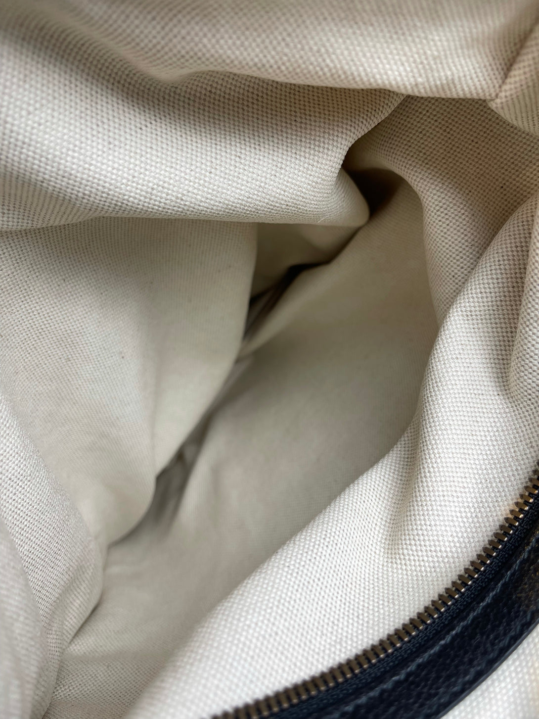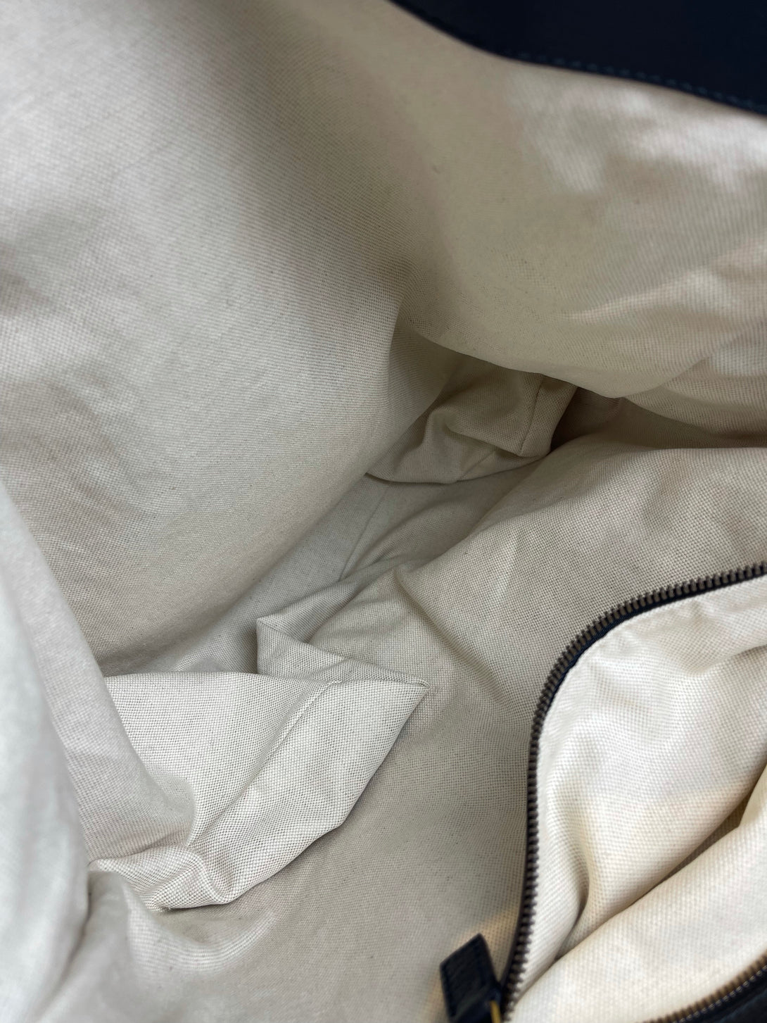 Good: Items show more prominent wear such as noticeable discoloration, stains and snags to fabric. May have worn corners and handles, tarnishing to hardware and creasing to leather. Pen or make up marks may be visible in the interior of the bag.