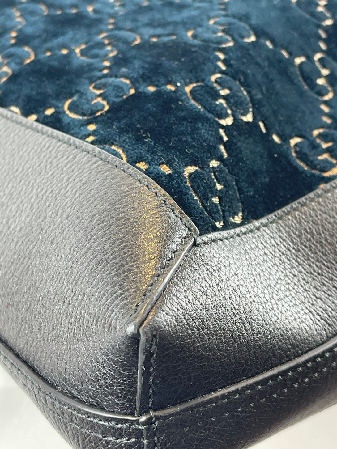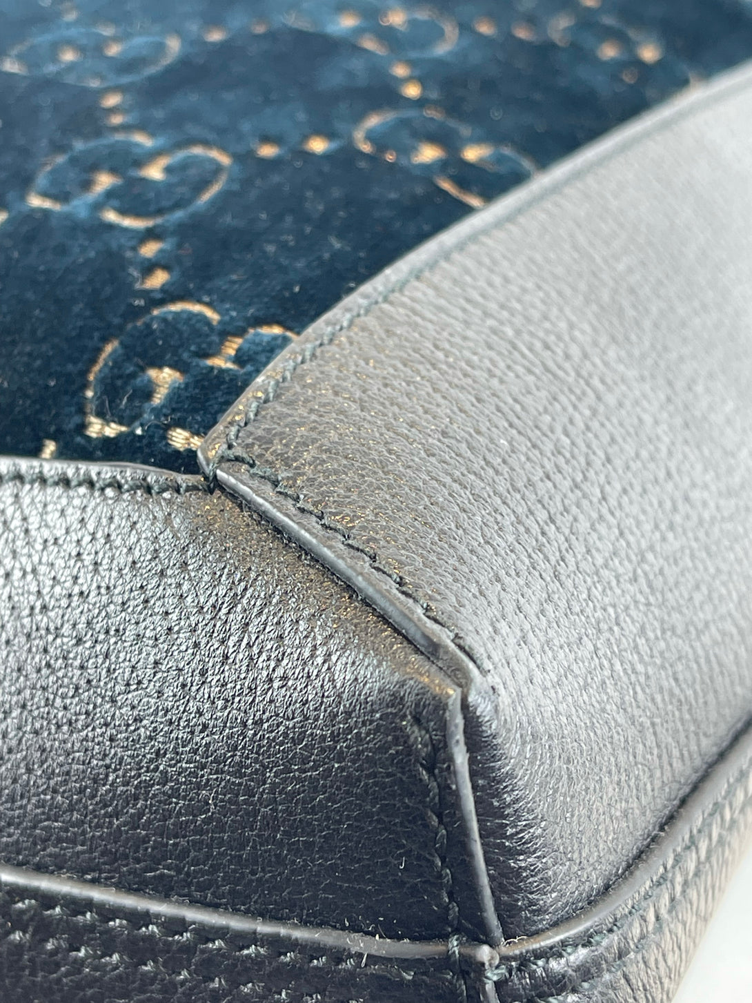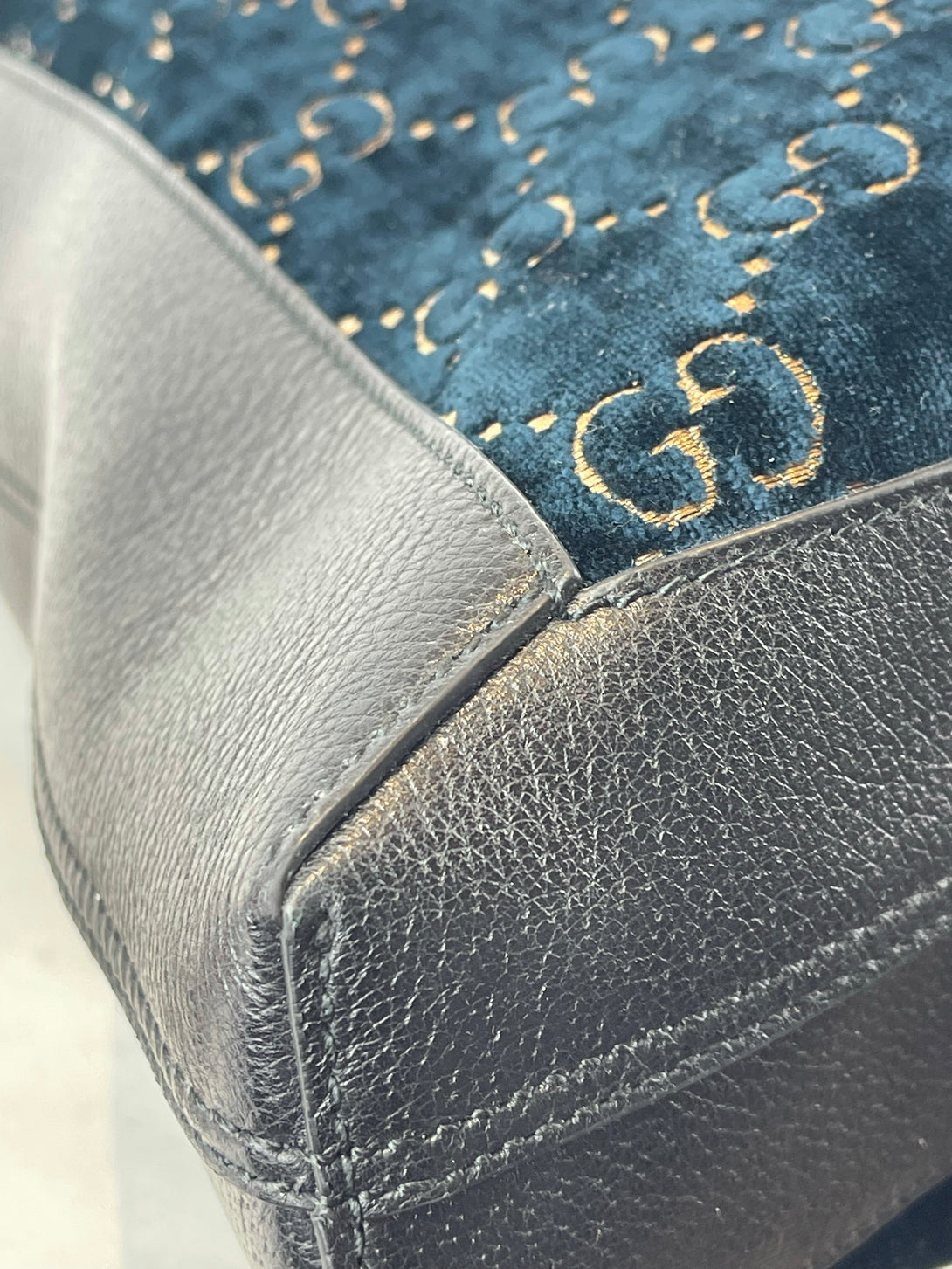 Good: Items show more prominent wear such as noticeable discoloration, stains and snags to fabric. May have worn corners and handles, tarnishing to hardware and creasing to leather. Pen or make up marks may be visible in the interior of the bag.
