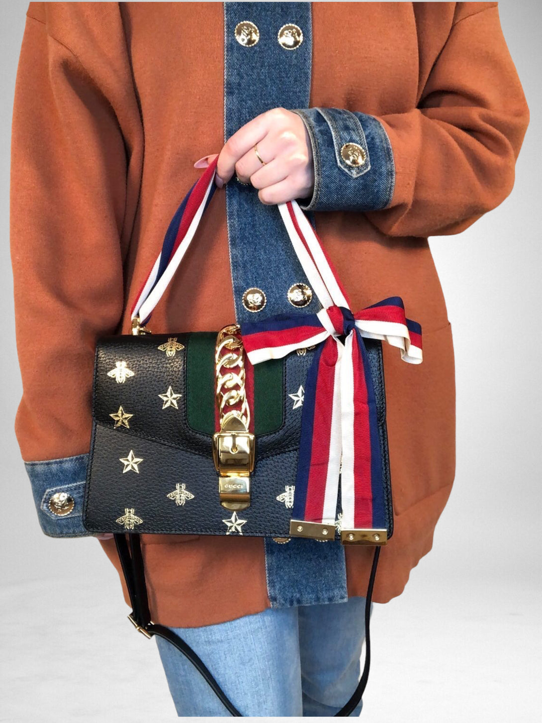 Gucci Black Printed Leather “Sylvie” Crossbody