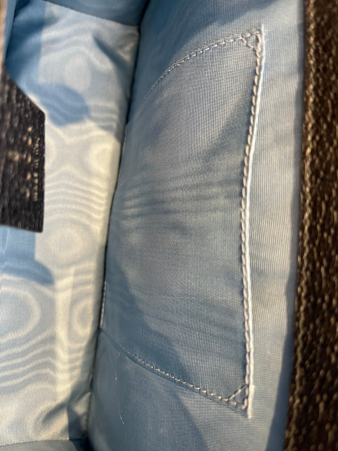 Good: Items show more prominent wear such as noticeable discoloration, stains and snags to fabric. May have worn corners and handles, tarnishing to hardware and creasing to leather. Pen or make up marks may be visible in the interior of the bag.