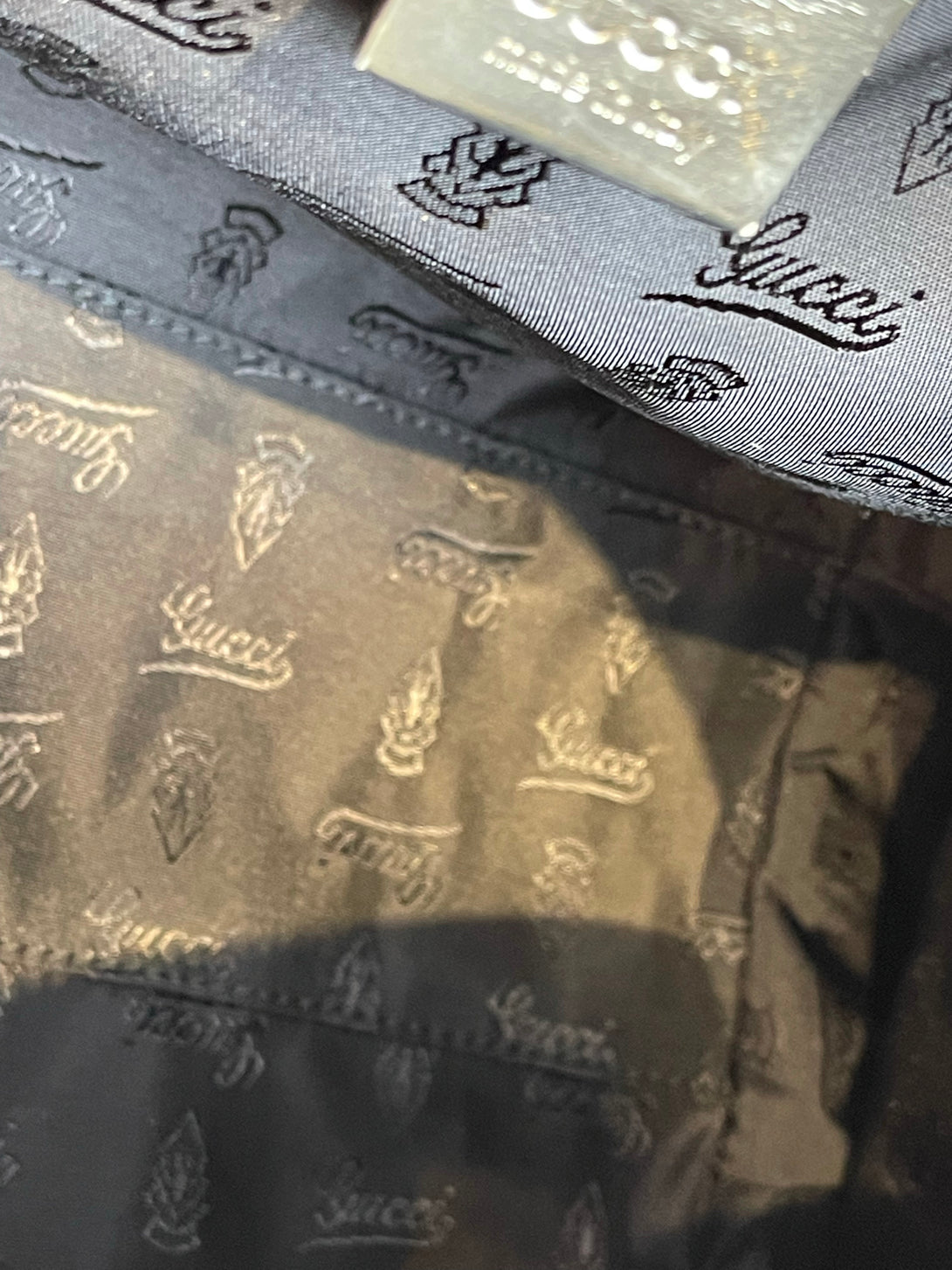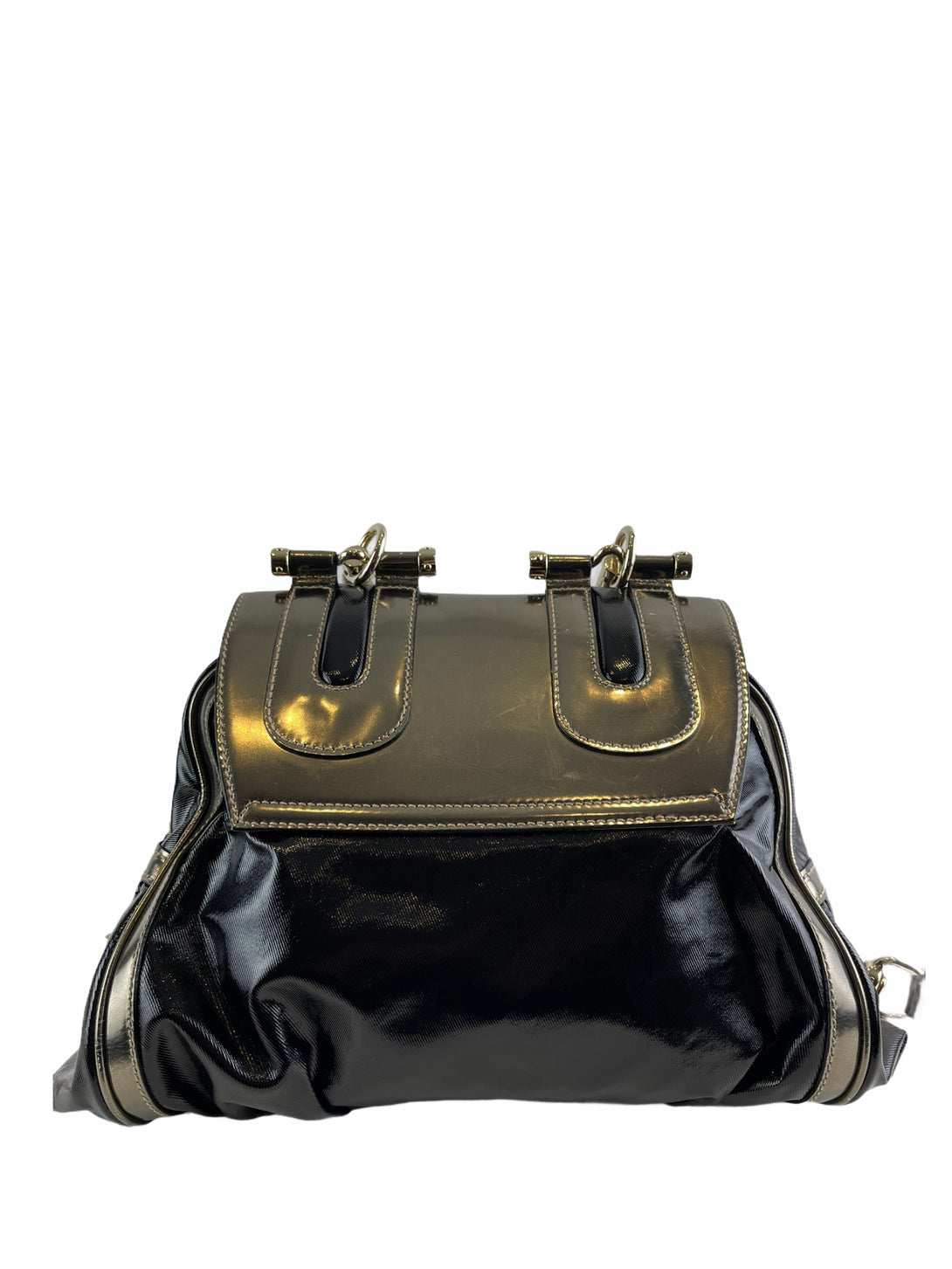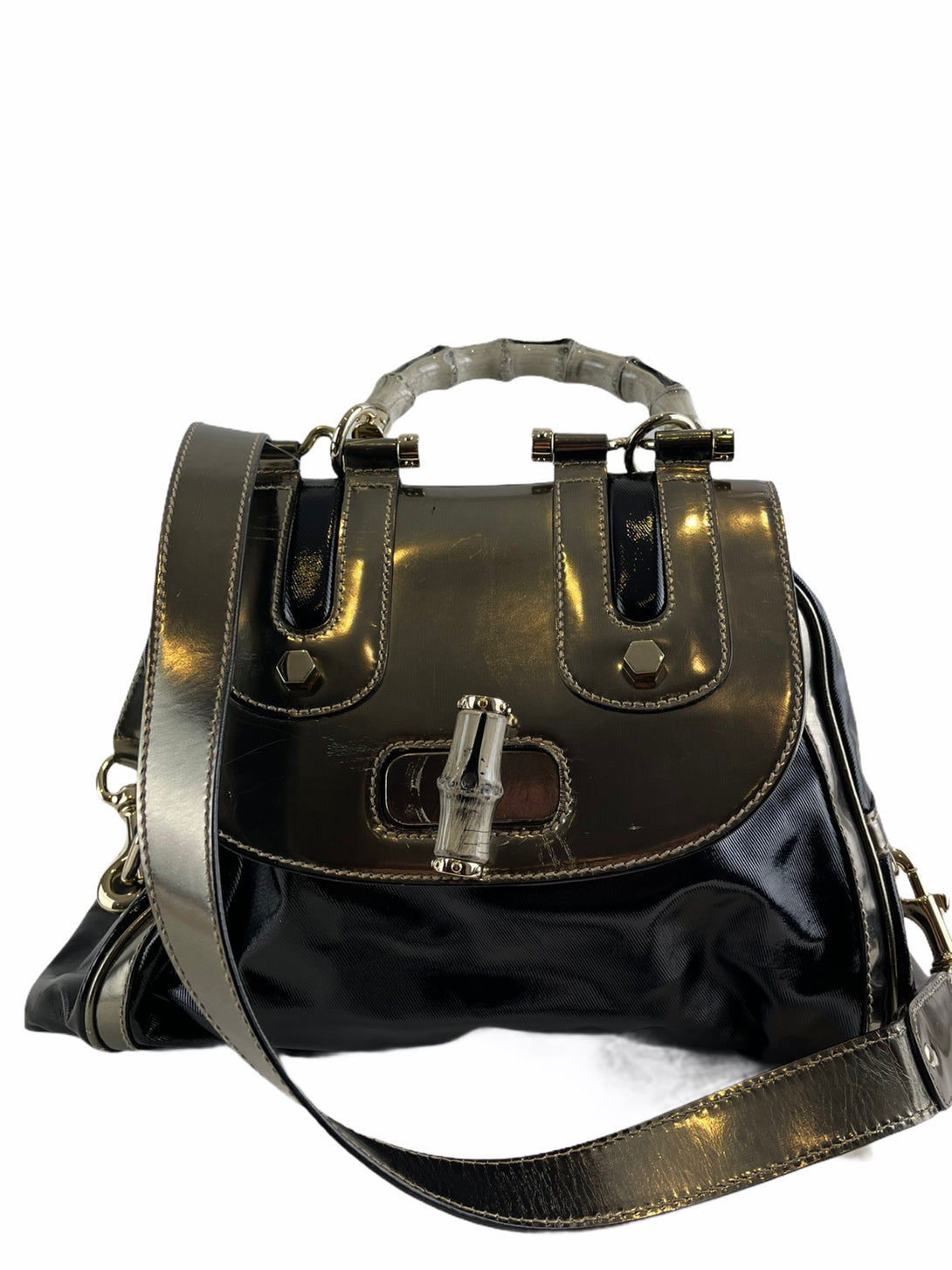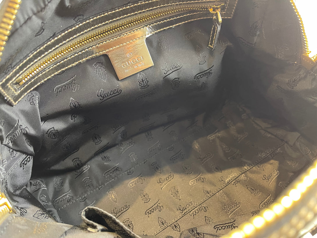 Gucci Bronze Leather and Coated Canvas Shoulder Bag
