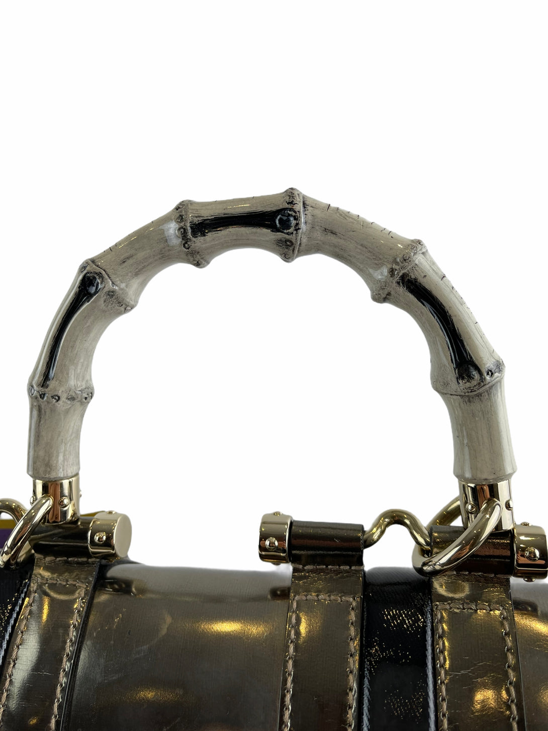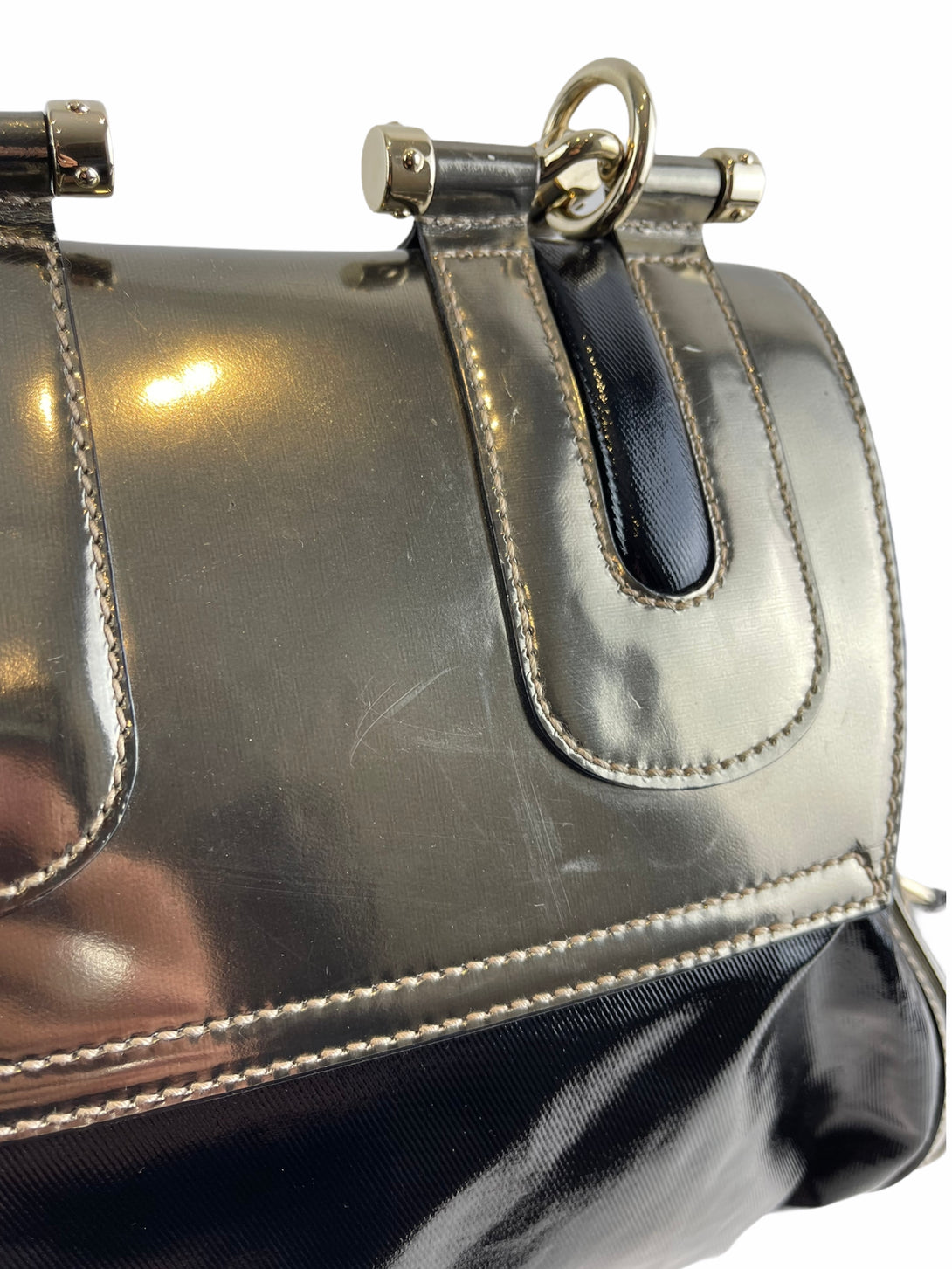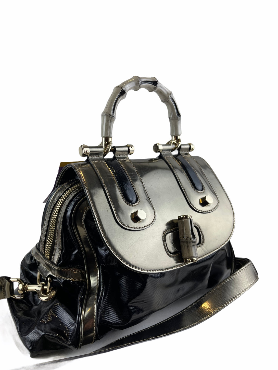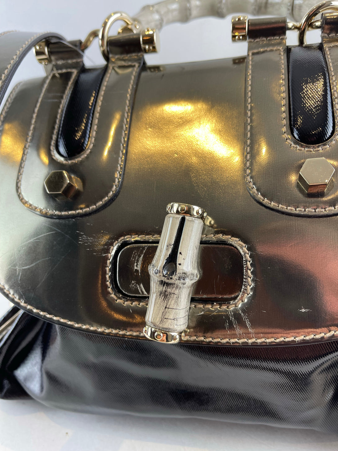 Gucci Bronze Leather and Coated Canvas Shoulder Bag