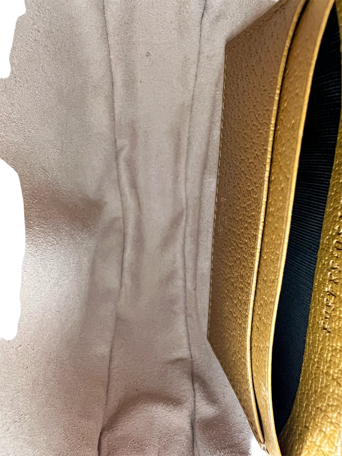 Good: Items show more prominent wear such as noticeable discoloration, stains and snags to fabric. May have worn corners and handles, tarnishing to hardware and creasing to leather. Pen or make up marks may be visible in the interior of the bag.
