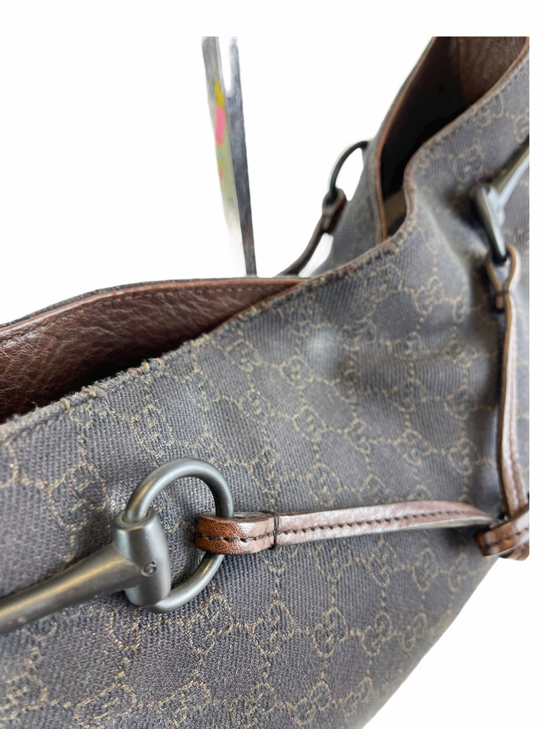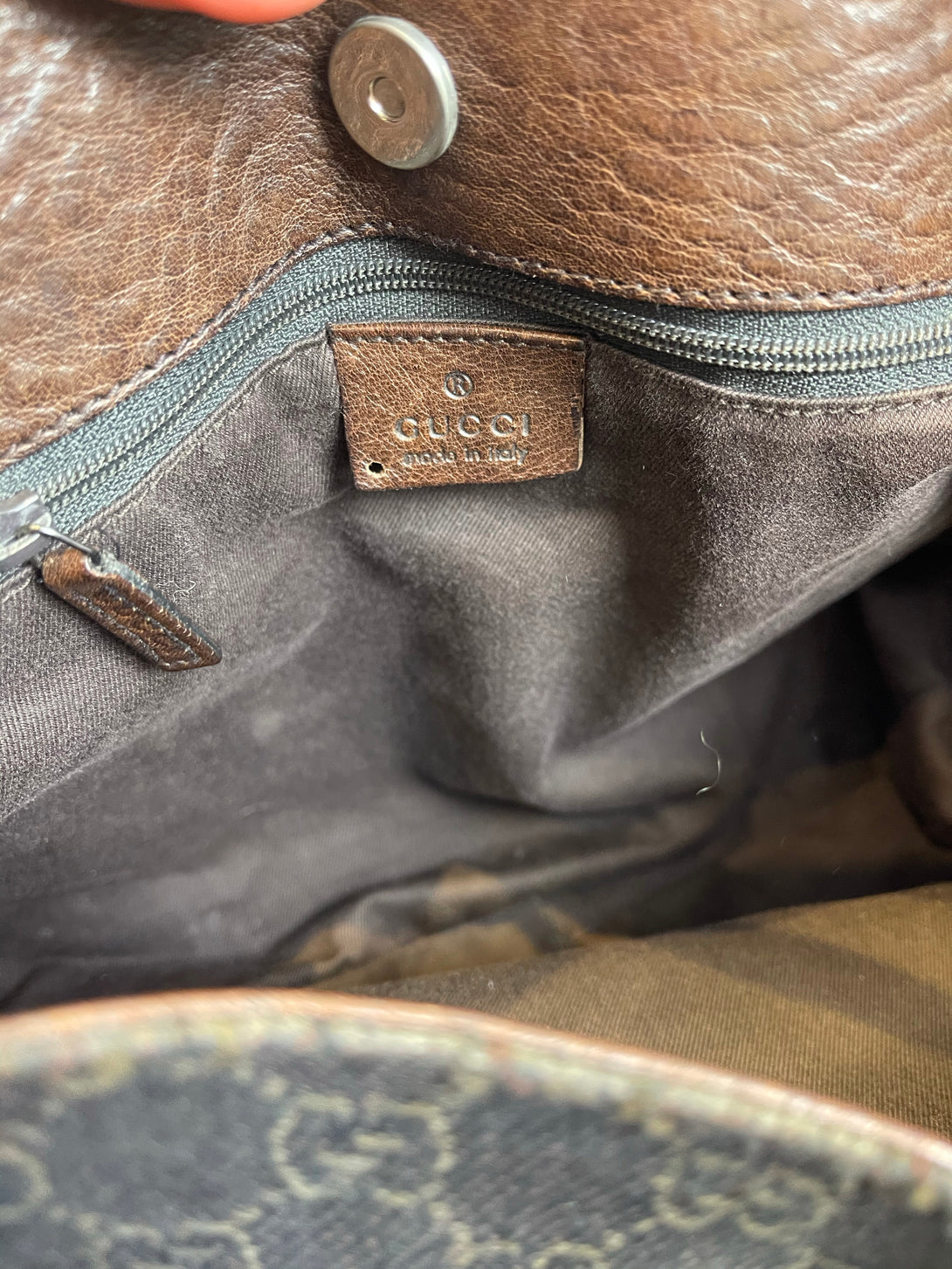 Gucci brown leather & monogram shoulder bag - As seen on Instagram 18/04/21