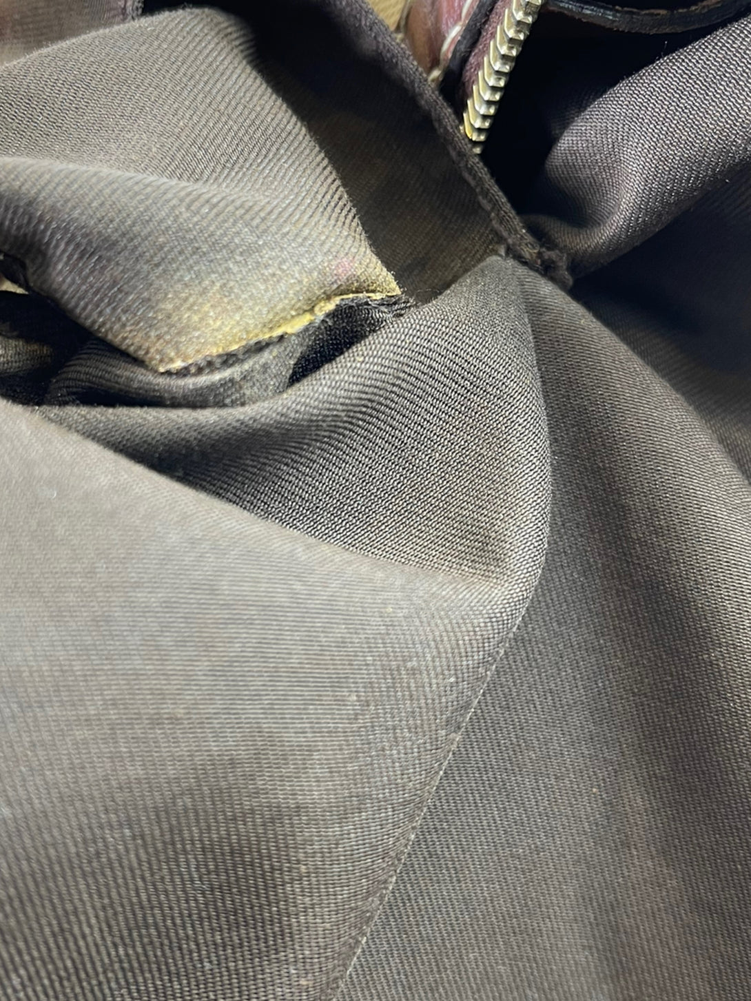 Good: Items show more prominent wear such as noticeable discoloration, stains and snags to fabric. May have worn corners and handles, tarnishing to hardware and creasing to leather. Pen or make up marks may be visible in the interior of the bag.