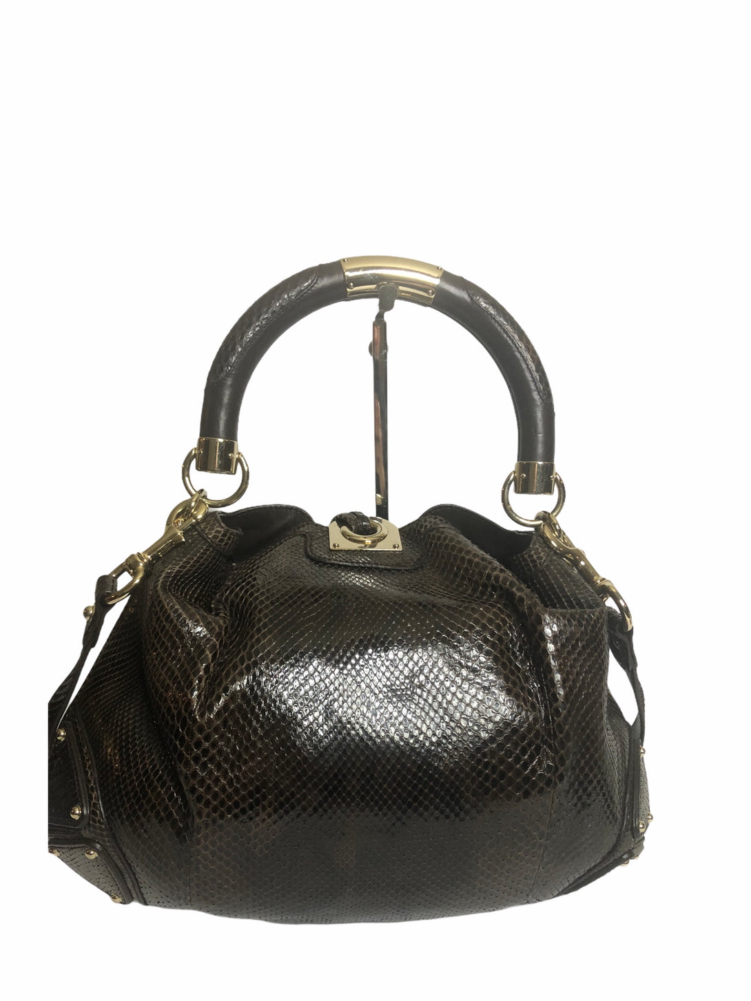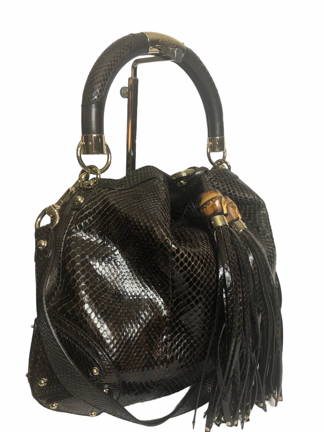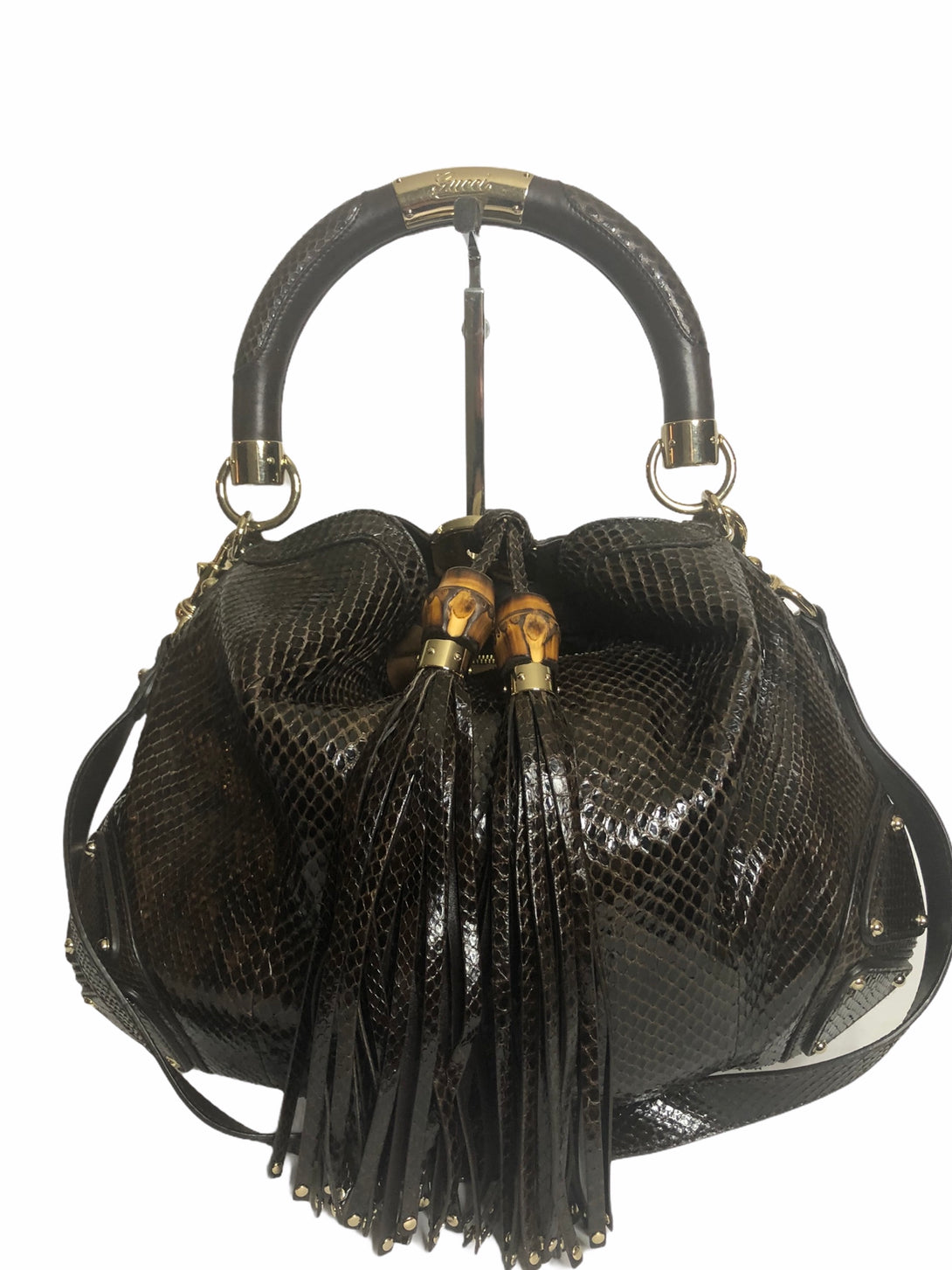 Gucci Brown Snake Effect Leather "Indy" Hobo with Bamboo Tassel- As Seen on Instagram 25/11/2020