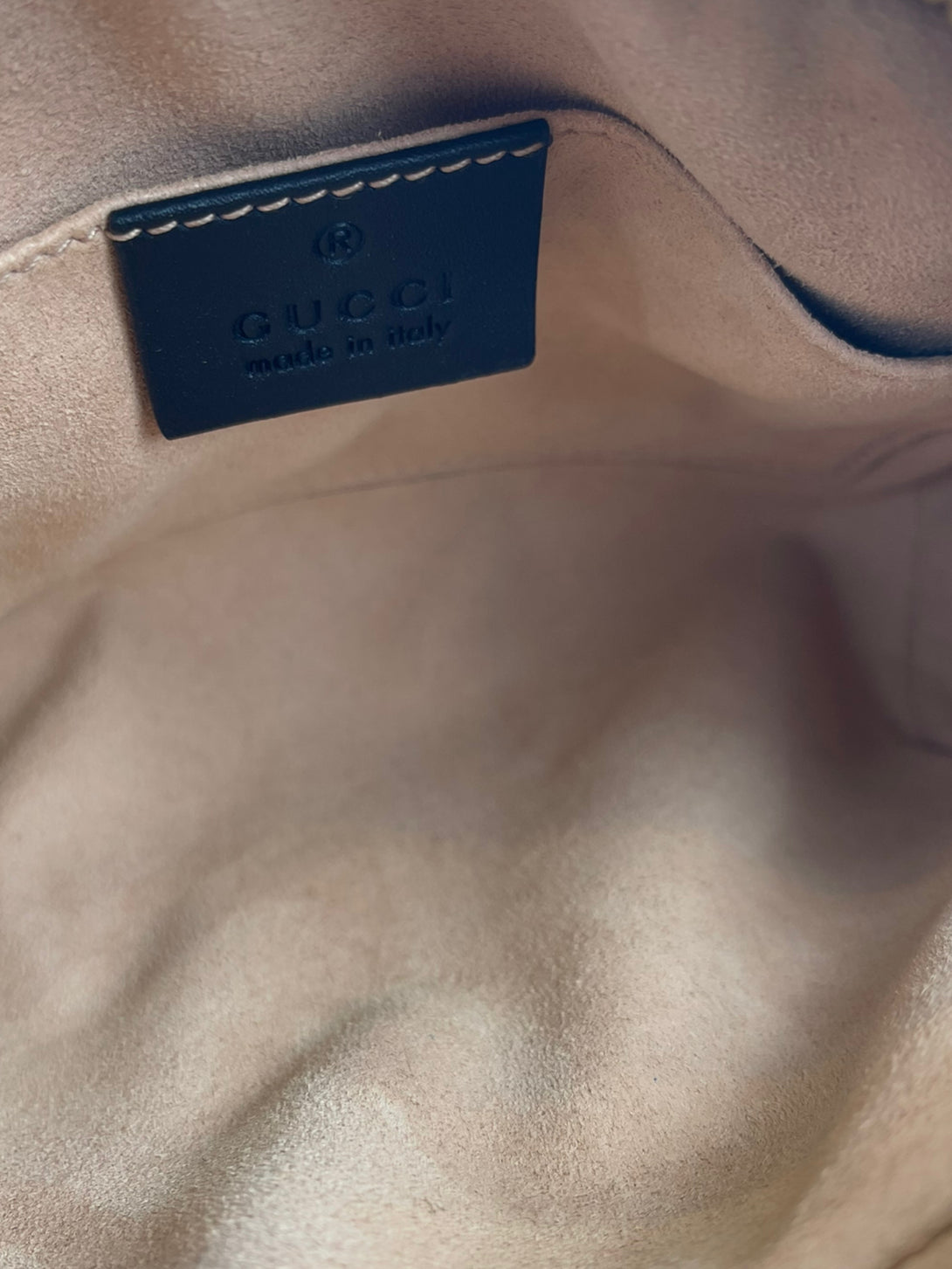 Good: Items show more prominent wear such as noticeable discoloration, stains and snags to fabric. May have worn corners and handles, tarnishing to hardware and creasing to leather. Pen or make up marks may be visible in the interior of the bag.