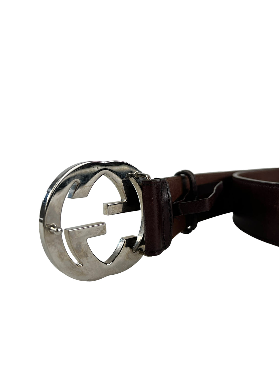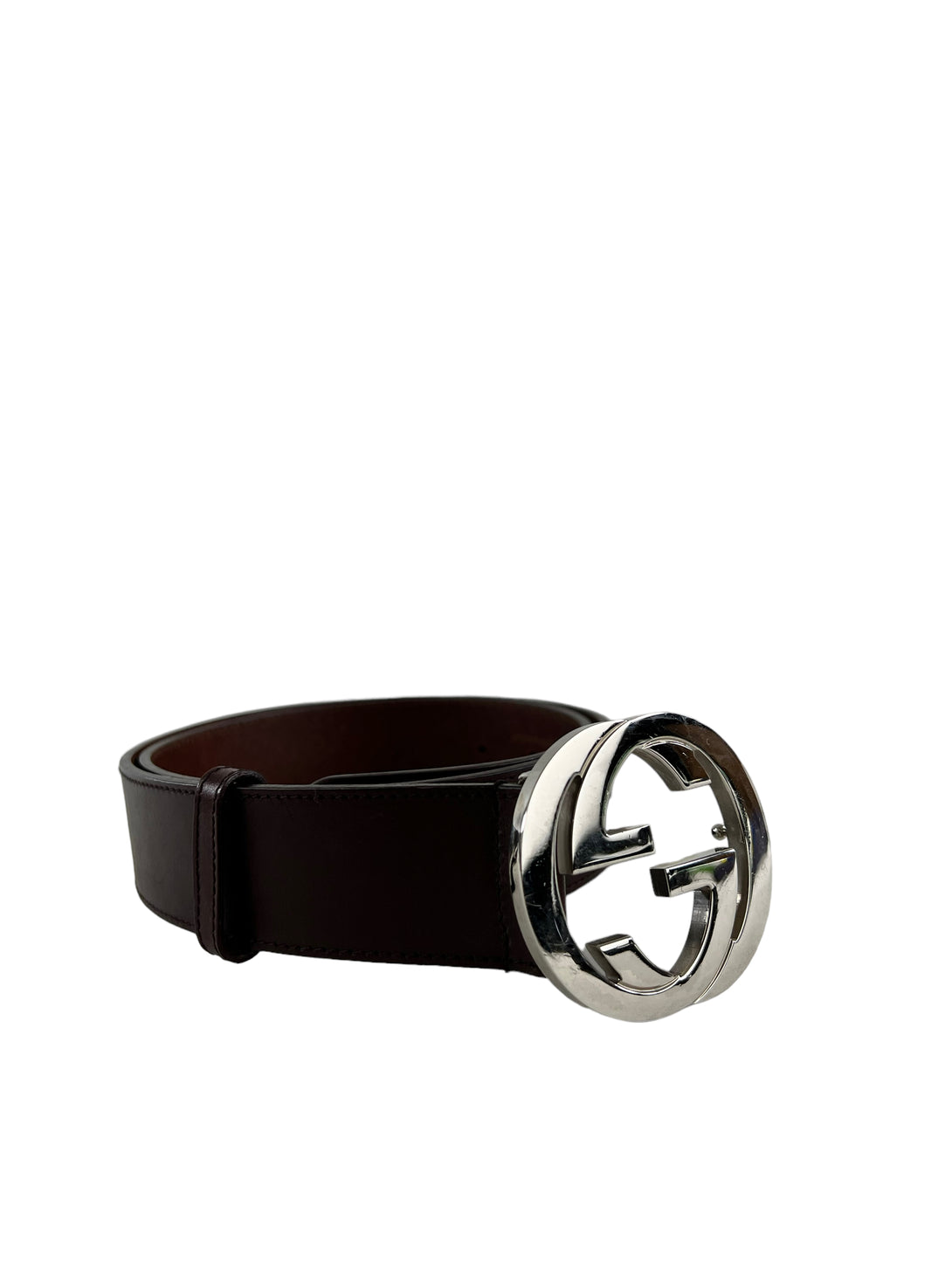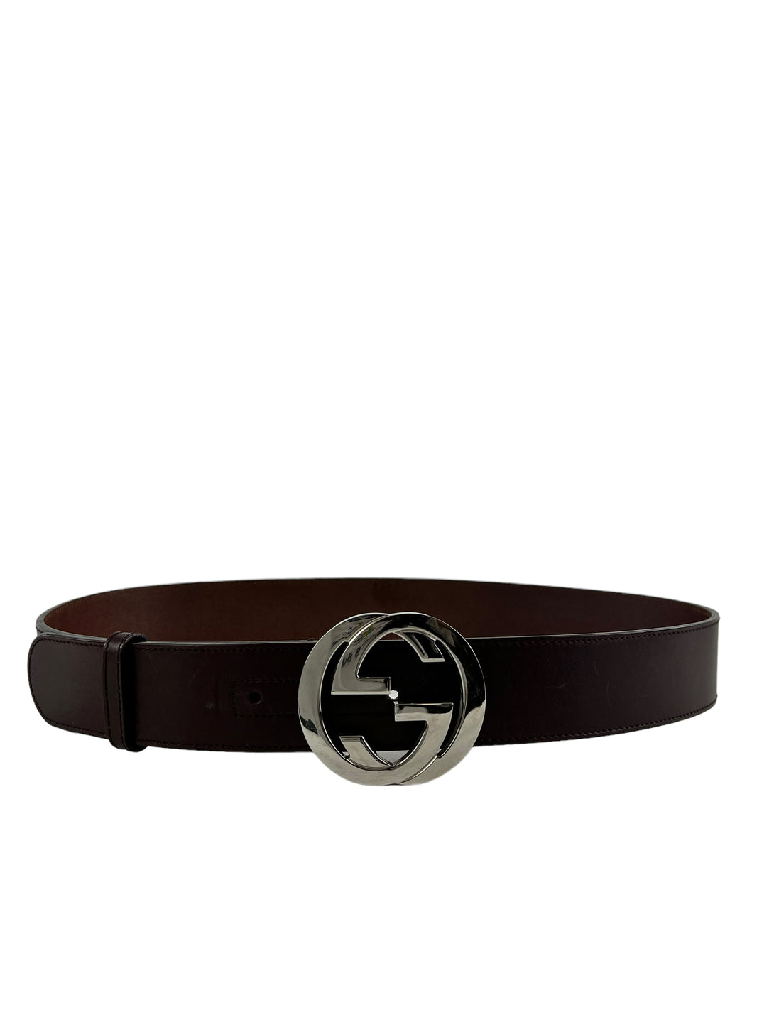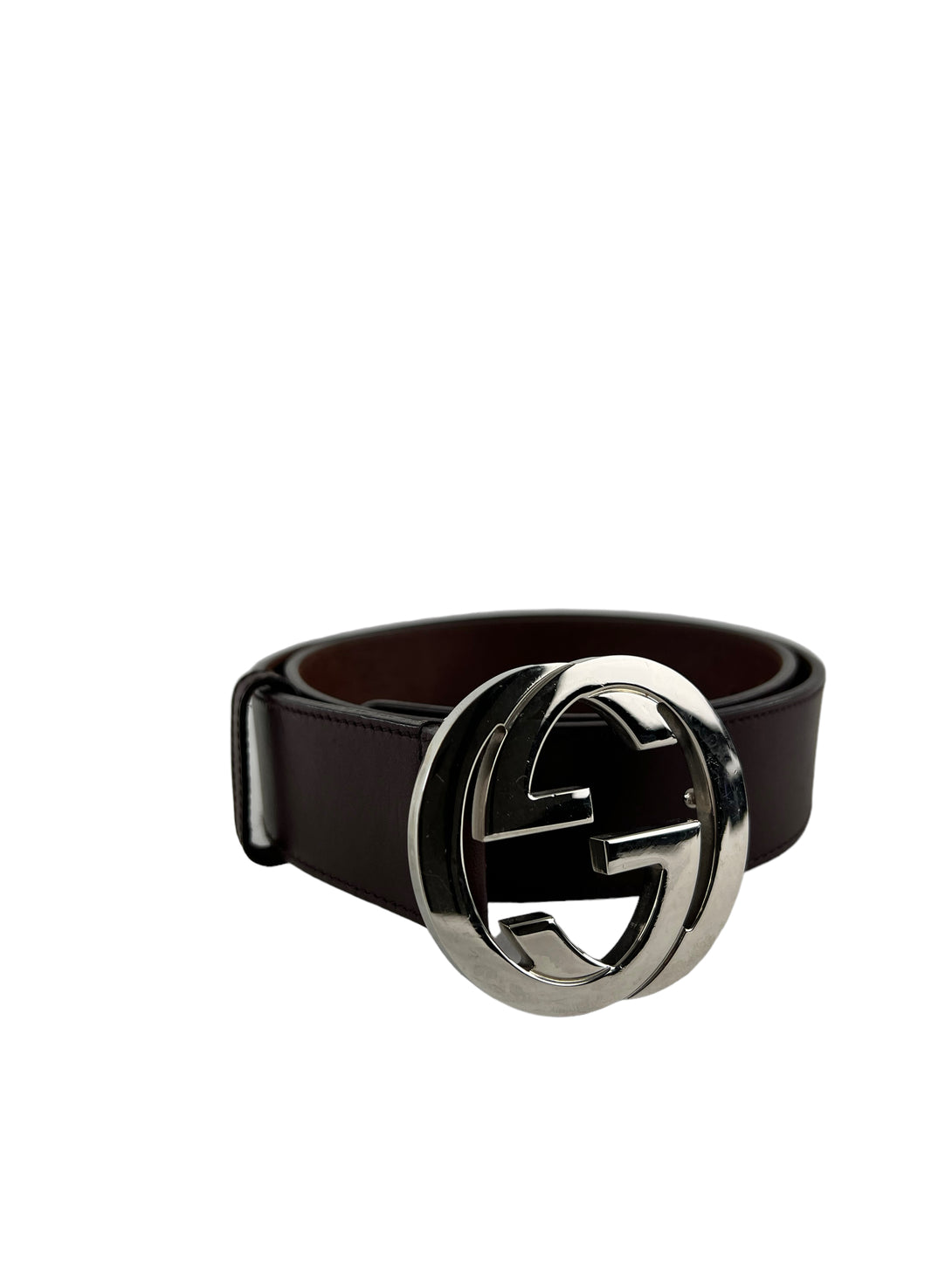Gucci Burgundy Leather With Silver Hardware GG Buckle Belt - Medium