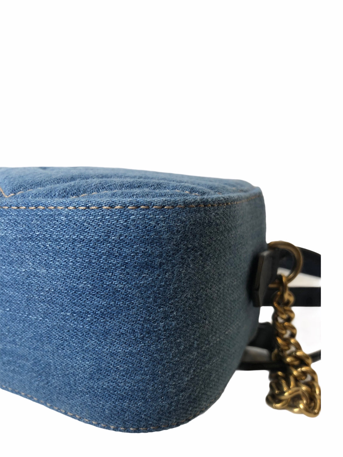 Gucci Denim Matelasse Pearl Studded Small GG Marmont Crossbody
